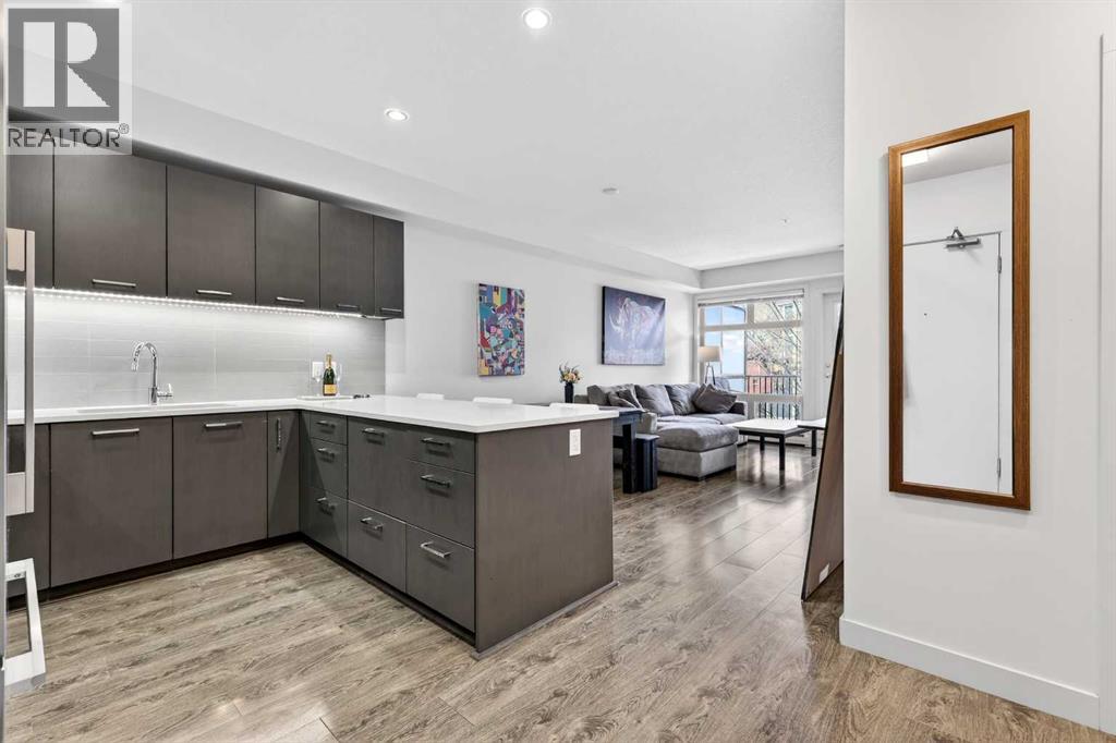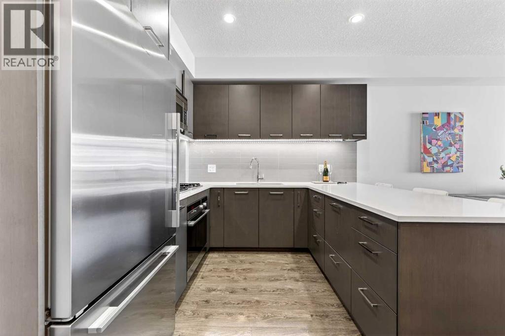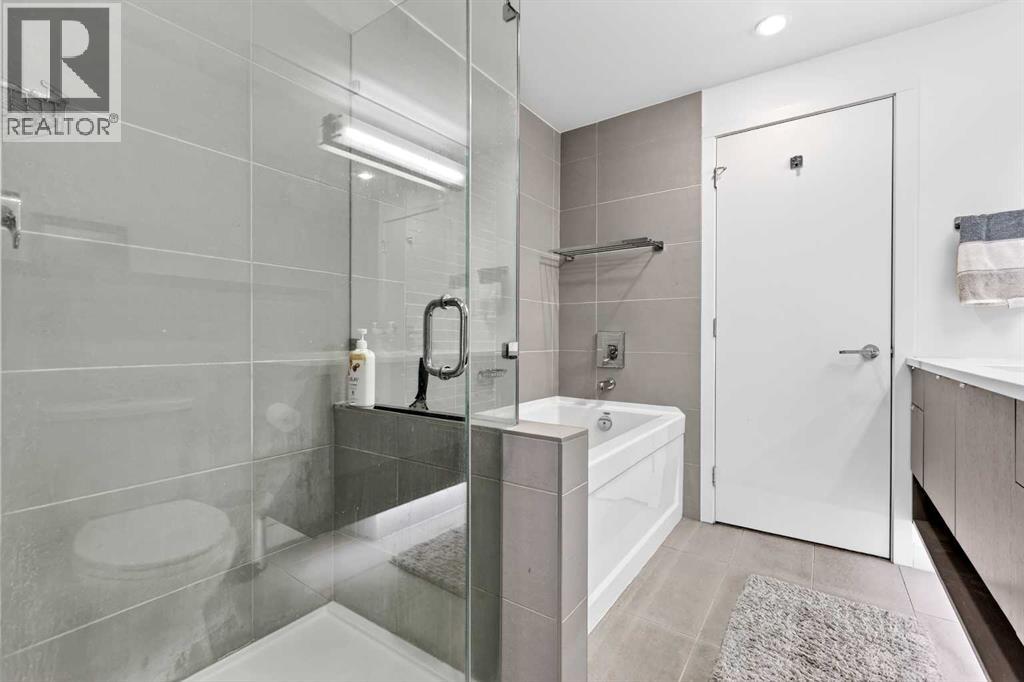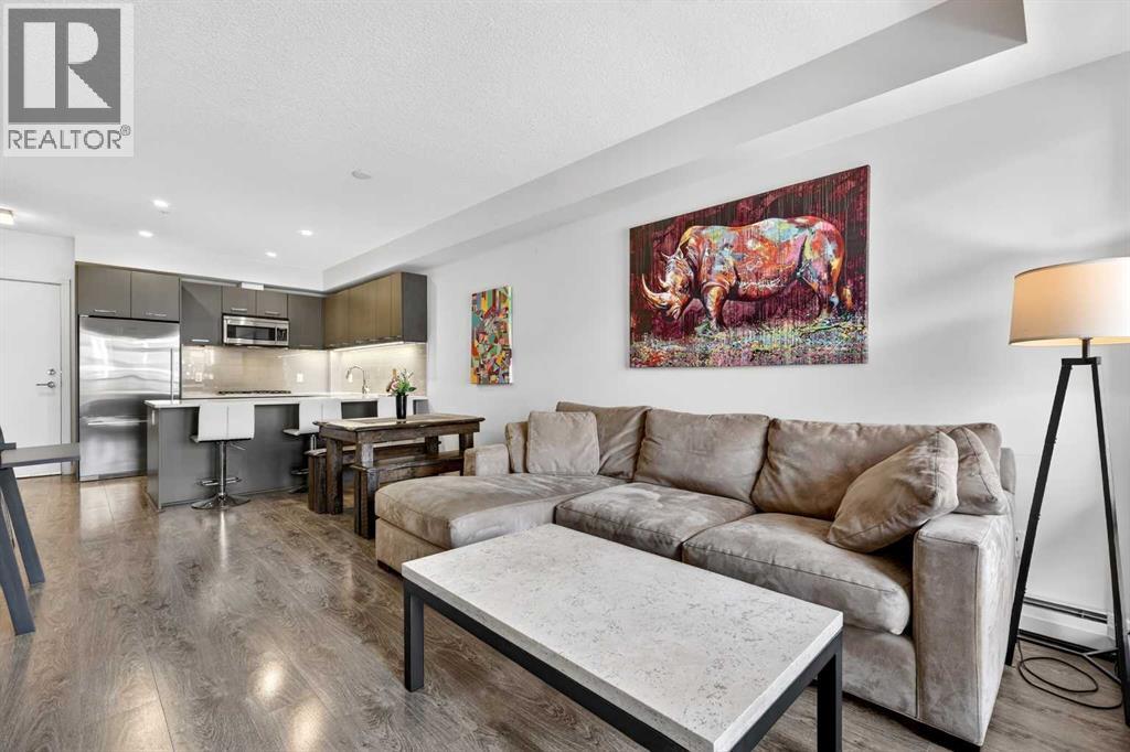 **TRIBECA - IN THE HEART OF MISSION l 1 BED - 1 BATH l AMAZING FLOOR-PLAN l COVERED BALCONY l TITLED UNDERGROUND PARKING l IN SUITE LAUNDRY l INNER-CITY LIVING AT ITS FINEST l THE ONLY UNIT AVAILABLE IN THE BUILDING l ***ATTENTION PROFESSIONALS, FIRST-TIME BUYERS, INVESTORS, DOWNSIZERS & DISCERNING BUYERS*** A Rare Opportunity to Own in One of Calgary’s Most Vibrant, Walkable and Sought-After Inner-City Communities — MISSION. The Tribeca by Bucci Developments represents the gold standard in inner-city condominium living — proudly certified Built Green Canada Platinum — a testament to quality, sustainability and thoughtful design. Upon entry, the open-concept layout immediately impresses. The spacious kitchen features modern soft close cabinetry, stunning quartz countertops, a breakfast bar, and top-of-the-line stainless steel appliances — flowing effortlessly into the living area which is filled with natural light. A garden door extends your living space outward to a lovely covered 76 sq ft balcony complete with a gas BBQ line and pleasant city views. The spacious primary bedroom offers a thoughtfully designed pocket door leading to an elegantly appointed four-piece bath, complete with a large quartz vanity, glass-enclosed shower, and deep soaker tub.This unit includes one titled underground parking stall, assigned storage locker, access to a heated parkade with car wash bay, secure bike storage, underground visitor parking, and beautifully maintained community gardens.Steps from 4th Street and 17th Avenue, and within easy walking distance to downtown Calgary’s finest dining, boutiques, pathways and amenities. PET FRIENDLY BUILDING! Exceptional value & Location. (id:58070)