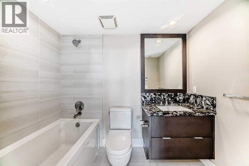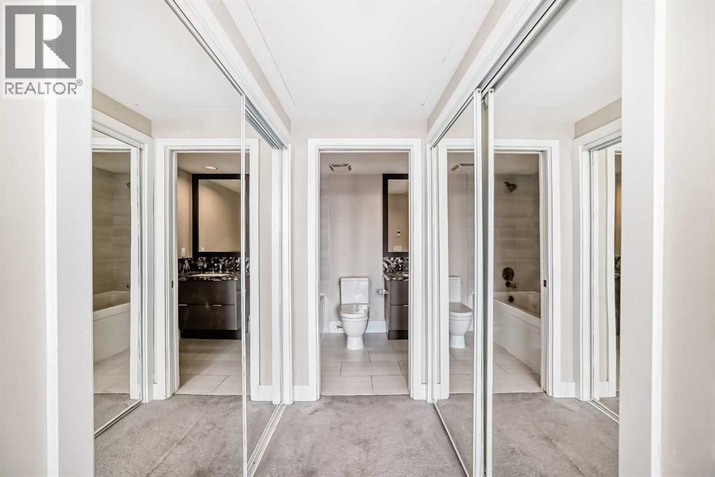 Welcome to Evolution in East Village, where style, convenience, and urban energy come together. This well-designed 2 bedroom, 2 bathroom condo offers 792 sq ft of functional living space—perfect for professionals, first-time buyers, or a savy investor looking for a well-located, highly rentable investment. The modern kitchen features sleek cabinetry, stainless steel appliances, a gas cooktop, and granite countertops, all complemented by a full-height granite backsplash that adds a touch of sophistication. The open-concept layout flows seamlessly into the living and dining area, creating a bright and comfortable space to relax or entertain.Large windows bring in plenty of natural light and connect you to the city outside, while the spacious private balcony offers a great outdoor extension—ideal for enjoying your morning coffee or unwinding at the end of the day with views of East Village and the downtown skyline.The smart floor plan provides excellent bedroom separation, making it ideal for roommates, guests, or a home office setup. The primary bedroom features ample closet space and a private ensuite, while the second bedroom is serviced by a full second bathroom.Additional features include in-suite laundry, central air conditioning, and contemporary finishes throughout.Residents of Evolution enjoy premium amenities including a fully equipped fitness centre, sauna & steam room and concierge service. Located just steps from the Bow River pathways, Studio Bell, Superstore, cafes, restaurants, and transit, this is an incredible opportunity to own in one of Calgary’s most vibrant and walkable communities. (id:58070)