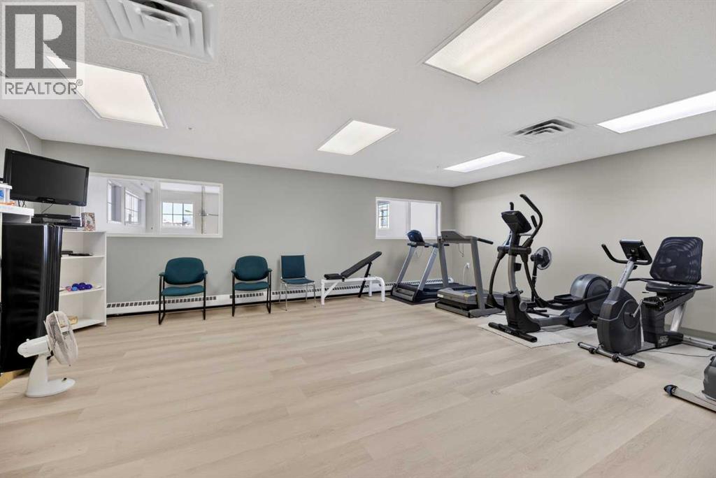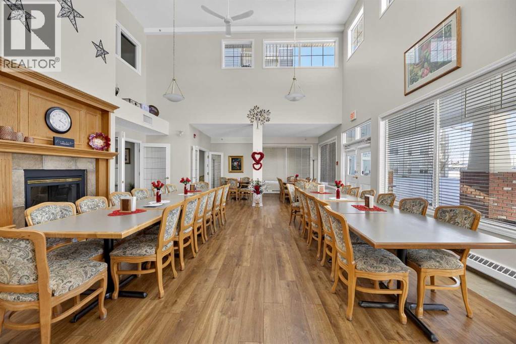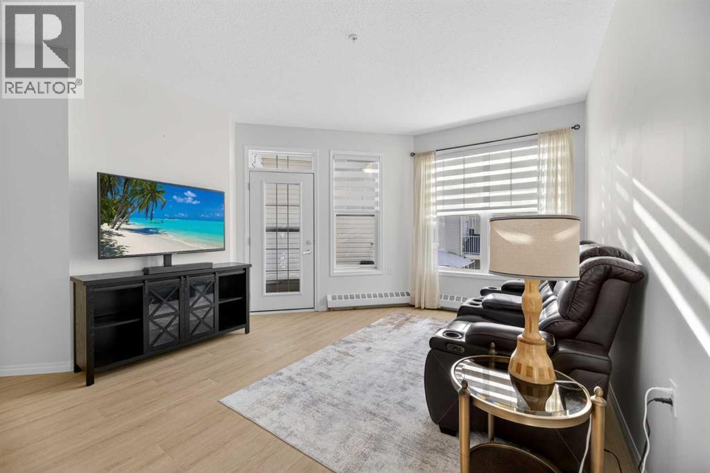 RENOVATED & MOVE-IN READY + SURE TO IMPRESS Legacy Village 55+ condo located in the HEART of Olds! Your beautifully updated & IMMACULATE second storey 2 BED + 2 BATH home with covered 9x7 balcony overlooking the gorgeous WEST GARDENS/GREEN SPACE is the PRIME LOCATION in this sought-after and prestigious FRIENDLY & VERY WELL-MANAGED complex. Your new home also comes w/ ONE outdoor parking stall just steps from the front entrance. The 55+ complex has absolutely ALL of the LUXURY AMENITIES you would require including an owners' lounge with fireplace, a kitchen facility, dining room (seats 50), shuffleboard, billiards, workshop, well-equipped fitness room, puzzle/games room, library room, hair salon, and laundry facility for the bigger loads, etc... PLUS, you have access to TWO rental guest suites for only $65.00 per night when family or friends come to visit. As you enter your BRIGHT, warm and inviting condo you are greeted by a nice sized entrance with mirrored closet...your OPEN LAYOUT features the kitchen off to the side which is open to the living & dining areas that separate the bedrooms - absolute perfect set up for entertaining family & friends! Your LARGE primary bedroom retreat features a spa-like en suite w/ large walk-in tub & shower combo and extra storage cabinets. You will also love the storage your walk-in closet provides. Your second bedroom (or office) is the perfect size, and is located across from the main 3-piece bath. Enjoy the convenience of a generous sized laundry room w/ built-in cabinets, and full sized washer & dryer. The luxurious updates throughout your new home include NEW paint throughout, luxury vinyl plank, carpet, stainless steel appliances, quartz kitchen countertops, modern white subway tile back splash, beautiful spa-like washroom updates, baseboards, updated lighting, designer window coverings, outdoor sun shade on balcony, etc......YOUR NEW HOME LITERALLY HAS IT ALL! Sit back and relax whilst enjoying a nice drink on your c overed balcony that overlooks the beautiful garden area. This complex is ADULT LIFESTYLE at its absolute FINEST! Feel like being social? Each night the complex offers different social activities such as bingo, movie night, crib/cards, happy hour, etc.... Feel like going out? You are minutes away from all of the conveniences that family-friendly Olds has to offer --- grocery stores, clothing shops, restaurants, Olds College, historic theater, and all emergency services (Olds Hospital, etc.). Quick access to Highway 2, and Calgary airport is only 60 mins away! Don't miss out on the opportunity to wake up to the warmth and aesthetic pleasures of Legacy Village -- it feels like being on VACATION every single day! NOTE; CONDO FEES INCLUDE ALL UTILITIES -- PLUS CABLE!! Your unit also comes with it's own assigned storage locker! Enjoy a safe and quiet environment in your very well kept & well-managed complex-- not many units come available in this complex. You will LOVE this JEWEL OF A HOME! (id:58070)
