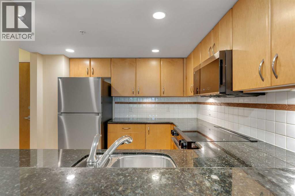 LOWEST PER SQ/FT IN THE AREA | FRESHLY RENOVATED | STEPS TO BOW RIVER PATHWAYS + PRINCE’S ISLAND PARK | MASSIVE 823 SQ/FT 1 BEDROOM UNIT | Welcome to The Marquis on 6 Ave SW, located in one of the best areas of West Downtown, within walking distance of everything including Eau Claire, Prince’s Island Park, Bow River Pathways, and just a quick stroll to the office. This massive one-bedroom unit has just been updated with brand new flooring, fresh paint, and new appliances throughout, making it a turn-key opportunity for the downtown condo buyer. Whether you’re a first-time home buyer or a savvy investor, this could be a wonderful unit for you. As you enter the unit you’ll notice a tremendous amount of natural light with the south exposure, extending onto a large sun-soaked patio. The unit features new stainless steel appliances, beautiful new vinyl flooring, and fresh paint throughout. The large kitchen with breakfast bar offers plenty of space to host friends and family, while the spacious living and dining area provides ample room to relax and watch a movie around the cozy gas fireplace, or enjoy a glass of wine on the patio. The large bedroom features another south-facing window, a generous walkthrough closet with access to the 4-pc bathroom, and a large in-suite laundry room. This unit comes with titled underground parking (very close to the stairs), a separate storage locker, and bike storage. The building itself features security personnel and a well-appointed gym, yoga studio, and a private owners’ lounge, as well pets are allowed up to 20LBS, but location is truly everything here — you’re within steps of the Bow River pathway system, Eau Claire, Prince’s Island Park (including River Café), Joey’s, Alforno Bakery, 1 block walk to the C-Train, and everything else downtown living offers. This really is the best section of Downtown. Please reach out today for a private showing. (id:58070)