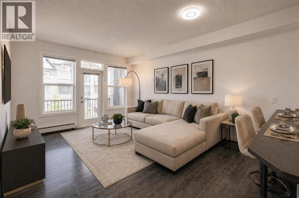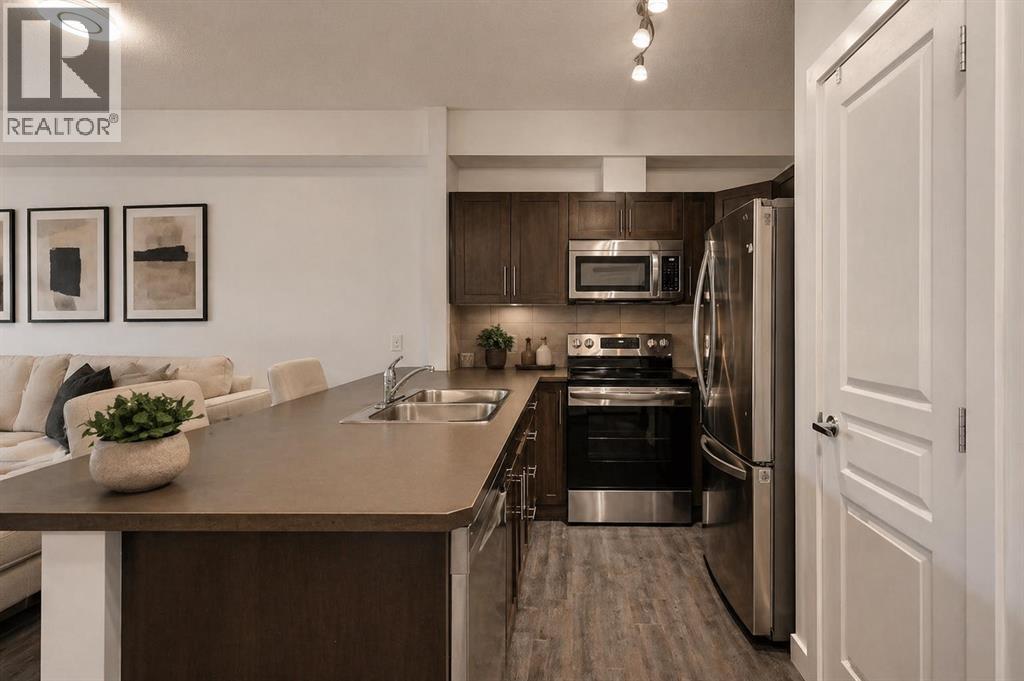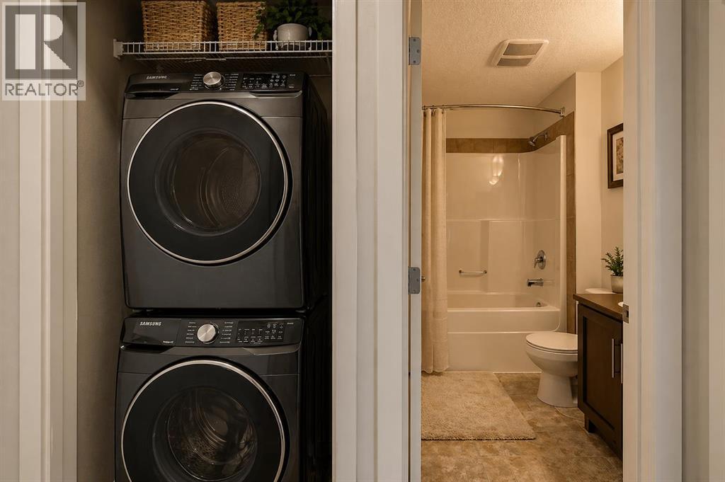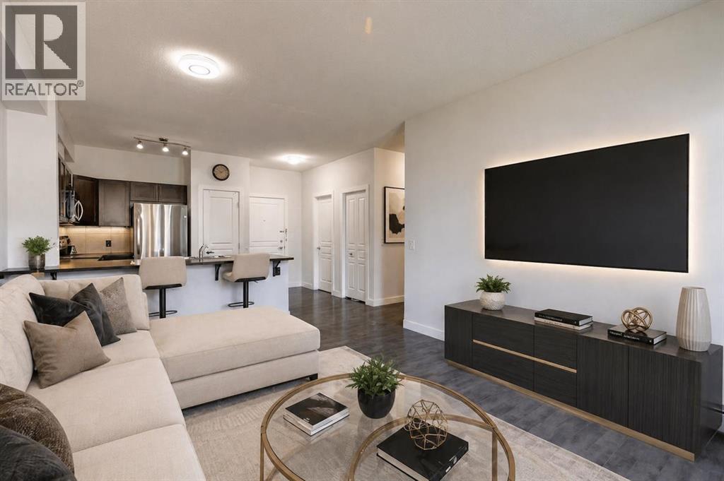 Welcome to Unit 207 at 22 Panatella Road NW — a beautifully upgraded, move-in-ready 2-bedroom, 2-bathroom condo in the heart of Panorama Hills. Thoughtfully refreshed with brand new paint and appliances, this home offers a clean, modern feel that rivals new construction — without the wait.Designed with both comfort and practicality in mind, the open-concept layout is enhanced by 9-foot ceilings, upgraded flooring, and an abundance of natural light. The kitchen anchors the space with rich brown cabinetry, a spacious corner pantry, a large island ideal for everyday living or entertaining, and a full set of brand new stainless steel appliances.The living area flows seamlessly from the kitchen, offering plenty of room for a full-size sectional and flexible setup depending on your lifestyle — whether it’s quiet evenings at home or hosting guests.Both bedrooms are well-sized, including a private primary retreat featuring a walk-in closet and a 4-piece ensuite. A second full bathroom and in-suite laundry with a brand new stacked washer and dryer add to the home’s everyday convenience, while a dedicated storage room keeps everything organized.Step out onto your private balcony overlooking green space — a quiet spot to start your morning or unwind at the end of the day.This unit also comes with titled underground heated parking and a secure storage locker, offering comfort and peace of mind year-round.Located just steps from schools, parks, pathways, shopping, and the VIVO Recreation Centre, with quick access to Stoney Trail, this is a well-balanced home in a highly convenient setting.A clean, upgraded unit in a location that continues to perform — this is one worth seeing in person. (id:58070)