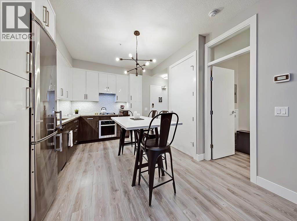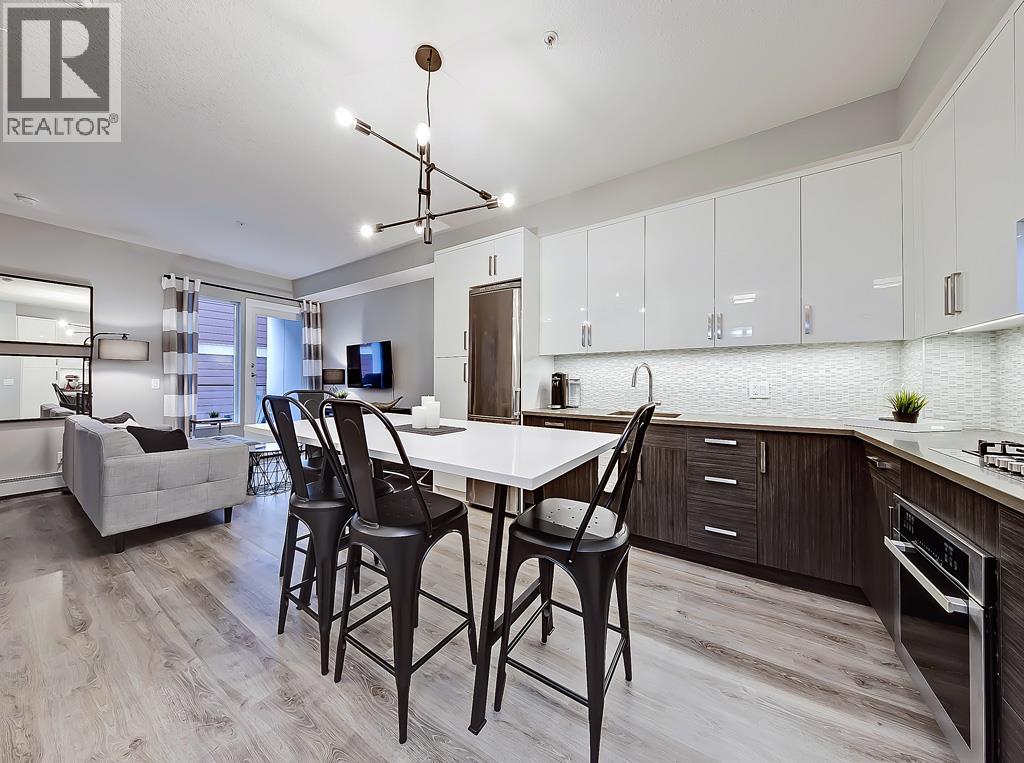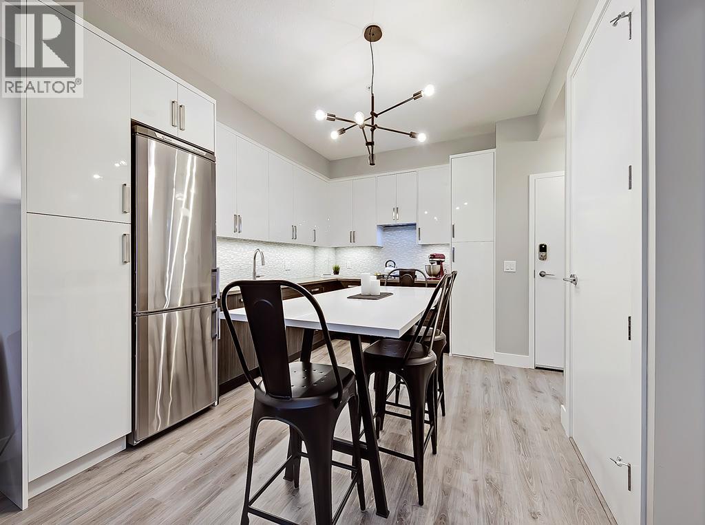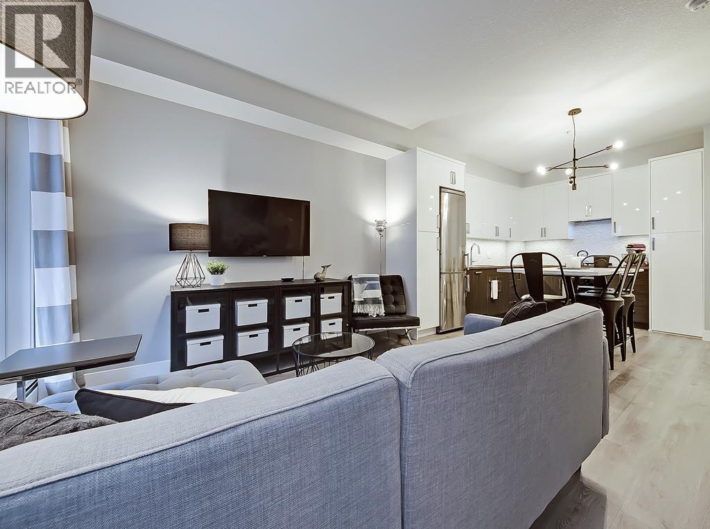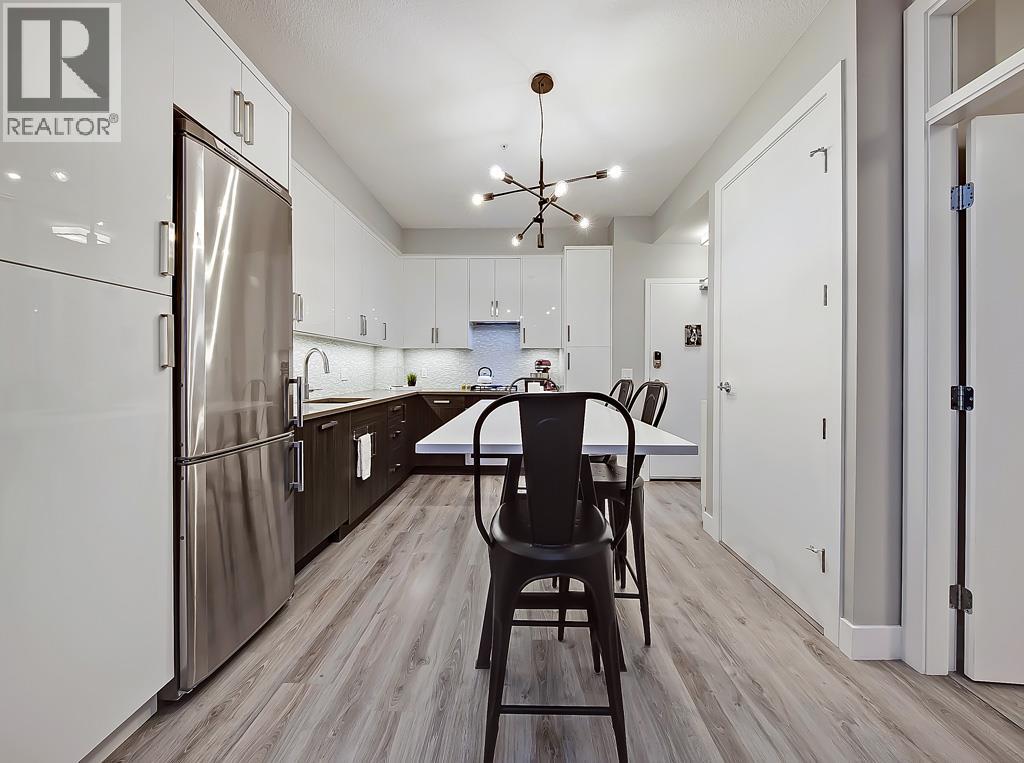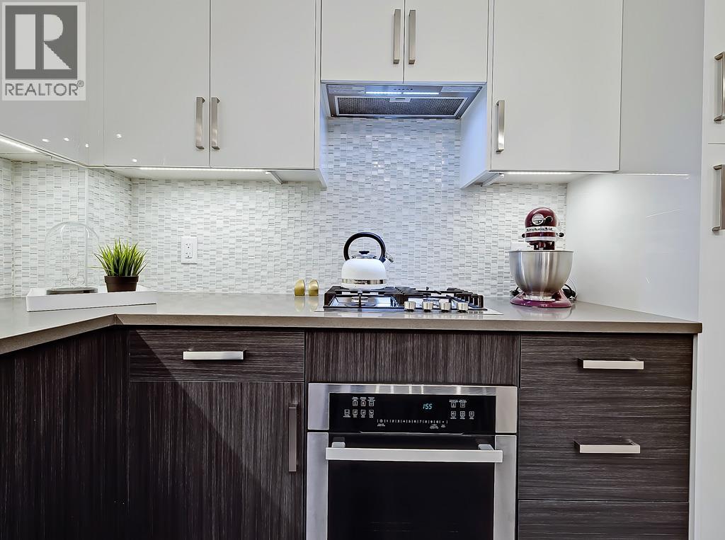 This EXECUTIVE 2-BEDROOM, 1-bath condo offers a highly functional OPEN-CONCEPT layout and shows absolutely spectacular. Loaded with upgrades, the home features STYLISH laminate flooring throughout and a gourmet kitchen that truly stands out—complete with quartz countertops, mosaic backsplash with under mount lighting, gas stove, matching stainless steel appliances, soft-close glossy white cabinetry, a movable island, and a modern pantry.The bright and inviting living room opens onto a very PRIVATE BALCONY—perfect for barbequing and entertaining. The spacious primary bedroom includes a floor-to-ceiling wardrobe, while the second bedroom is ideal for guests or a home office and offers ample storage. A full 4-piece bathroom completes the interior.Additional highlights include IN-SUITE WASHER AND DRYER, TITLED HEATED UNDERGROUND PARKING, a storage locker, and access to a beautifully designed common rooftop patio.This PET-FRIENDLY building is ideal for professionals, couples, or investors. Low condo fees include heat, water, and more. Conveniently located within walking distance to shopping and transit. The condo offers a highly functional open-concept layout and shows absolutely spectacular. Loaded with upgrades, the home features stylish laminate flooring throughout and a gourmet kitchen that truly stands out—complete with quartz countertops, mosaic backsplash with undermount lighting, gas stove, matching stainless steel appliances, soft-close glossy white cabinetry, a movable island, and a modern pantry.The bright and inviting living room opens onto a very private balcony—perfect for barbequing and entertaining. The spacious primary bedroom includes a floor-to-ceiling wardrobe, while the second bedroom is ideal for guests or a home office and offers ample storage. A full 4-piece bathroom completes the interior.Additional highlights include in-suite washer and dryer, titled heated underground parking, a storage locker, and access to a beautifully designed common rooftop patio.This pet-friendly building is ideal for professionals, couples, or investors. Low condo fees include heat, water, and more. Conveniently located within walking distance to shopping and transit. (id:58070)