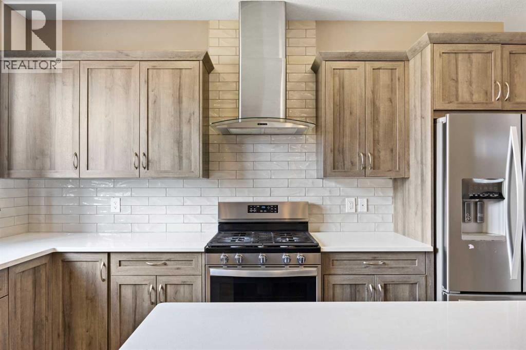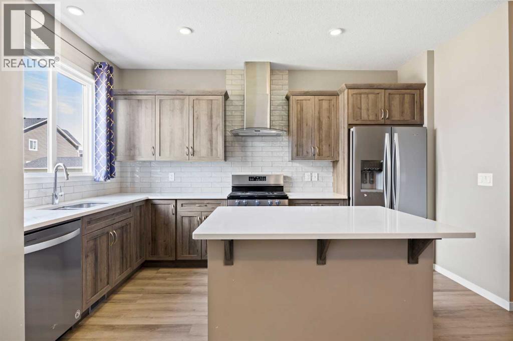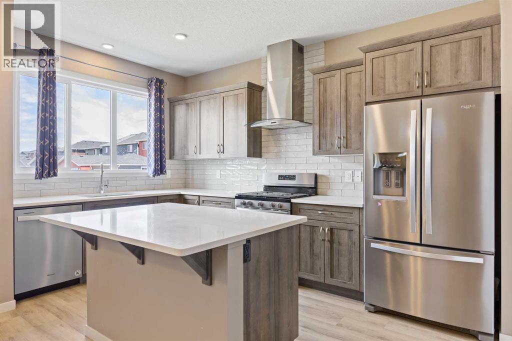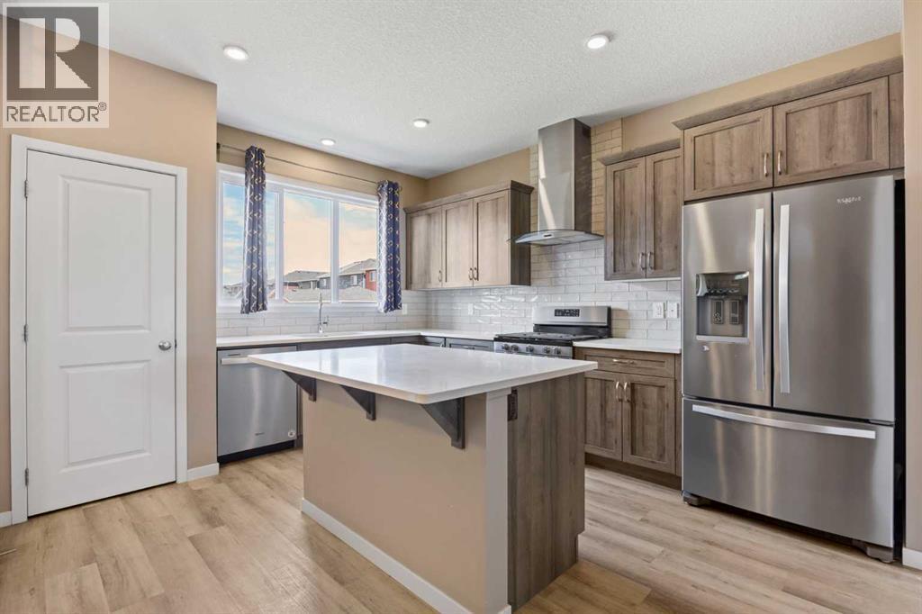 Welcome to this beautiful Trico-built home in the heart of Redstone, offering over 1,700 sqft of thoughtfully designed living space above grade — perfect for growing families, guests, or multi-generational living.As you step inside, you're greeted by a bright, open-concept layout with a spacious living area that’s perfect for entertaining or relaxing with family. The main floor features a rare full bedroom and full bathroom, making it ideal for guests or parents.The main kitchen includes stainless steel appliances, a gas range, quartz countertops, French-door refrigerator, built-in microwave, and ample cabinetry. A large dining area and cozy living room offer plenty of space to gather and create memories. Step outside to a private deck and fully fenced, oversized backyard — perfect for BBQs, summer fun, or letting the kids play freely.Upstairs, you'll find 3 large bedrooms and 2 full bathrooms. The primary suite features a 4-piece ensuite and walk-in closet, while each additional bedroom comes with oversized closets and huge windows that fill the space with natural light.This home also features a fully finished, legal 2-bedroom basement suite with a private side entrance — complete with a full kitchen (including stainless steel appliances), 3-piece bathroom, and a comfortable living area — an ideal space for extended family or potential rental income.Conveniently located just steps from a large park and playground, with plenty of street parking. You're within walking distance to the local convenience plaza, featuring popular spots like Punjabi Chulha, Pizza Stone, and more. A short drive brings you to major amenities: Dollarama, Chalo FreshCo, Sanjha Punjab Grocery, Galito’s Chicken, and more — plus quick access to Stoney Trail, CrossIron Mills, and Calgary International Airport.This home delivers a rare blend of space, comfort, and unbeatable location — offering families a place to relax, connect, and truly feel at home.Whether you're upsizing, invest ing, or searching for the perfect multi-generational setup, this is the kind of home that checks every box — and it won’t last long! Don't miss your chance to make it yours! (id:58070)