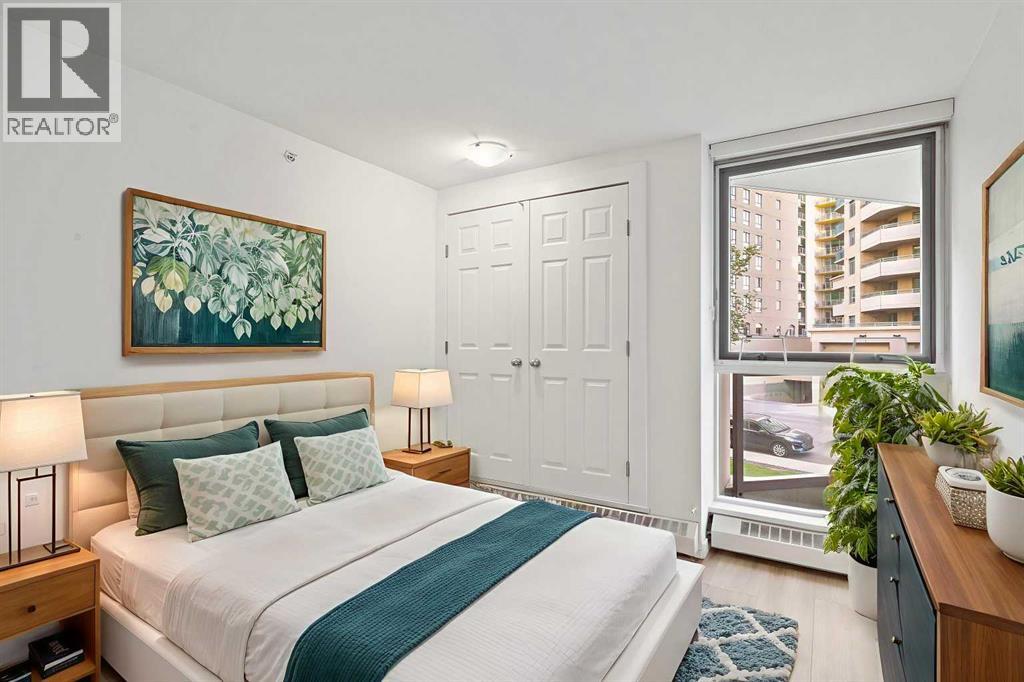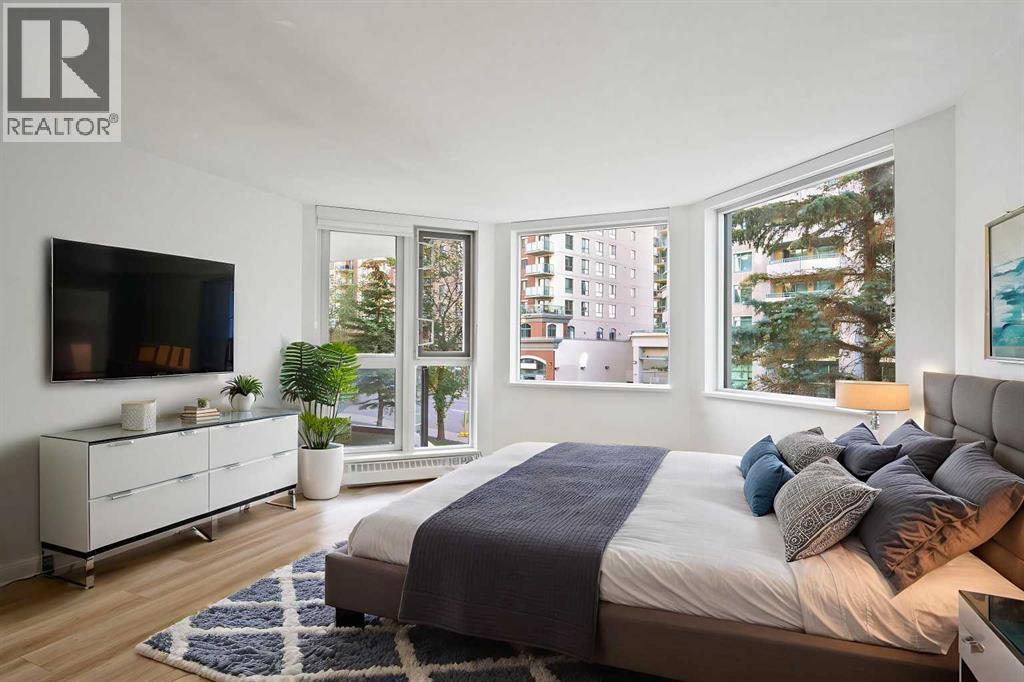 Ideally located in the quiet west end of downtown, this renovated 2-bedroom, 2-bathroom unit in The Marquis offers nearly 1,000 sq ft of bright, open-concept living space. Just steps from the Bow River pathways and only 2 minutes to the C-Train (within the free fare zone). Features include granite countertops, new stainless steel appliances, vinyl plank flooring, a gas fireplace, and a south-facing, tree-lined balcony. The oversized primary bedroom includes a full ensuite and direct balcony access. The second bedroom is situated near the second full bathroom, ideal for guests or roommates. Additional conveniences include quick stair access (bypassing elevator wait times) and close proximity to the titled underground parking stall. Building amenities include a fitness center, yoga studio, party room, landscaped courtyard, secure bike storage, and visitor parking. Pet-friendly building (with board approval; under 20 lbs). Walkable location close to Kensington, river trails, cafes, restaurants, and downtown amenities. (id:58070)