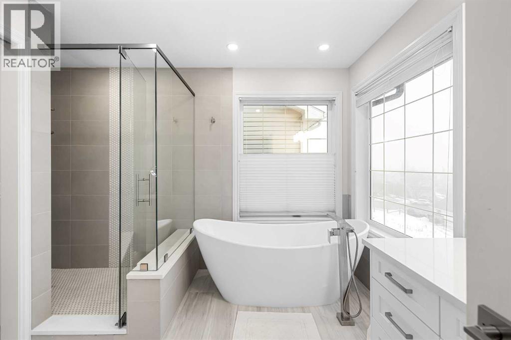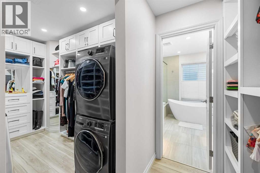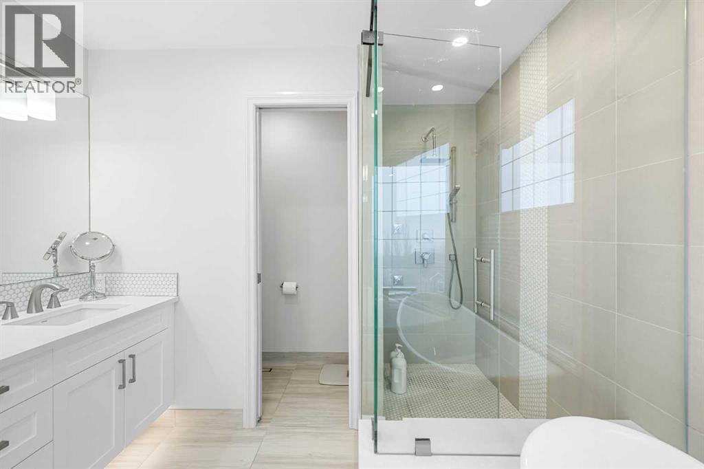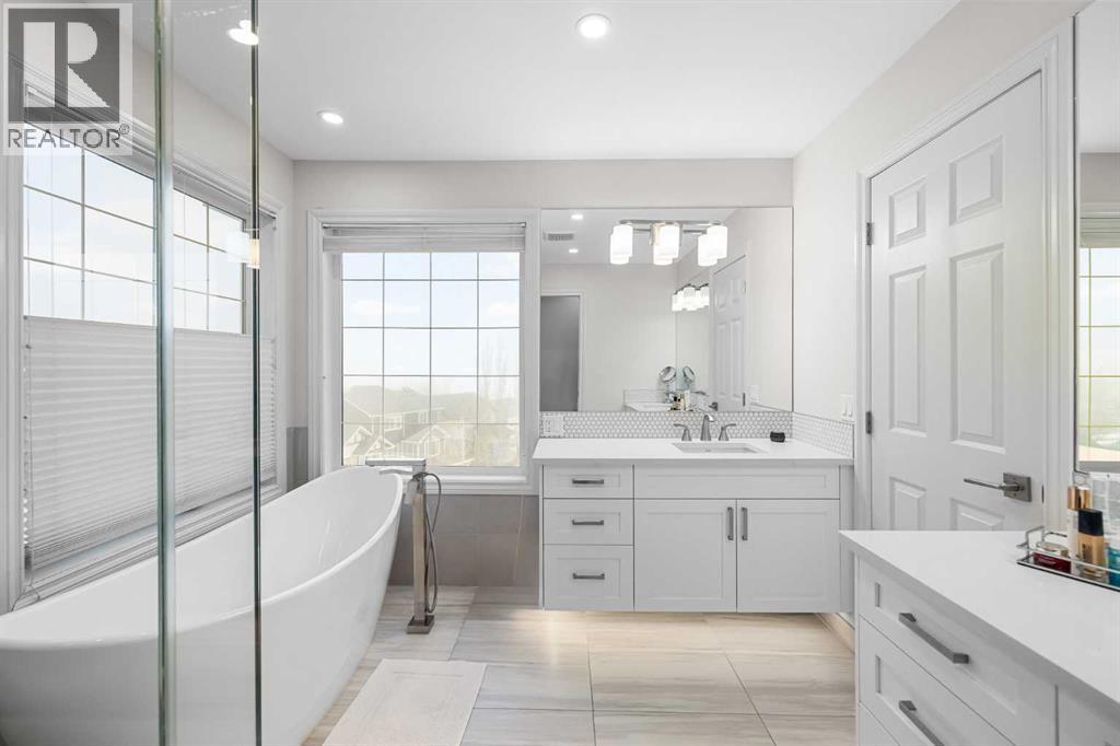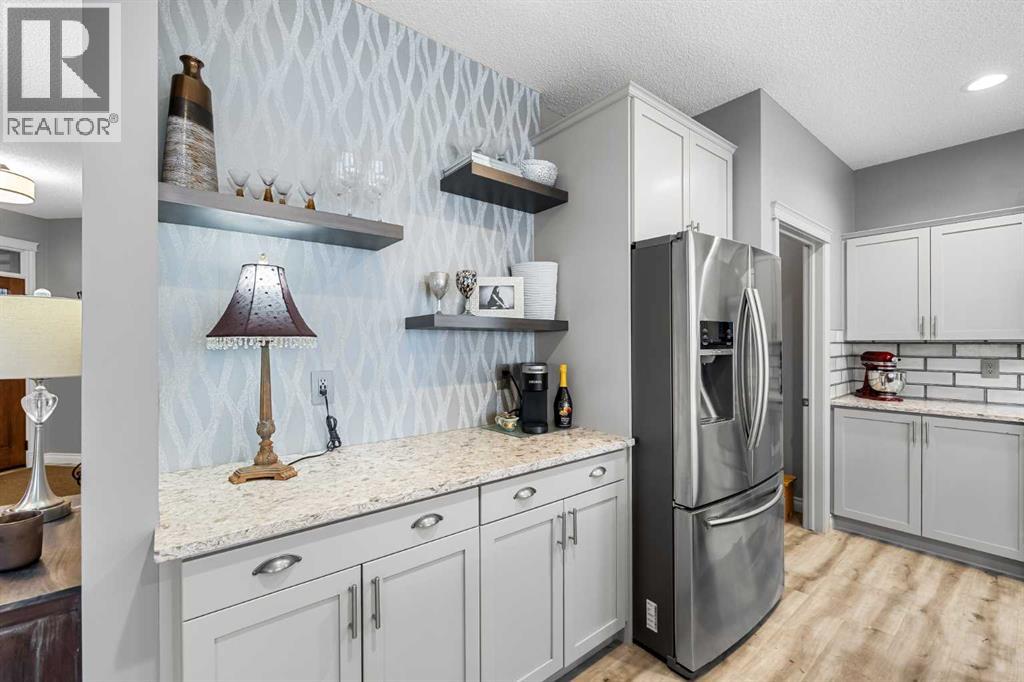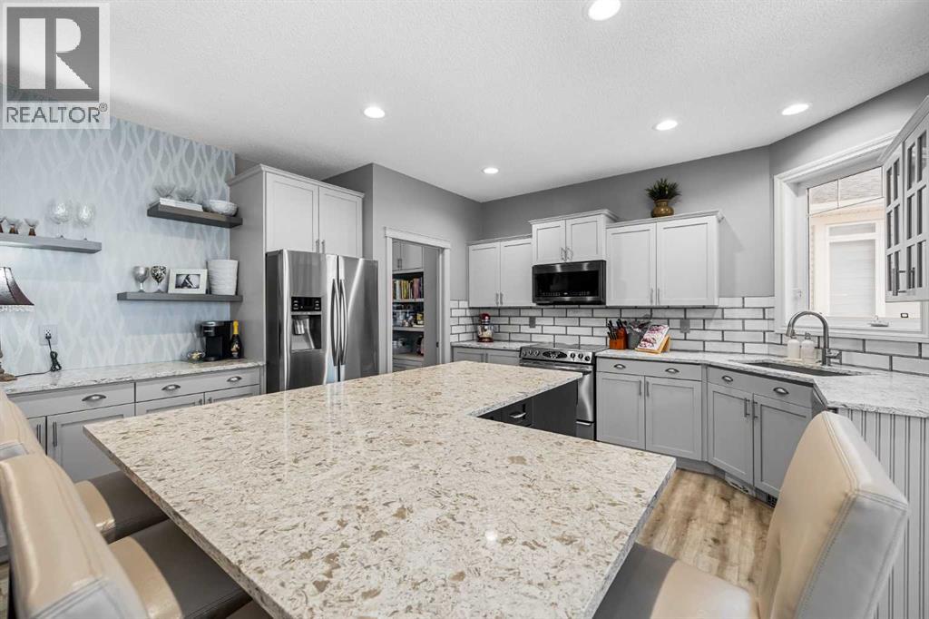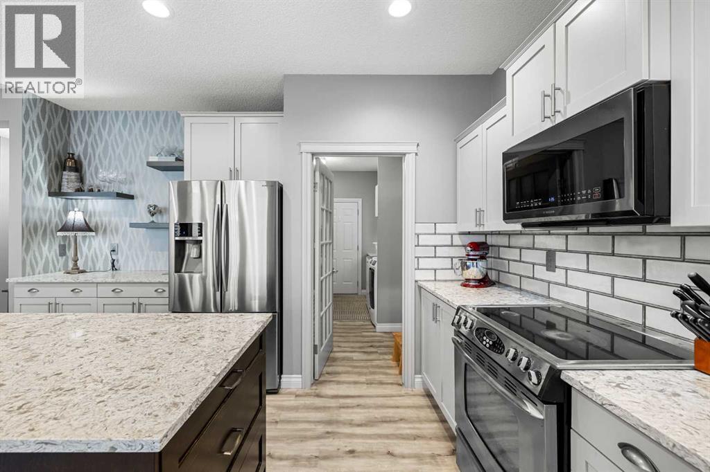 Welcome to this exceptional family home in sought-after Hansen Ranch, perfectly positioned backing onto a beautiful ravine green space with a sun-drenched south-facing backyard. This fully finished two-storey walkout boasting over 3,100 sqft of developed living space offers the perfect blend of luxury, functionality & an unbeatable natural setting in NW Calgary. Extensively renovated in 2021, this home showcases high-end finishes & thoughtful design throughout. Luxury vinyl plank flooring flows seamlessly across every level, complemented by quartz countertops throughout. Large windows flood the space with natural light & beautifully frame ravine views, creating a bright, inviting atmosphere. The main floor is elegant yet practical. A stunning stone gas fireplace anchors the living room, adding warmth & architectural presence. The chef-inspired kitchen features stainless steel appliances, a large center island perfect for gathering, a spacious dining nook overlooking the green space & a custom walkthrough pantry offering elevated storage & everyday convenience. A dedicated main floor office makes working from home effortless, while the main floor laundry/mudroom enhances the functional layout. Hunter Douglas blinds provide style & privacy throughout. Up the wide staircase with striking railing you’ll find three generous bedrooms, including a dreamy primary retreat. The spa-inspired ensuite offers dual sinks, a stand-alone soaker tub, gorgeous rain shower & a custom walk-in closet complete with its own stacked washer & dryer- a luxurious yet practical touch. Undercabinet lighting in the upstairs bathrooms adds a soft glow. Two additional great-sized bedrooms with custom closets & a 4 pc bathroom complete the upper level. The fully finished walkout basement expands your living space with a large recreation room with a beautiful corner gas fireplace that provides amazing heat to the space, fourth bedroom & full guest bathroom-ideal for visitors, teens or extended family -plus direct access to the peaceful landscaped backyard & ravine beyond. Step outside to your massive composite deck oasis with glass railing, custom stair lighting & a huge storage shed tucked neatly underneath. With no rear neighbors & direct access to green space, this south-facing yard offers privacy, sunshine & stunning natural views year-round. Additional highlights include a double attached garage, professionally landscaped backyard with a lower patio, underground irrigation, air conditioning, hot water on demand & a newer roof (high quality DKO Dynasty Shingle) for peace of mind. Close access to Stoney Trail with convenient proximity to grocery stores, amenities, restaurants, shopping & schools. Elegant & move-in ready, this is a rare opportunity to own a beautifully renovated walkout in one of northwest Calgary’s most established family communities. Lovingly cared for with pride of ownership shown throughout. (id:58070)