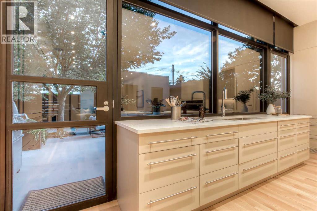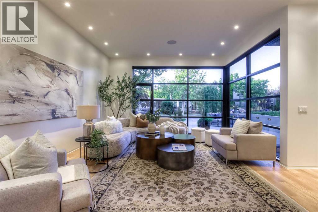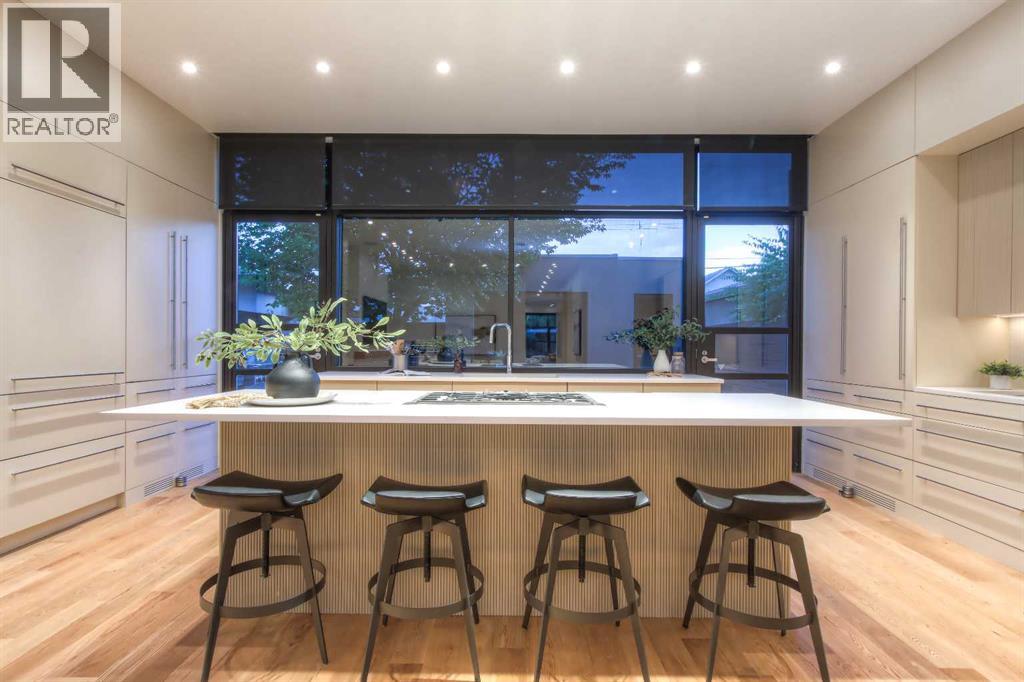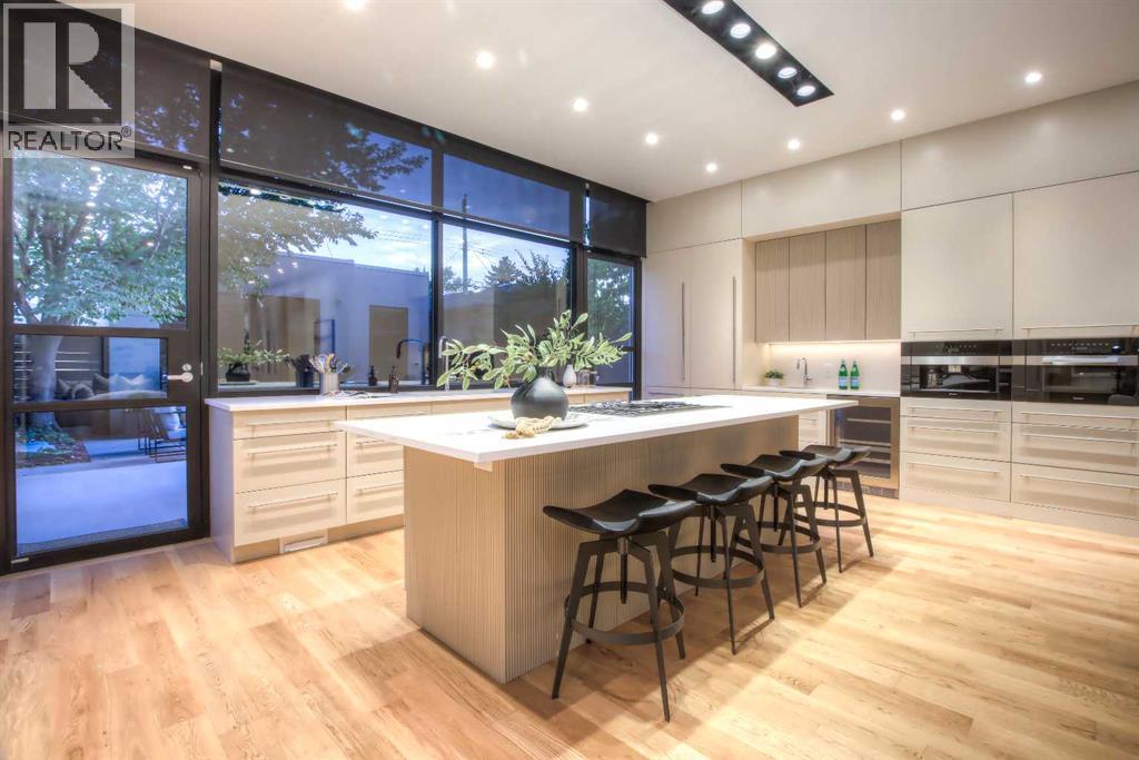 Experience the pinnacle of luxury living in this custom 4 bedroom, 3 storey home set on a tree-lined street in the coveted community of Hillhurst. Taken down to the studs and completely rebuilt, this home showcases masterful craftsmanship, custom finishings, and an unmatched level of design throughout. The main floor offers an effortless flow for both grand entertaining and refined daily living. Wide plank white oak hardwood, a formal front living room, and a dedicated dining room with custom doors set the stage, while the showpiece chef’s kitchen boasts a oversized sland, Sub Zero and Miele appliances, a built in coffee maker, double ovens, and custom cabinetry. The upper level has 3 bedrooms including an exquisite primary suite that rivals a five star retreat, complete with a spa inspired ensuite, an expansive custom dressing room, and a private sunlit patio. Two laundry rooms, one on the 2nd floor and one on the lower level, provide exceptional convenience. A versatile third floor flex space offers the ideal setting for a family room, office, or studio. The fully developed lower level has a 4th bedroom and is designed for comfort and entertainment, featuring a state of the art theatre room and abundant custom features. This home comes complete with a media package which includes 3 tvs, and speakers throughout the house with 4 sounds zones easily controlled with your phone. Other features include radiant in floor heating and custom dimmable lighting. Outdoors, a low maintenance backyard provides a serene setting ideal for entertaining or to enjoy your morning cup of coffee. The expansive double garage, complemented by an additional storage pad, provides exceptional functionality and convenience. With its enviable location steps from downtown, this extraordinary Hillhurst home offers a rare blend of refined luxury and vibrant inner-city living. (id:58070)