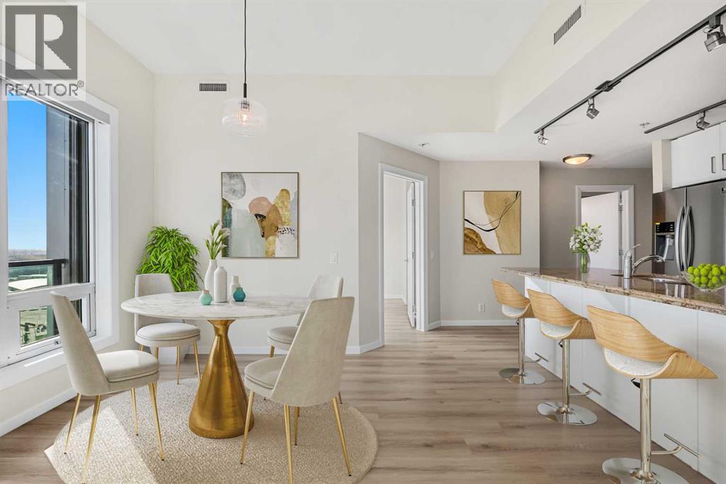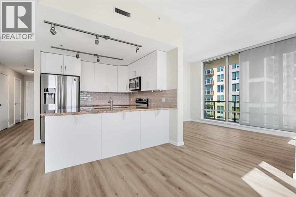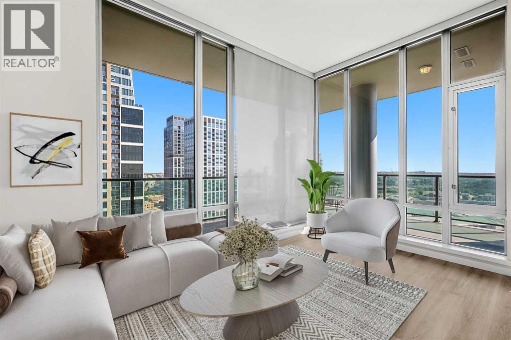 Your Sky-High Retreat in the Heart of Calgary's Entertainment District! Imagine waking up to breathtaking city views from the 21st floor and unwinding as the downtown lights twinkle below. Welcome to SASSO—an exceptional opportunity to experience the vibrant energy of Victoria Park. This concrete building, situated in the heart of the Beltline, is conveniently close to numerous amenities and just a short walk from downtown.This unit features a fantastic floor plan with floor-to-ceiling windows that fill the space with natural light, making it one of the most desirable locations in the building. This stylish two-bedroom condo, located in an 18+ adult complex, offers the ultimate urban lifestyle. Step inside this renovated unit and enjoy the spaciousness created by nine-foot ceilings, luxury vinyl plank flooring throughout, and an open-concept layout.The modern kitchen, equipped with granite countertops and sleek white cabinets, is perfect for preparing dinner before heading out for the night. Enjoy warm evenings on your private covered balcony, complete with a gas BBQ. For cozy nights in, relax on your couch, perfectly positioned to take in the stunning view. The main floor features beautiful new luxury vinyl plank flooring for easy maintenance.The open layout provides ample space for entertaining, with the kitchen boasting granite countertops, stainless steel appliances, an eating bar, a double sink, and plenty of cabinet space. Both bedrooms are spacious and include walkthrough closets and their own full bathrooms, ensuring privacy as they are separated across the condo.World-class amenities await you, including a concierge, fitness center, theater, hot tub, and more. With the city at your doorstep, you are just steps away from the LRT, Stampede Grounds, Sunterra Market, and a variety of dining and shopping options on 17th Avenue. This isn't just a condo; it's your gateway to a sophisticated and convenient urban lifestyle. Be sure to view the full 3D virtua l tour! (id:58070)