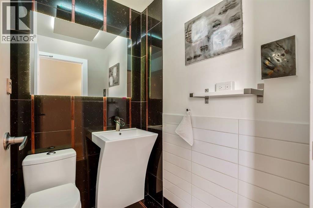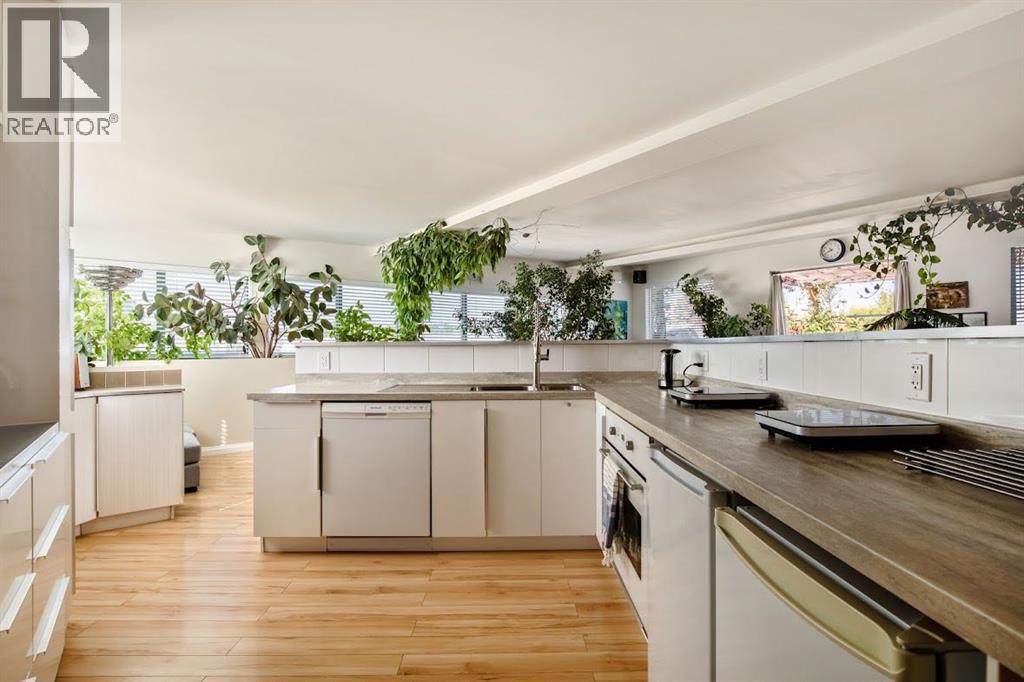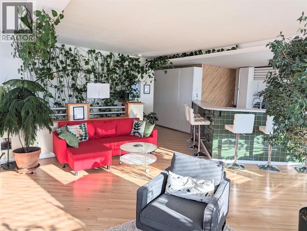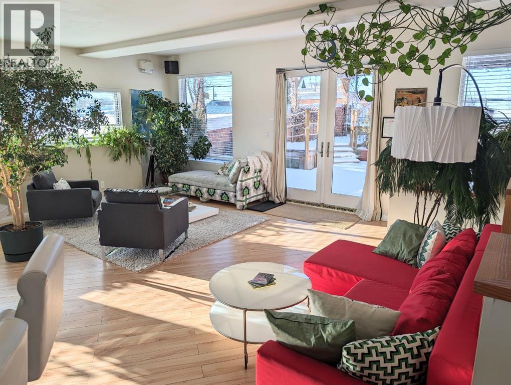 Retail Unit 1: Approx. 1,000 sq ft, currently operating as a photographic boutique. Features original brick, hardwood floors, high ceilings, modern lighting, and updated electrical & plumbing systems. Retail Unit 2: Approx. 3,800 sq ft, currently configured as a mini mall with boutique shops. Retains some original finishes, a bank vault, offers open floor space, a loading dock at the rear and updated plumbing and electrical. Apartment 1 – Airbnb: One-bedroom loft, 1,174 sq ft. Large windows with treetop views, two half baths, shower room, and modern kitchen with six-seat diner-style bar. Designed for short-term rental use. Apartment 2 – Owner’s Residence: Two-bedroom plus den, 1,132 sq ft. Heated hardwood floors, monochrome kitchen with induction cooktop, convection oven, integrated dishwasher, and ample counter space. Primary bedroom with en-suite: double sinks, double showers, bubble jet tub, Japanese toilet.Shared Features: Both apartments have built-in planters with live greenery and access to an 895 sq ft split-level rooftop terrace with established trees, wind protection, and privacy. The property includes a poured concrete basement (approx. 2,400 sq ft) with storage, office, washroom. Two off-street parking spaces with plug-ins. Renovated in 2015 with renewed HVAC, electrical, and plumbing; 400 Amp service with distributed sub panels. Gross income: $86,000. NOI: $61,000 (Cap rate 7.25%). (id:58070)