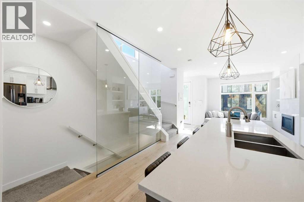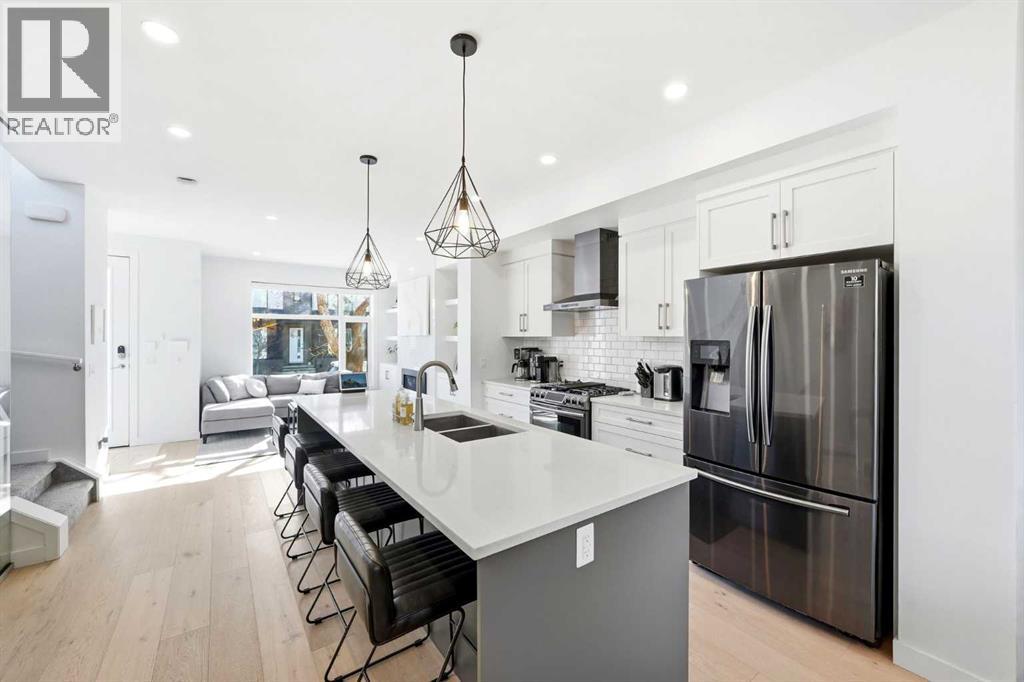 Get ready to be AMAZED by this original owned luxury END UNIT townhouse by Stonewest Homes, located in the coveted community of Mount Pleasant. *WOW* Pride of ownership truly shines in this well-cared for home and is in LIKE NEW CONDITION. Imagine coming home through the front 8 FT GLASS DOOR, along with windows on 3 sides of the home, and 10mm GLASS RAILING on the staircase brings in TONS OF NATURAL LIGHT – but don’t worry, you’ll stay comfortable with CENTRAL A/C on hot summer days. Superior designs are about the small details, and this one has it in spades! Envision the comfort you feel in your new home, the OPEN CONCEPT spaces, accentuated by modern flat RARE 9 FT CEILINGS on all 3 levels. The timeless styling creates simplicity: from the FULL TILE GAS FIREPLACE feature framed by custom built-in shelving, to the FULL HEIGHT CABINETRY highlighted by brush black appliances (incl. GAS STOVE), finished with touches of black and gold lighting fixtures. For those who love to entertain, dinner guests are welcome with comfortable seating of 4 on the large kitchen island, and 6 in the dining space. Out the back, you have your LOW MAINTENANCE FULLY FENCED YARD (largest in complex) with the most convenient access to your garage directly through the gate. The durable LUXURY VINYL PLANK flooring carries upstairs into your primary bedroom with 5-PC SPA-INSPIRED ENSUITE w/ SOAKER TUB. If you love to read, a quiet coffee in the morning, or even just a breath of fresh air, picture yourself relaxing on the private balcony off your bedroom. The 2nd bedroom also offers a FULL ENSUITE so nobody needs to share. The fully finished basement has a large rec room, great for movie nights or a fitness area, finished with a 3rd bedroom and full bathroom. The location is the perfect balance between QUIET and convenient, boasting a 78 Walk Score accessible to many amenities nearby. Your furry friend can stay active at the OFF LEASH DOG PARK across the street, and you stay active here too: Dow ntown (7 mins, 14 min bike), BOW RIVER PATHWAYS (6 min, 12 min boke), and stay close to nature at CONFEDERATION PARK (12 min walk). Staying social is also important to you, you and your friends will love being able to walk to 4th St and 16th Ave Shops, Restaurants, and Entertainment. You’re also 3 mins away from the Community Association with a sports field, OUTDOOR POOL, and indoor arena. Your next chapter awaits…come upgrade your lifestyle today! (id:58070)