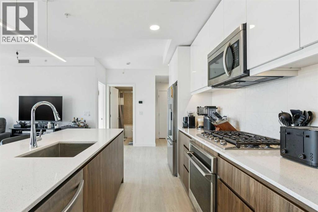 Welcome to The Annex in the heart of vibrant Kensington—one of Calgary’s most sought-after inner-city communities. This 2 BEDROOM, 2 BATHROOM corner residence by Minto Communities, designed in collaboration with award-winning Nyhoff Architecture, offers the perfect blend of modern design, lifestyle convenience, and investment flexibility.“The Essex” floorplan spans 900 sq. ft. with an expansive 160 sq. ft. balcony capturing the morning sun and downtown Calgary views. The thoughtfully designed open-concept layout is ideal for both everyday living and entertaining, featuring a sleek kitchen with high-end appliances, a gas stove, and a stunning waterfall quartz island. Large windows fill the space with natural light, creating a bright and inviting atmosphere throughout. The primary suite is complete with a dual-sink ensuite, while the second bedroom and full bath offer flexibility for guests or a home office.Located just steps from Sunnyside LRT, local cafés, boutiques, grocery stores, and the Bow River pathways, with a Walk Score of 94, this is urban living at its finest. Leave your car in the underground heated parkade and enjoy everything Kensington and downtown have to offer just minutes from your door. Residents enjoy premium amenities including a rooftop patio, perfect for relaxing or entertaining.Built to LEED standards with next-generation systems, The Annex is designed for long-term efficiency and lower condo fees—delivering both sustainability and value.Whether you’re seeking a vibrant inner-city lifestyle or a high-performing investment, this home offers the best of both. Book your showing today! (id:58070)