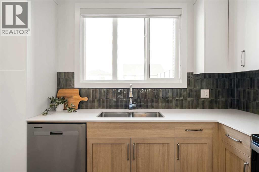 Welcome to the Charlotte by Partners in Keystone Creek, a brand new duplex in NE Calgary ideally located across from green space and offering a fully developed basement with a separate side entrance. With 4 bedrooms and 3.5 bathrooms, this home is designed to offer both functional living and added flexibility across all levels. The main floor features 9 foot ceilings and a bright, open concept layout with a rear kitchen that anchors the space. Finished with full height cabinetry, quartz countertops, a tiled backsplash, and a central island, the kitchen also includes a stainless steel appliance package with an upgraded fridge with waterline, upgraded electric range, and chimney style hood fan, along with a gas line rough in for future flexibility. The front dining and living areas overlook the green space, bringing in natural light and creating a more open feel. Upstairs, the primary bedroom includes a walk in closet and private ensuite with dual vanities and a walk in shower. Two additional bedrooms, a full bathroom, and upper level laundry with washer and dryer complete the second floor. The fully developed basement features 9 foot ceilings, a separate side entrance, a spacious recreation area, an additional bedroom, and a full bathroom, adding a comfortable extension of living space. At the rear of the home, a double gravel parking pad with alley access offers off street parking and future garage potential, along with a BBQ gas line for outdoor use. Front landscaping is already complete. Finished in a Tudor elevation, this home offers a timeless exterior in Keystone Creek, a growing NE Calgary community with access to pathways, green spaces, and convenient routes to Stoney Trail, Deerfoot Trail, CrossIron Mills, and Calgary International Airport. Well positioned within the community with a finished basement and green space exposure, this home offers a layout that feels complete from day one. (id:58070)