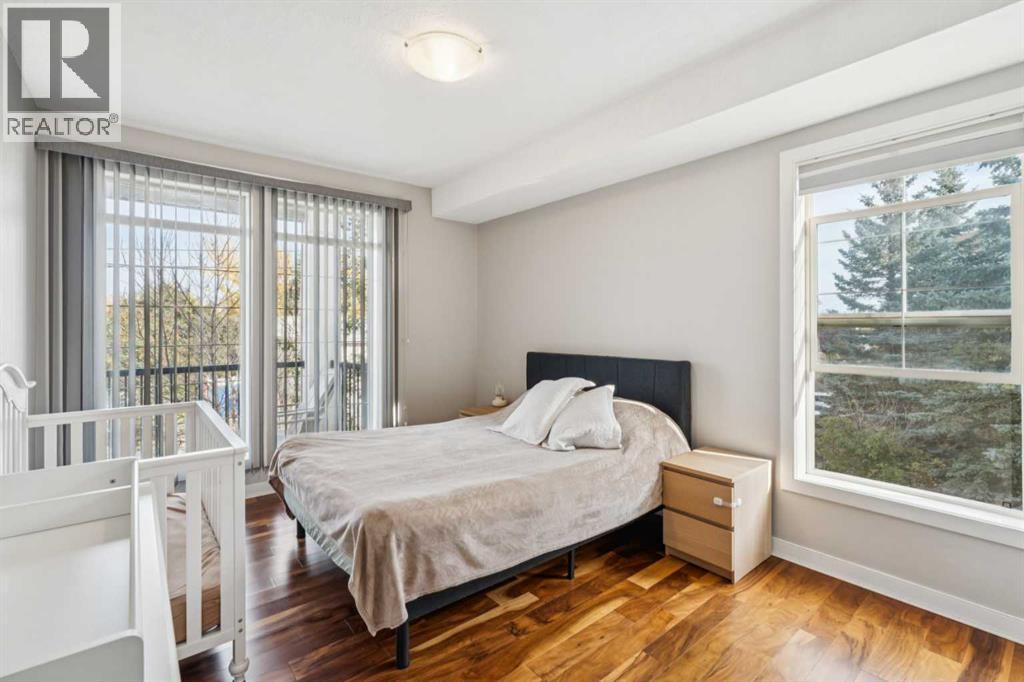 Discover the largest floor plan in the building with this bright CORNER UNIT in Solea at Midnapore! Enjoy lake access, two titled underground parking stalls, and an open layout with 9-ft ceilings and abundant natural light. The upgraded kitchen features stainless steel appliances, breakfast bar, and pantry, while the living area opens to a large private balcony with gas line. Both bedrooms are spacious and well-separated, including a primary suite with walk-through closet and ensuite. Additional highlights include upgraded hardwood flooring, newer washer/dryer and dishwasher, and in-suite laundry. Perfectly located close to shops, restaurants, schools, and LRT, with Lake Midnapore just minutes away—your ideal lake community lifestyle awaits! (id:58070)