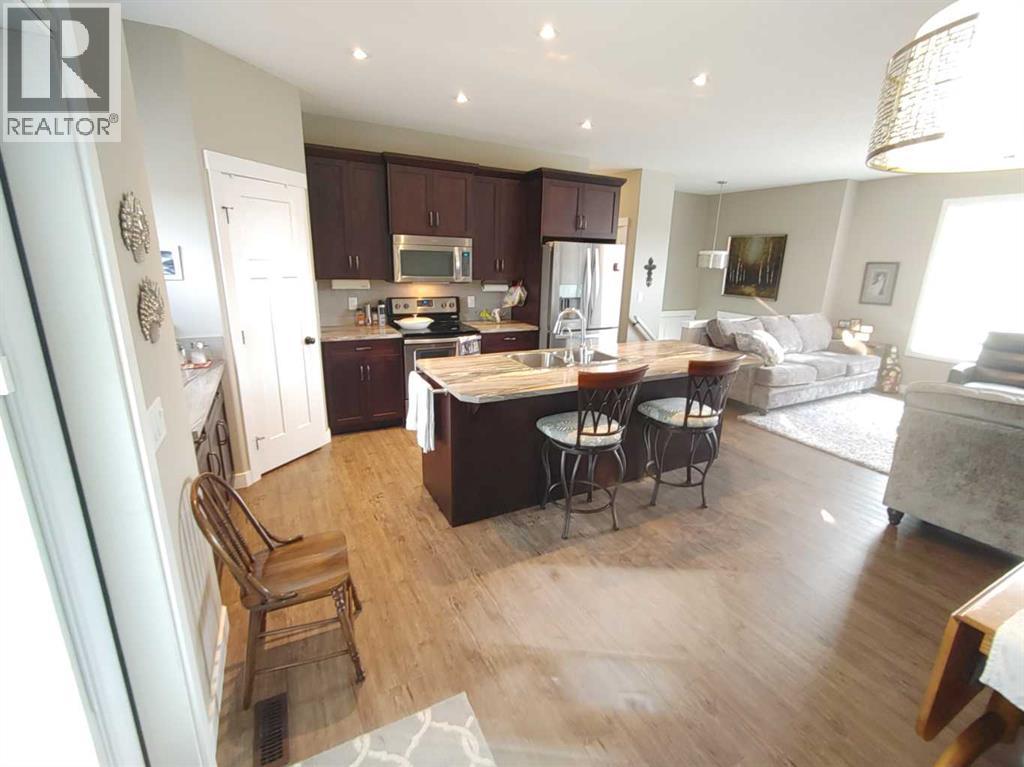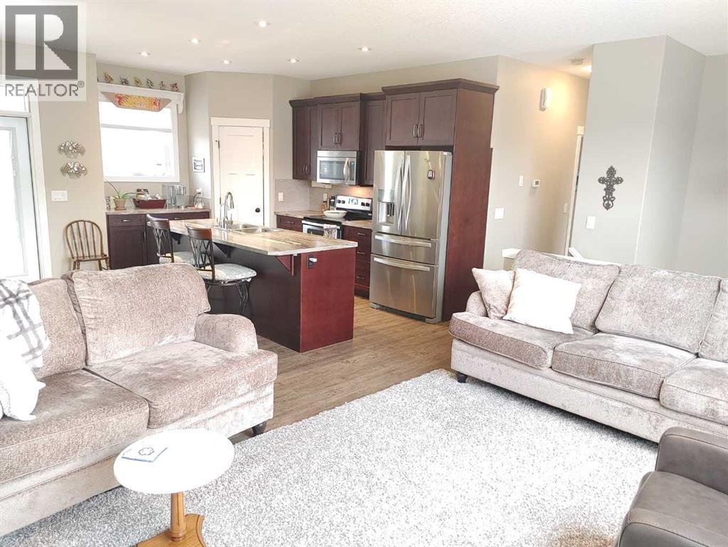 This very well maintained 4 bedroom, 3 full bath, family home in Diamond Valley is situated on a largelot with alley access. It is fully developed and move in ready.The main level has an open floor plan with large living room windows and a garden door off the diningroom that let in lots of natural light. In the kitchen is a large island that can seat four, a corner pantry, andcoffee bar. The fridge and dishwasher have both been upgraded. Also on the main level is roughed incentral vacuum pipe.The primary bedroom has a 4 piece ensuite as well as a roomy walk in closet. There is a second bedroomand another 4 piece main bathroom on the main floor.The large windows on the lower level also provide ample light. This level is completely finished with 2more good sized bedrooms, a third 3 piece bathroom, a laundry room, and lots of storage under the stairs.The garden doors off the dining room lead to an upper deck with room for your BBQ (natural gas valvelocated on deck.) Take in the view of the countryside from the upper deck, or relax on the 11 x 32 ftlower deck. The lighted pergola, wood garden arch and two planter boxes are included.You’ll have more time to relax with the ZERO SCAPE BACK YARD!The handy-person/mechanic will love the OVERSIZE 24 X 26 ft SHOP WITH 12 FOOT CEILING and11 FOOT HIGH GARAGE DOOR. It’s heated, wired, drywalled, taped and painted.Also outside is a 4 ft x 8 ft shed, and extra large gravel pad for your RV or boat.Watts LED permanent lights have been installed on the front exterior of the house.This home is just a 5 minute walk from great restaurants, bars, pharmacy and post office. (id:58070)