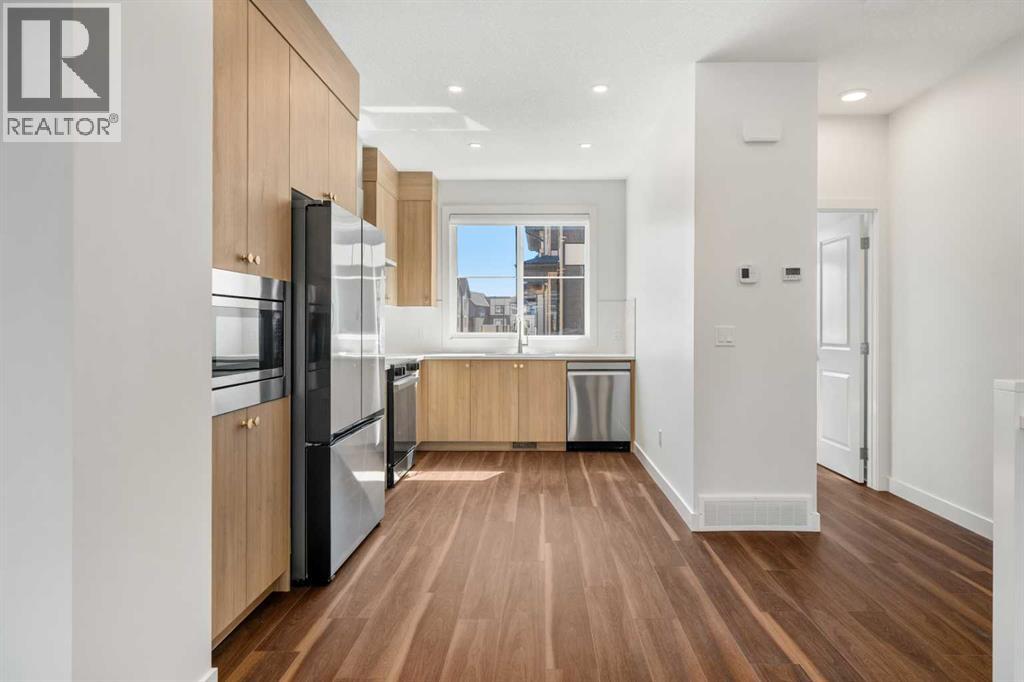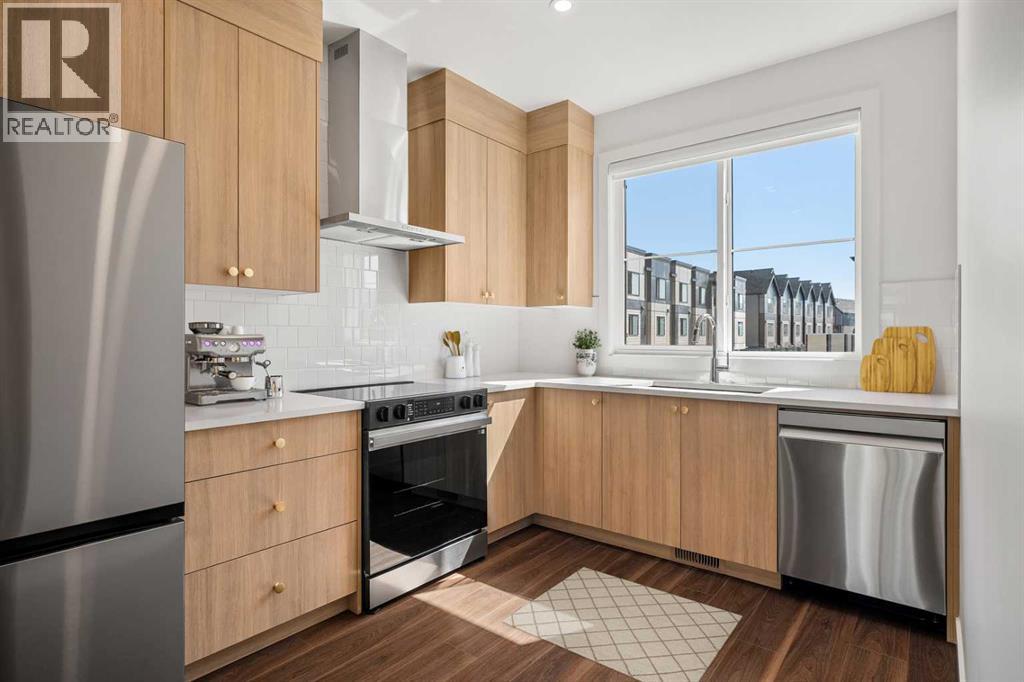 ****Open Saturday and Sunday 2pm to 4pm, stop by Showhome for Access*** Welcome to this modern 3-level townhome that combines style, function, and comfort in a highly desirable community of Seton. Offering 2 bedrooms, 2.5 bathrooms, and a versatile layout, this home is designed to meet today’s lifestyle needs.The bright and open main floor features a semi built-in kitchen with sleek quartz countertops, a gas line to the range, stainless steel appliances, and warm wood cabinetry. The adjacent dining and living area is enhanced with extra lighting, creating a welcoming atmosphere perfect for entertaining or relaxing. Step outside onto your balcony for morning coffee or evening barbecues with the added convenience of a gas line hookup.Upstairs, you’ll find 2 spacious bedrooms including a primary suite with a private ensuite and ample closet space. A second full bathroom and laundry complete the upper level, providing convenience and privacy. The home includes luxury vinyl plank flooring throughout and carpeting in throughout the upstairs. Additional highlights include quartz counters throughout, AC rough-in for future cooling, and a second balcony to enjoy fresh air and views. The ground level offers a 2-car tandem garage providing plenty of storage and parking flexibility.This home offers simplified living without sacrificing space. Located in a thoughtfully planned community, you’re surrounded by modern design, green spaces, and easy access to amenities, schools, and commuter routes. If you’re seeking a home with modern finishes and thoughtful upgrades, this townhome is an excellent choice. (id:58070)