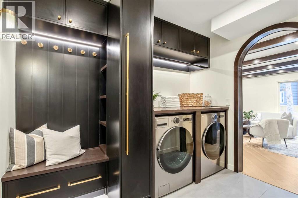 OPEN HOUSE: SUNDAY, MAR. 27: 11-2 PM | Welcome to Eleanor—an elegant, elevated, and exceptionally well-crafted home in the sought-after community of Oakridge. A fully renovated down to the studs home with over $600,000+ INVESTED (including all-new plumbing, electrical, and HVAC runs completed with all required city permits). Nestled on a quiet, tree-lined street, this home offers four bedrooms, a dedicated office and 2,366+ sq ft of living space, and an additional 500+ sq ft of crawl-space storage (not included in total living space). Situated on an expansive ~7,000 sq ft lot, only minutes away from South Glenmore Park, scenic pathways, and steps from Louis Riel School, Oakridge Community Centre, Stoney Trail, and more. The exterior of the home is striking yet inviting, featuring Hardie and Smart Panel siding, stained cedar soffits, new roofing and eavestroughs, and meticulously designed landscaping. The entry is equally refined, with a cedar-covered patio, garden-ready planters, and a stunning entrance inviting you home. Inside, sunlight fills every room through new triple-pane windows, white oak floors, curved oak arches, columns, beams, and white-oak butcher block shelving throughout. The main level features a Nordic-inspired kitchen with Taj Mahal counters, chocolate coloured white oak cabinetry, dovetail drawers and fluted detailing, a ~10-foot island with drop-down seating, a built-in coffee bar, and a glass wine display. Built-in appliances include a Fisher & Paykel fridge, freezer, and dishwasher, a Bosch 6-burner range, ZLINE convection oven, and Silhouette dual-temp wine fridge. The kitchen connects to the rear deck, creating a seamless transition between indoor and outdoor living. On the same level is the formal dining room and first living area, centred around a striking fireplace feature wall. Steps down, the main living room boasts dark oak ceiling beams, a second fireplace framed by custom arched cabinetry, a refined wet bar, and access to the backyar d patio. This level also includes a glass-enclosed office, powder room, laundry, mudroom, and access to the finished oversized double car garage with epoxy floors and EV and garage heater rough-ins. Upstairs, the primary is a serene retreat featuring a fluted soaker tub, oversized double shower, champagne bronze fixtures, a walk-in closet, and a built-in makeup vanity. Two additional well-sized bedrooms with built-in closets and a beautifully finished full bath complete the level. The basement includes a rec room/flex room, an additional fourth bedroom, a three-piece bath with spa-calibre shower, cedar sauna and ample storage. Heated floors and champagne bronze fixtures are featured in all bathrooms. There’s new batt and blow-in insulation, a tankless water heater, central A/C, sump pump, solid core doors, smart home features, camera CAT-6 roughed-in, new drywall and a BBQ gas line on the deck. Eleanor embodies refined design and understated luxury—a rare opportunity to make her your home! (id:58070)