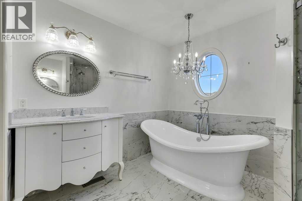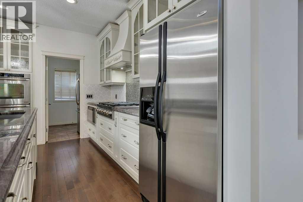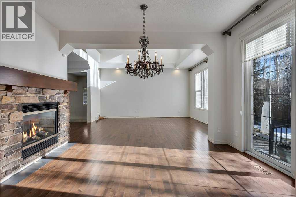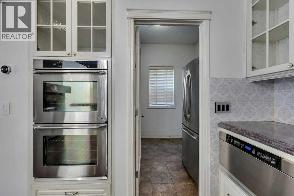 We are pleased to present this beautiful home, perfectly positioned on a large pie-shaped lot in a quiet cul-de-sac. Its striking curb appeal features a blend of stone accents and complementary stucco, setting the tone for the quality found throughout. Inside, the open floor plan showcases maple hardwood flooring, an expansive front entry, and abundant natural light from the large south-facing windows. The upgraded kitchen is a true highlight, offering a generous center island, stainless steel appliances, granite counters, gas stove, dual ovens, built-in microwave, and extensive cabinetry with elegant glass-front doors. A walk-in pantry with ample shelving connects conveniently to the mudroom and garage. A two-way fireplace adds warmth and ambience between the kitchen, living room, and dining area, all enhanced by soaring vaulted ceilings open to the upper level. The spacious main-floor office includes custom built-ins, mirrored closet cabinets, and a queen-size Murphy bed—ideal for a home workspace or an additional bedroom for guests. A well-appointed half bath completes the main floor. Patio doors with a retractable screen lead to the large south-facing patio, perfect for enjoying the sunshine. Upstairs, the primary suite features a walk-in closet and a beautifully upgraded five-piece ensuite with a luxury soaker tub, large walk-in shower, and updated fixtures. Two additional bedrooms, a four-piece bathroom, and upper-floor laundry provide comfort and convenience for the whole family. The lower level is roughed in and ready for your personal vision. Throughout the home, you’ll find custom Hunter Douglas blinds and shutters, including a remote-controlled blind for the high living-room windows. The professionally landscaped yard includes underground sprinklers with a controller, decorative lawn borders, a large latticed rear deck, an adjacent paving-stone patio, and front and back landscape lighting. The patio is equipped with a natural gas line, and both the f ence and deck were re-stained in 2024. Mature trees, shrubs, and perennials offer privacy and year-round beauty. This exceptional property is ready for new owners to make it their own. The location offers the perfect balance of nature and convenience, with quick access to river pathways, community walking trails, downtown, major routes north and south, and an easy drive west to the mountains. Please note: This is an estate sale. The property and all goods are sold "as is/where is". (id:58070)