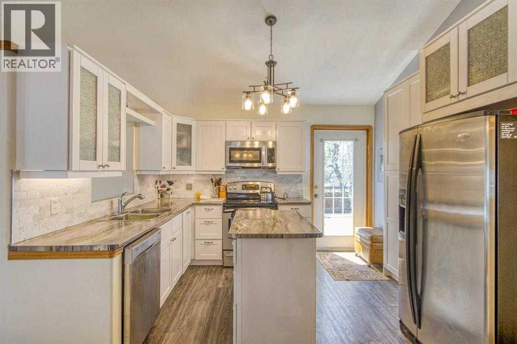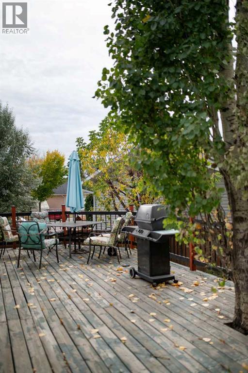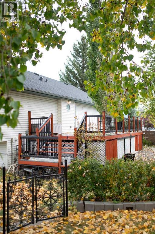 Located in a quiet cul-de-sac in Strathmore’s desirable Greenwood Meadows, this well-maintained home offers 4 bedrooms, 2 bathrooms, vaulted ceilings, and two fireplaces. The fully developed lower level includes a separate entrance, perfect for extended family, or home based business. Enjoy the huge south/west-facing deck, perfect for outdoor entertaining, overlooking a large yard with garden space, RV parking, and room to build a second garage or workshop. The oversized, heated double detached garage adds even more functionality. Upgrades include new shingles (2024), air conditioning, and updated mechanicals. Situated close to schools, sports facilities, shopping, and dining in Strathmore. A rare find with space, privacy, and potential — don’t miss out - call your AWESOME realtor today! (id:58070)