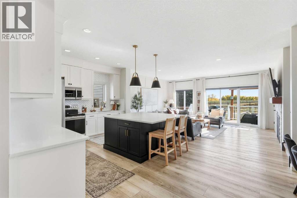 > > > PRICE IMPROVEMENT < < < Welcome to 221 Wildrose Drive — a stunning two-story home that blends thoughtful design, timeless style, and a true sense of warmth. Built in 2019, this 2,148 sq ft home sits in one of Strathmore’s most picturesque settings, backing onto the canal and walking path where you can listen to the peaceful sound of flowing water all summer long. Step inside to a bright and spacious entryway that connects beautifully to both the front attached garage and a large closet space. The main floor offers a functional and elegant layout — featuring a bright home office or den, a stylish half bath, and an open-concept living area filled with natural light. The kitchen is the heart of this home with its oversized square island, striking stylish lighting, walk-in pantry, and abundant storage. The dining area is framed by a large window, while the living room invites you to relax by the fireplace surrounded by windows that showcase the canal view. Upstairs, the primary retreat offers beautiful prairie and water views, a walk-in closet, and a spa-like ensuite with double vanity, soaker tub, and separate shower. A spacious bonus room, laundry with storage, two additional bedrooms, and a full bath complete the upper level. The fully developed basement continues the same elevated design — featuring a cozy family room with a shiplap-accented fireplace, a fitness area, a fourth bedroom, a full bathroom, and more storage. Step outside to enjoy a low-maintenance backyard with stunning stonework, a covered deck, and a custom pergola — the perfect spot to unwind while taking in the view of the canal and path behind. Wildrose is a welcoming, family-friendly community with access to parks, playgrounds, and pathways that connect seamlessly throughout town. Immaculate, light-filled, and move-in ready — this home truly shows like a show home and offers the perfect balance of style, comfort, and connection. (id:58070)