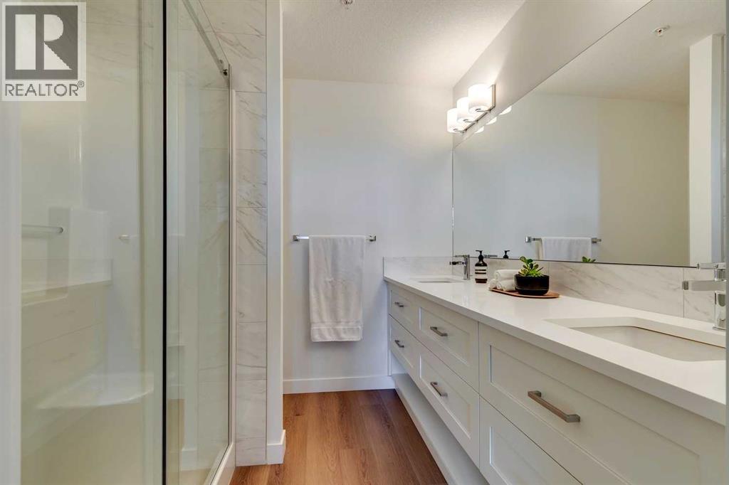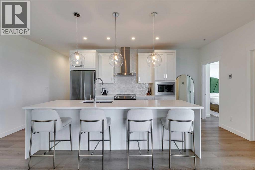 Welcome to 2216, 200 Seton Circle SE—a stylish and spacious corner unit in one of Calgary’s fastest-growing and most walkable neighbourhoods. With 915 sq ft of living space and over $30,000 in thoughtful upgrades at the time of build, this 2-bedroom condo is anything but standard. The kitchen is a true standout, with extended upper cabinets, a larger island, quartz countertops upgraded to a thicker 3cm slab, under-mount sink with upgraded faucet, premium KitchenAid appliance package, full-height tile backsplash, pot lights, and designer roller shades. Add in the luxury vinyl plank flooring that runs throughout, and you’ve got a space that looks sharp and lives easy. Both bathrooms were upgraded too, including an extended master vanity and a shower stall upgrade in place of the standard tub. And because Calgary summers can get hot, this condo comes with central A/C—something most units here don’t have. Being a corner unit, you’ll enjoy extra natural light and added privacy. The open layout makes the most of it, with a gas line on the balcony ready for your BBQ. The primary bedroom is generous, the second bedroom doubles nicely as a guest room or office, and everyday convenience comes with in-suite laundry, titled underground parking, and a private storage locker. Seton puts everything at your doorstep: the South Health Campus, YMCA, library, restaurants, shops, and more. Quick access to Deerfoot and Stoney Trail makes commuting simple, and the Seton HOA brings growing green spaces and community amenities to enjoy. This is a condo where everyday comfort meets smart design—and every upgrade was done right. For more information and photos, click the links below! (id:58070)