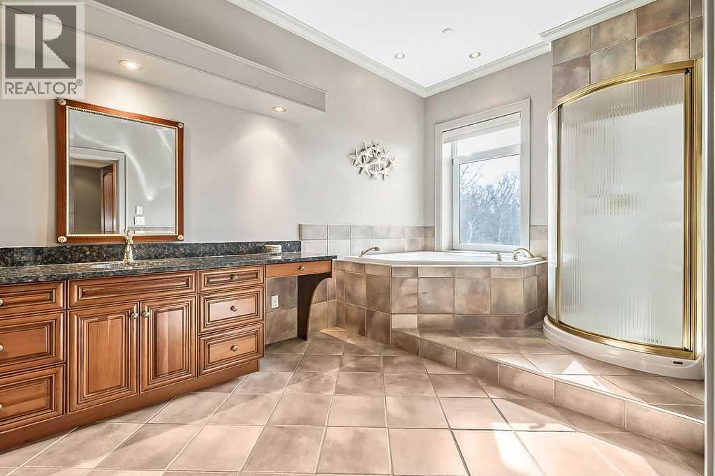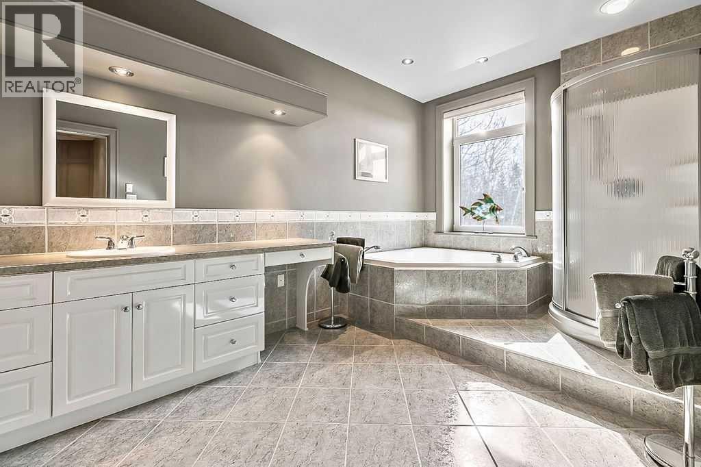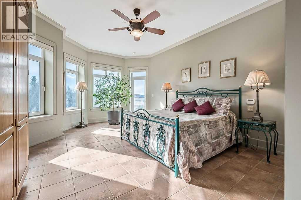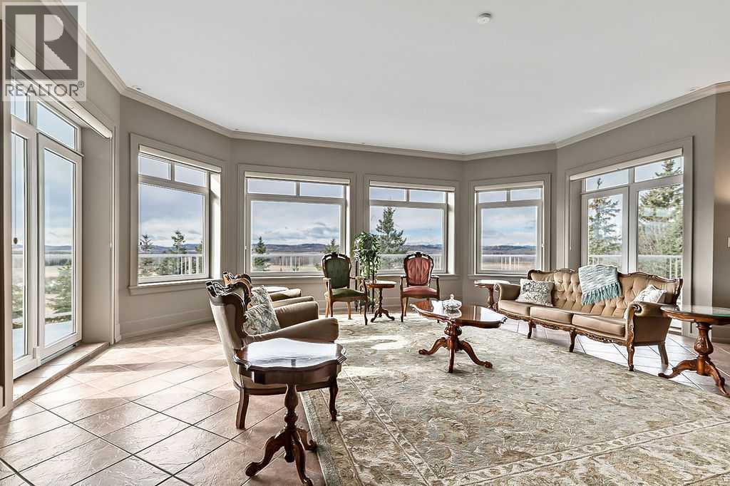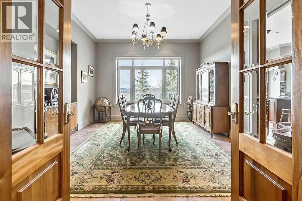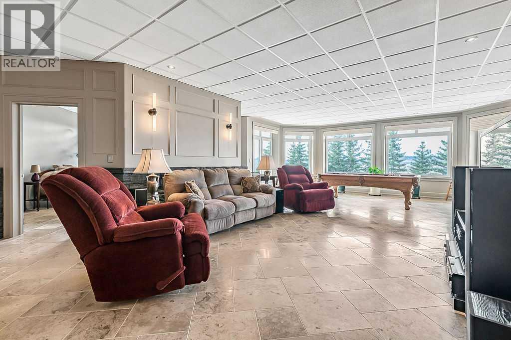With over 8,500 sq. ft of heated, developed space (3000 sq ft main; 3800 sq. ft. lower; 1800 sq. ft of attached garages) and set on an exquisite 3.41 acre lot nestled within the idyllic Millarville Ridge community, this hillside bungalow is the epitome of refined living, offering spectacular panoramic views of MOUNTAIN RANGES, rolling foothills and valley. Custom-built with ICF from foundation to rafters, this property features concrete floors with in-floor heating throughout, as well as an impressive twin boiler and HRV system—just some of the specialized features you'll appreciate. The homes living space spans an impressive 6810 sq ft and is graced with European influence. Enter the home's spacious foyer where a double sided gas fireplace invites you into a delightful living room accented by panoramic windows. For the culinary enthusiast, the kitchen is fully equipped with stainless steel KitchenAid appliances, including a built-in combination microwave / wall oven as well as a JennAir gas stovetop. Enjoy a casual breakfast and morning coffee in the cozy breakfast nook and when hosting those big holiday feasts, you'll love gathering in the adjoining dining room where you'll find plenty of room to seat the whole family. The master suite stands as a private retreat with a custom crafted wardrobe and direct access to a sprawling south-facing deck. The luxurious 6 piece ensuite features double sinks and an inviting deep soaker tub, perfect for unwinding after a long day. A conveniently located main floor laundry/mud room provides direct outdoor access, ample storage and a powder room. Heading downstairs, the lower level boasts a massive family / rec room where the whole family can gather for movie night or a friendly game of pool. 3 large, bright bedrooms, one with garden door access to the patio, all deliver outstanding views. There is potential for this home to accommodate a MULTI GENERATIONS FAMILY with the addition of a kitchenette in the basement. An easy trans formation of a spare room that is already plumbed for a 3 piece bath support the conversion. Direct access from the double attached garage into the lower level offers easy and private access. Need an extra room for a gym or office? We have that too with a 20' x 29’ dedicated space away from the hustle and bustle of the home. The outdoor spaces are equally impressive. Expansive decks provide ideal venues for entertaining or relaxing. The landscaped grounds, detailed with faux stone patios and a fire pit, invite outdoor gatherings beneath star-filled skies. Lastly the home is complemented by an oversized, double attached garage with granite epoxy flooring plus two single attached garage spaces—ALL HEATED! A gated entrance and hard wired security system ensure added privacy and peace of mind. Please take a moment to view the SUPPLEMENTS for an extensive list that highlight the safety and ENERGY EFFICIENCIES that were top of mind while designing the home. **AERIAL VIDEO AVAILABLE TO VIEW IN IN MULTIMEDIA** (id:58070)