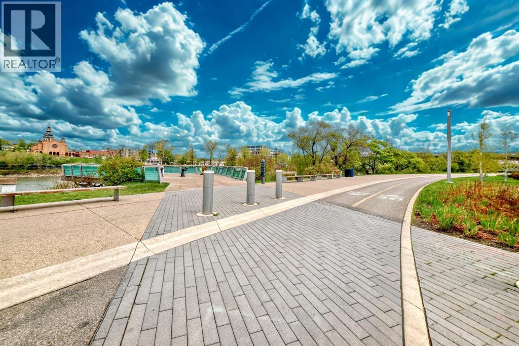 Magnificent RIVERFRONT 9' Ceiling CORNER UNIT in heart of downtown access to +15. NEW Carpet & Paint ---- Amazing downtown riverfront 2 bed / 2 bath condo in prime location. This large corner unit has unobstructed views of the Bow River. Lots of natural sunlight combined with magnificent sunrise and sunset views of the bow river / center street bridge. Enjoy the open kitchen with fridge, stove, microwave, dishwasher with lots of cabinet space and granite countertops. Additional unit features include 9ft ceilings, secure underground parking, storage locker (available for rent), secure bicycle storage, in-floor heating, in-suite laundry, covered deck and a beautiful fireplace.The +15 located across the street provides quick access to work, restaurants, clubs, shopping and recreation. The area is walking distance to restaurants, night life, great food, multiple LRT Stations, Central Public Library, Prince’s Island Park, Chinatown and of course downtown offices. The upgraded river walk right in front of the building and is perfect for walking, jogging or biking. (id:58070)