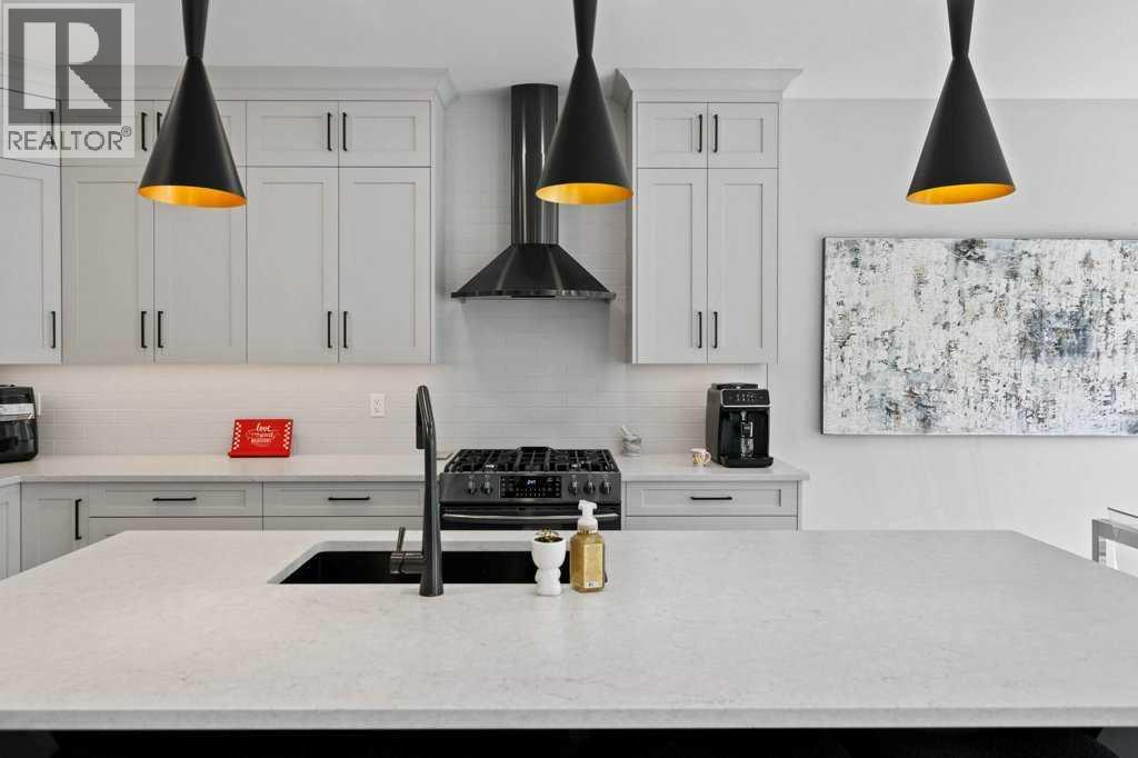 Be prepared to be wowed by this extensively renovated two storey home in the desirable Cranston Estates, complete with striking curb appeal and a triple heated garage. Over the past three years, a significant investment has been made to thoughtfully modernize and upgrade this home from top to bottom, creating a truly turnkey property that blends luxury with functional family living. The main floor welcomes you with a spacious foyer and a custom designed den featuring sleek built-in cabinetry and a dedicated desk area, ideal for working from home. The fully renovated kitchen is a showstopper, boasting full-height custom white cabinetry, top-of-the-line appliances, quartz countertops, and a dark-stained, oversized island that creates stunning contrast and provides ample space for entertaining. The adjacent dining nook offers access to the rear deck and flows seamlessly into the bright, open-concept great room with a cozy gas fireplace. A large mudroom/laundry area and a stylish half bath complete the main level. Upstairs, you’ll find a bonus room loft area, perfect as a lounge or play space, a spacious primary suite with a luxurious, fully reimagined 5-piece ensuite, and a walk-in closet designed with California Closets. Bedrooms two and three are well sized, each with closet built-ins, and one cleverly outfitted with Murphy bunk beds. A tastefully modernized 4-piece bathroom completes the upper level. The fully finished lower level offers even more living space with a 3-piece bathroom, a rec room featuring an electric fireplace, a fourth bedroom, and a utility room. The west-facing backyard is entirely maintenance-free, finished with premium artificial turf, while the front yard is beautifully landscaped with stonework and shrubs for year-round curb appeal. The list of renovations is extensive and showcases the quality and care put into this home. GEMSTONE exterior lighting adds elegance and flair, while the Caséta smart lighting system offers cutting-edge convenienc e. Ultra-durable luxury vinyl tile flooring spans the main and upper levels, complemented by UV-blocking window film on all windows to enhance comfort and efficiency. Every closet has been customized with California Closets, all bathrooms have been renovated to a high standard, and designer lighting fixtures have been thoughtfully selected throughout. The triple heated garage features epoxy flooring, and the home is equipped with central air conditioning for year-round comfort. Beautiful inside and out, this exceptional home is located just steps from schools, amenities, golf, Fish Creek Park, and the community pathway system, with easy access to both Stoney and Deerfoot Trail. Residents also enjoy access to the Cranston Community Centre, offering tennis courts, a hockey rink, basketball courts, a playground, and a splash park, perfect for families and outdoor enthusiasts alike. Don’t miss your chance to own this extensively renovated, high-end home! Cranston living at its absolute finest! (id:58070)
