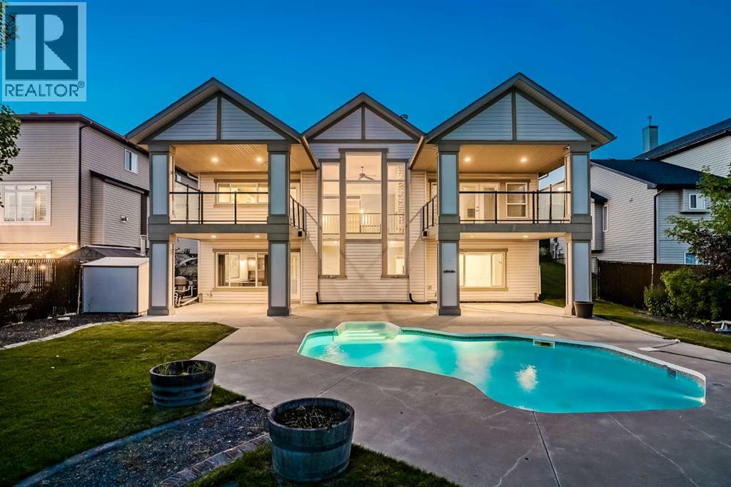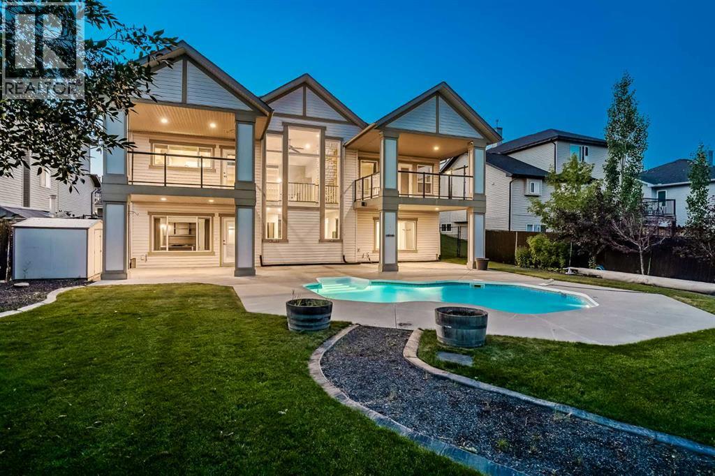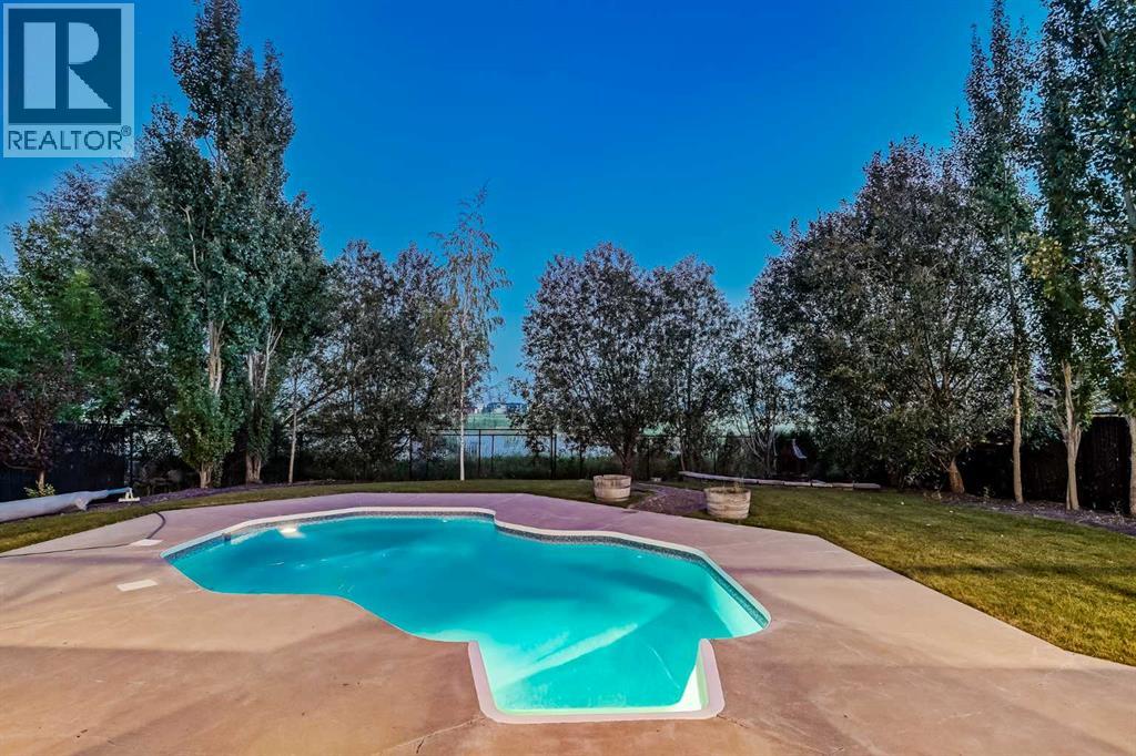 **OPEN HOUSE SUNDAY NOV 2ND 1-3PM** Welcome to your custom DREAM HOME, perfectly backing onto tranquil GREENSPACE in Langdon! **This stunning bungalow offers over 3,400 sq. ft. of exquisitely finished living space, complete with a fully developed WALKOUT BASEMENT and a HEATED IN-GROUND POOL! Situated on a quiet street, this 0.23-acre property is fully landscaped with UNDERGROUND SPRINKLERS and the ultimate backyard OASIS! **At the heart of the home, the GOURMET KITCHEN features pristine white cabinetry, granite countertops, a spacious island with built-in microwave and wine storage, plus a butler’s pantry, convenient mudroom, and stylish half bath. Need a break from cooking? Step out onto one of TWO SUN-FILLED SOUTH-FACING BALCONIES, perfect for morning coffee or evening cocktails. **The living room makes a striking impression with its soaring 2-STOREY FLOOR TO CEILING WINDOWS and a gorgeous STONE-SURROUND FIREPLACE. Rich HARDWOOD flooring flows seamlessly through the open-concept kitchen, dining, and living areas, creating warmth and elegance. **Host memorable gatherings in the formal dining room, enhanced by SOARING 10' CEILINGS and elegant lighting. **The primary suite is a luxurious retreat, offering a SPA-LIKE 5PC ENSUITE with HEATED FLOORS, a SOAKER TUB, expansive DUAL SHOWER and a custom walk-in closet. From here, step out onto your SECOND sun-filled south-facing balcony where BREATHTAKING VIEWS set the stage for relaxing evenings. **The walkout lower level is equally impressive, showcasing ACID-ETCHED HEATED FLOORS, a FULL WET BAR, and a state-of-the-art MEDIA ROOM complete with THEATRE SEATING. Two additional bedrooms, a 3-piece bath, oversized laundry room, and a SPACIOUS PRIVATE OFFICE provide comfort and versatility. Step outside to the beautifully landscaped BACKYARD with cement patio, IN-GROUND POOL and no rear neighbours—perfect for poolside entertaining. **The triple-car garage with IN-FLOOR HEATING ensures practicality, luxury and convenience. **Lov e where you live—summers by the POOL, winters by the FIRE, and a truly amazing home built for FAMILY gatherings or entertaining! Don't miss this AMAZING opportunity!** (id:58070)