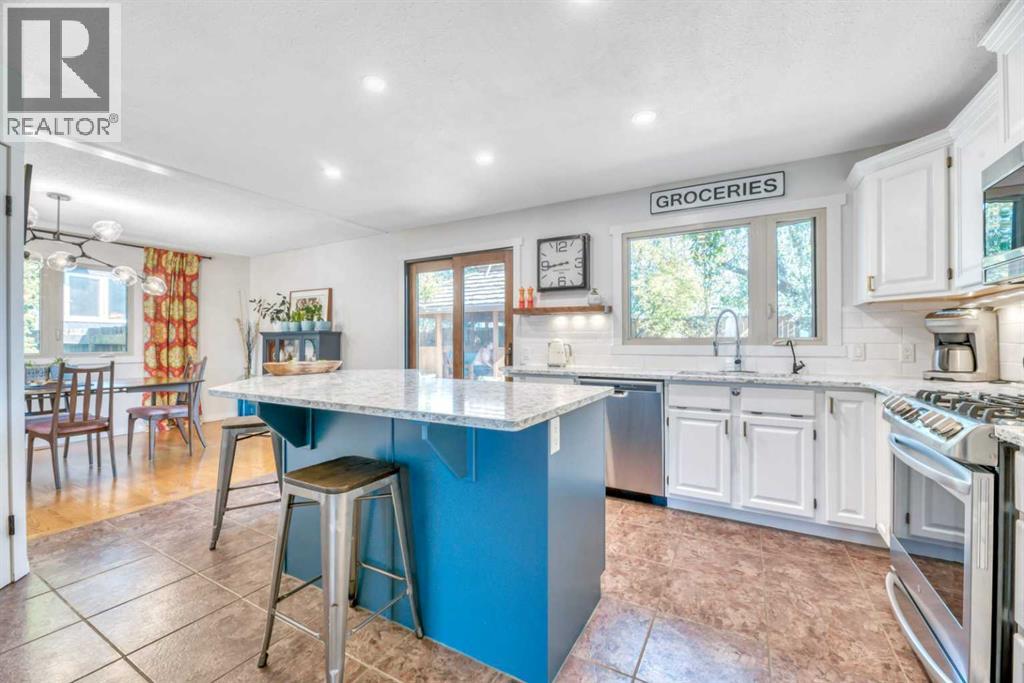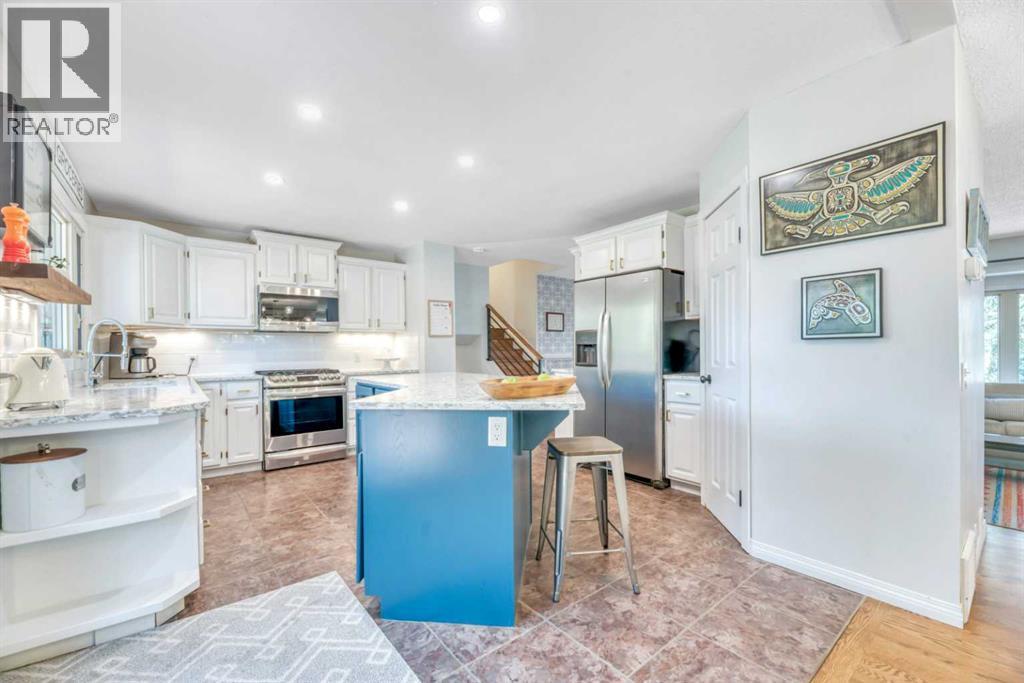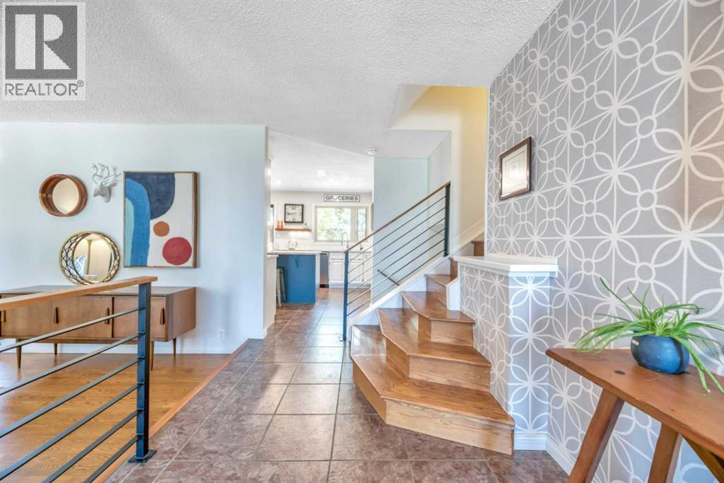 Welcome to this stunning split level home showcasing timeless brick curb appeal and a private, treed backyard that’s beautifully landscaped for both relaxation and entertaining. Step inside and you’ll find modern touches throughout—sleek lighting, contemporary railings, and a perfect mix of hardwood and tile floors. The bright white kitchen is a chef’s dream, featuring an island with granite countertops, a gas stove, and seamless flow into the dining area—perfect for family meals or hosting friends. At the front of the home, the living room offers a warm, welcoming space to gather.Upstairs, you’ll find three spacious bedrooms, including the primary suite with a walk-in closet and a stylishly updated 3-piece ensuite. A 3-piece main bath completes this level. The third level expands your living space with a large family room, a 3-piece bath, and a convenient mudroom. The finished basement adds even more flexibility with an additional bedroom and rec room. With its combination of charm, function, and plenty of room for everyone, this home is ready to welcome its next family. This home is situated an a huge lot with front yard views of a beautiful green space and park- gorgeous sunsets and Mountain Views in the morning! The maintenance free exterior offers peace of mind to a buyer and showcases the thougtfulness put into the design of the home! If you are looking for space to raise a family, enjoy all that Strathmore has to offer Call this one your! Amazing access to schools, shopping, pathways, parks- this one is a MUST SEE! (id:58070)