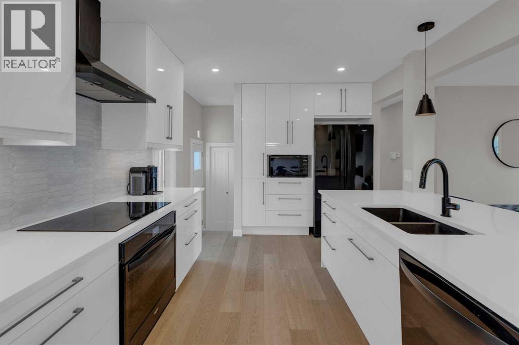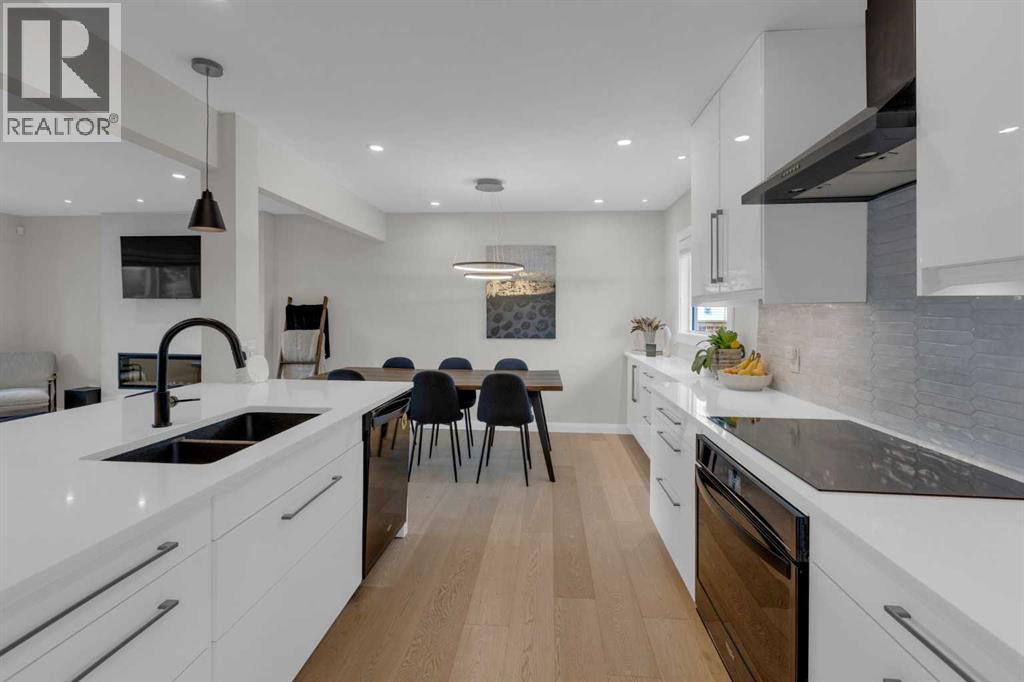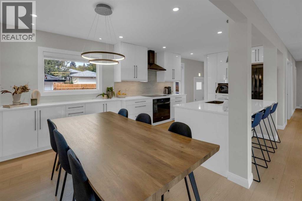 HOME SWEET HOME! OPEN HOUSE SATURDAY SEPTEMBER 13th, 2-4PM! Now is your rare opportunity to own a one of a kind bungalow situated in the heart of one of NW Calgary’s most popular and sought-after communities, Collingwood. This EXCEPTIONALLY RENOVATED BUNGALOW offers 4 bedrooms, 2 bathrooms, a FRESHLY UPDATED BASEMENT, 2,255+ SQFT of modern living space throughout, charming curb appeal with an inviting front porch/deck and unbeatable location steps from Nose Hill Park, Confederation Park and Confederation Golf Course. Heading inside you will be impressed by the flawless open concept floor plan with stunning hardwood flooring. The main floor offers a sun-drenched south facing living room with a chic electric fireplace, formal dining area and a modern gourmet chef’s kitchen with stone white quartz countertops, massive island, white panel soft close custom cabinets with black handles, white tiled backsplash and black appliances. Completing the main floor is a bright foyer, 2 generous sized bedrooms and the primary retreat with a walk in closet with built-in shelving and an upgraded 4 piece bathroom with a tiled stand-up shower and relaxing soaker tub. The newly renovated basement offers a living room/recreation room with a gas fireplace, a 4th bedroom with Egress windows, spacious laundry room with additional storage space and another updated 3 piece bathroom with a stand-up shower. UPGRADES include newer furnace, newer hot water tank, newer windows and upgraded city sewage pipes. Outside, you will find a single oversized detached garage with additional driveway parking, front porch with glass railings to enjoy your beautiful summer days, beautifully manicured backyard with a deck, patio stones and mature trees to add to your privacy. You will not find a better location, walking distance to the University of Calgary, Calgary Winter Club, Nosehill Park, Confederation Park, the LRT, shopping, parks, schools, major roadways and other major amenities. MUST VIEW! Book your p rivate viewing of this GEM today! (id:58070)
