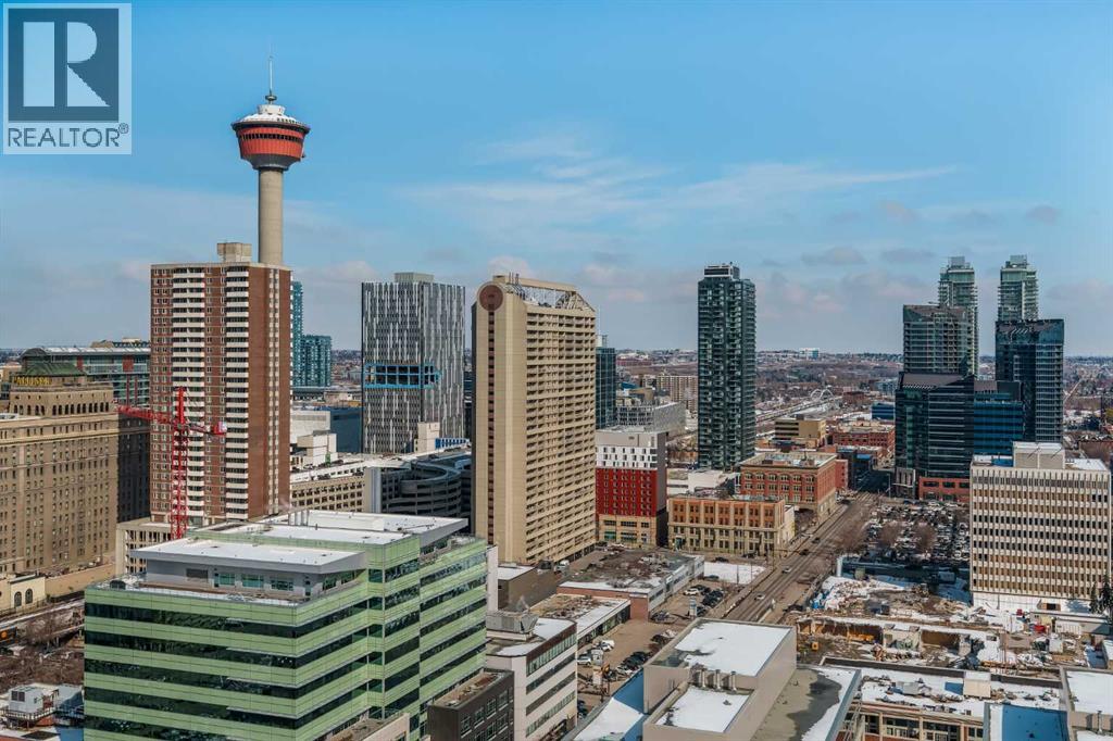 Welcome to Park Point, one of Calgary’s most sought after buildings in the heart of the Beltline. This one bedroom plus den is perfectly positioned on the 24th floor, offering stunning views of the Calgary Tower and the downtown skyline through floor to ceiling windows that fill the space with natural light. The thoughtfully designed layout includes a versatile den that is ideal for a home office, along with a modern kitchen featuring sleek cabinetry, integrated appliances, and clean contemporary finishes. The open concept living area flows seamlessly onto your private balcony, where you can take in the city views day and night. This home also features air conditioning and titled underground parking for year round comfort and convenience. This location offers an exceptional walkability score of 98 out of 100, putting Calgary’s best dining and amenities right at your doorstep. Ten Foot Henry, Native Tongues Taqueria, Bridgette Bar, Major Tom Bar, Proof Cocktail Bar, Analog Coffee, Deville Coffee, and Park by Sidewalk Citizen are all just steps from your door. Park Point is a pet friendly building and offers premier amenities including concierge service, a fully equipped fitness centre, yoga studio, sauna and steam room, social lounge, and beautifully designed outdoor spaces. Perfect for professionals, investors, or anyone looking to enjoy vibrant inner city living with incredible views, top tier dining, and unbeatable walkability. (id:58070)