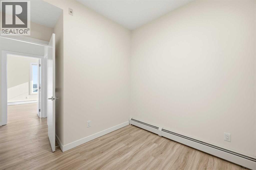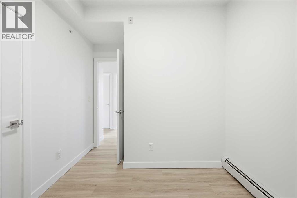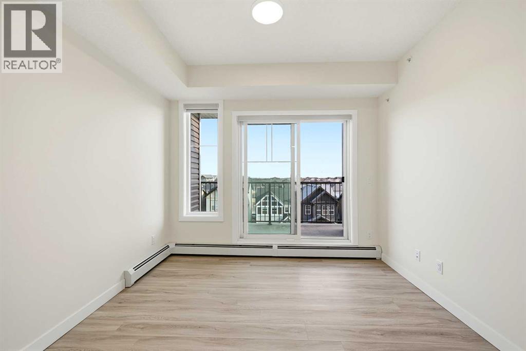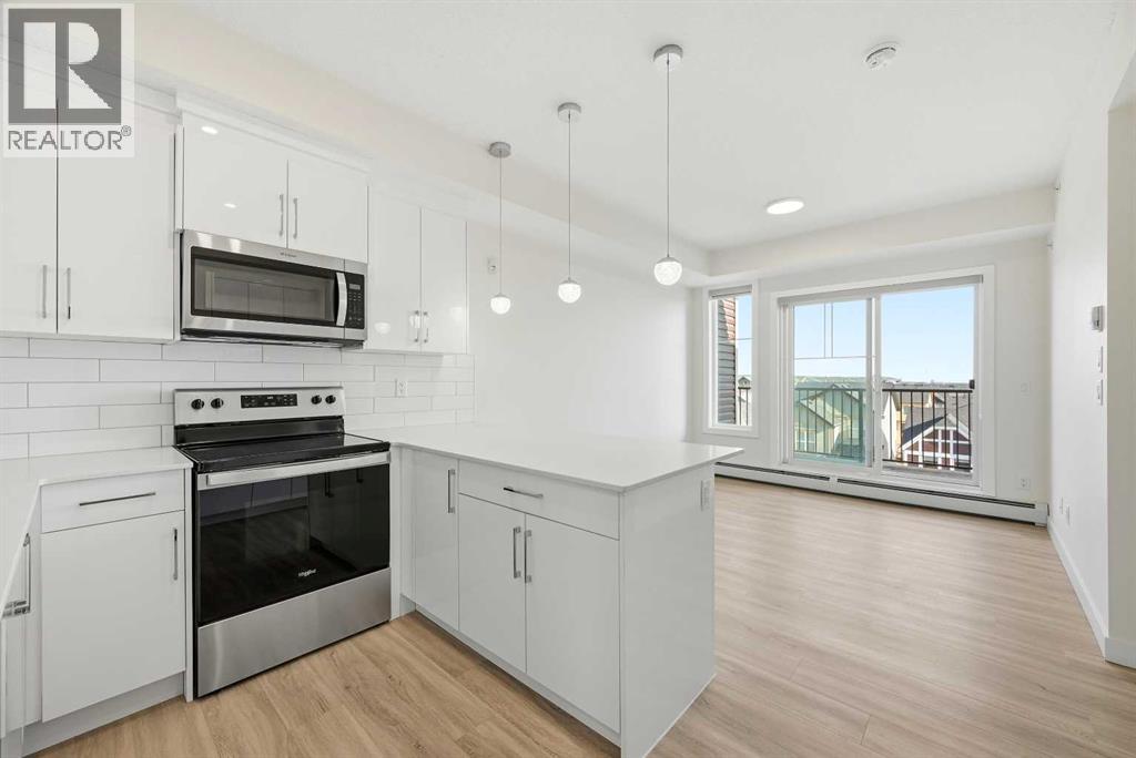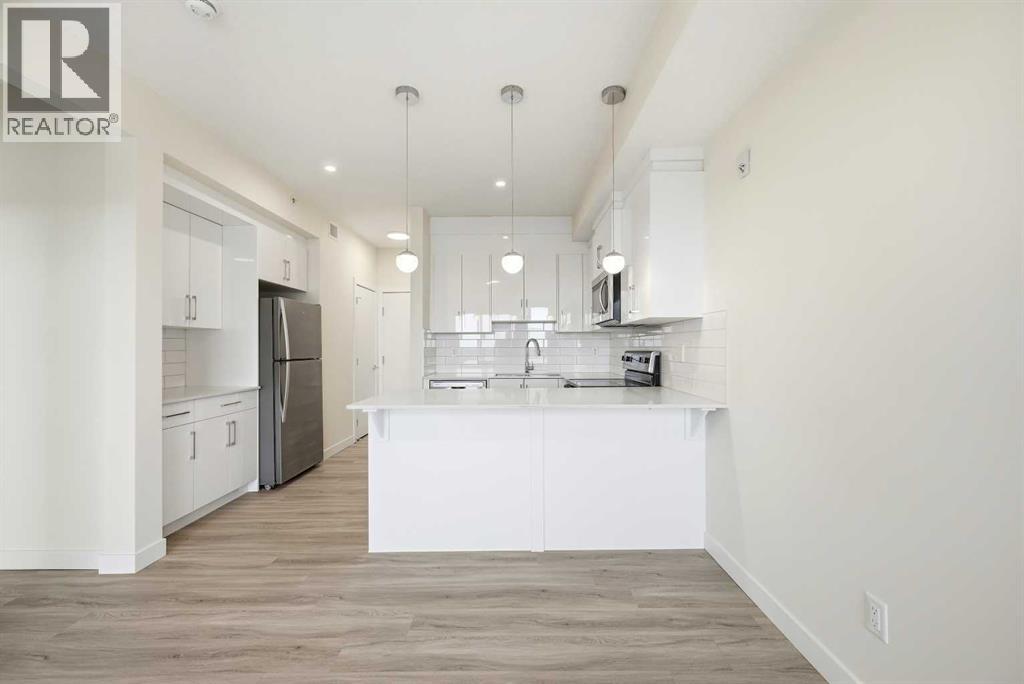 TOP FLOOR/CORNER UNIT/ BEAUTIFUL VIEWS FROM UNIT/2 BEDROOM/1 BATH/BALCONY. Discover modern living in this brand-new, never-occupied 2-bedroom, 1-bathroom condominium in the highly desirable community of Skyview Ranch NE Calgary Offering 656 of living space (Included Balcony) & immediate possession, this beautifully finished unit combines style, functionality, and convenience in one exceptional package. Key location features- WALKING DISTANCE TO SCHOOL, SHOPPING, PARK & more. Step inside to find a bright and airy open layout enhanced by 9-foot ceilings and oversized windows that allow natural light to pour in. The contemporary design is highlighted by wide-plank luxury vinyl flooring and elegant quartz surfaces throughout, creating a clean and upscale aesthetic. The kitchen is thoughtfully upgraded with stainless steel appliances, quartz countertops, soft-close cabinets, a generous PANTRY, and a convenient BREAKFAST ISLAND perfect for dining, meal prep, or casual entertaining. The kitchen flows effortlessly into the dining and living areas, providing a comfortable and welcoming space for both daily living and hosting guests. Two well-sized bedrooms offer flexibility for a home office, guest room, or roommate setup. The stylish 4-piece bathroom features modern finishes and quartz counters for a polished look. Additional features include in-suite laundry and upgraded window coverings for added comfort and privacy. Enjoy outdoor relaxation on the spacious private balcony complete with a gas line for BBQs—ideal for summer evenings. This unit also includes TITLED UNDERGROUND PARKING, a titled storage locker, and secure bike storage for added convenience. Located in a newly built complex, this property offers low-maintenance living close to shopping, schools, transit, major roadways including Stoney Trail, and Calgary International AIRPORT. Perfect for first-time buyers, young professionals, downsizers, or investors looking for a turnkey opportunity in a growing neighborho od. Move in right away or choose a flexible possession timeline to suit your needs. An excellent opportunity to own in one of Calgary’s most dynamic communities. Call your favorite realtor to book showings. (id:58070)