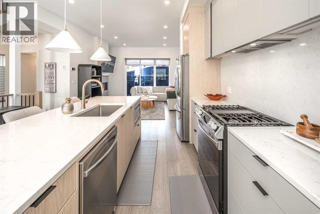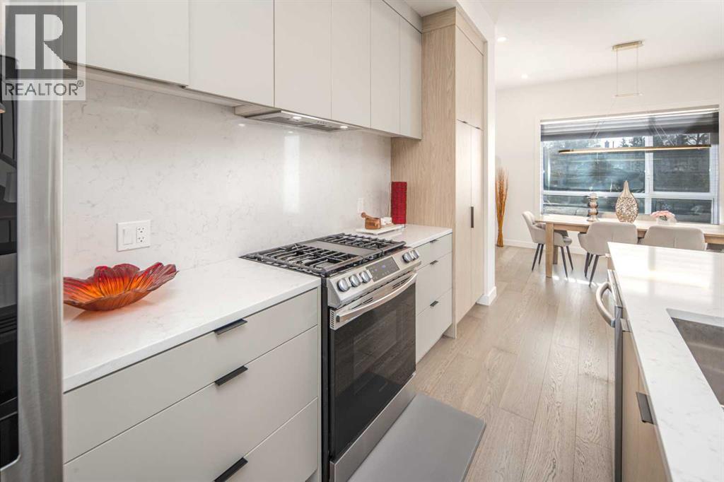 **OPEN HOUSE: 1-3 PM SAT&SUN OCT 25,26,2025 **Beautifully maintained 4-bedroom semi-detached infill in the heart of Richmond! This modern home offers nearly 1,700 sq.ft. of elegant living space with 10-ft ceilings on the main and 9-ft ceilings in the fully finished basement. The open-concept main floor features a bright living area with a gas fireplace and a designer kitchen with quartz countertops, full-height cabinetry, gas range, and stainless steel appliances. Upstairs showcases three bedrooms, including a spacious primary suite with a spa-inspired ensuite and dual sinks. The lower level includes a large recreation room, custom wet bar, guest bedroom, and full bath. Additional highlights include central A/C, custom closets, a Murphy bed, and a double detached garage. Situated on a quiet street close to Marda Loop, schools, parks, and downtown—this move-in-ready home perfectly combines comfort, style, and location. Call your Realtor today to book a private showing! (id:58070)