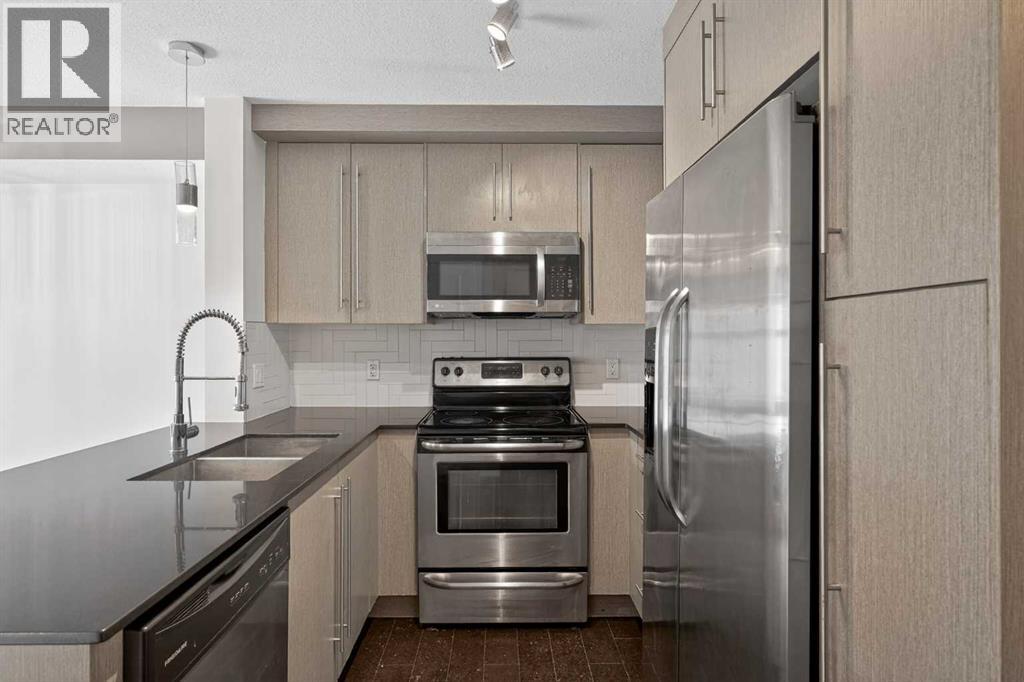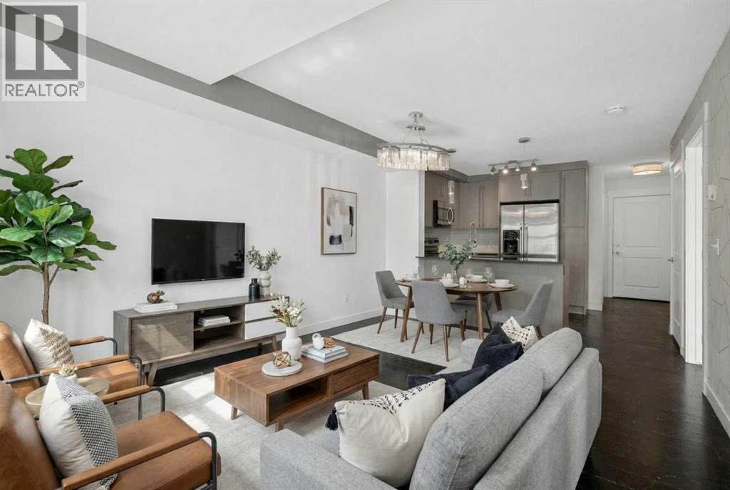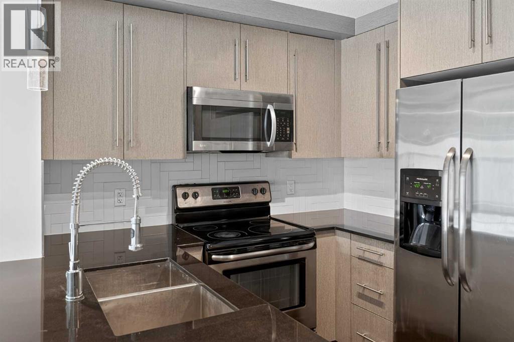 Welcome to 51 Oak. This gorgeous 2 bedroom, 1 bathroom top floor unit really does have it all!! As you enter you are greeted with an open floor plan designed with laminate floors throughout. Granite counter tops and stainless steel appliances line your chef inspired kitchen that opens to your dining area and living room making it the perfect space for entertaining or for quite nights at home with the family. The primary bedroom is a great size for all of your bedroom furniture and a window overlooking the courtyard. The second bedroom is also a great size and could also be the perfect space for a home office or gym. Your north-west facing balcony offers great views and is the best place for morning coffee or a glass of wine in the evening. With amazing shops, restaurants and Mahogany Lake within a few minutes walk from your front door, 51 Oak is one of Calgary's most desired complexes. Do not miss out on this opportunity to make this perfect unit your new home and obtain the lifestyle that comes with it. (id:58070)
