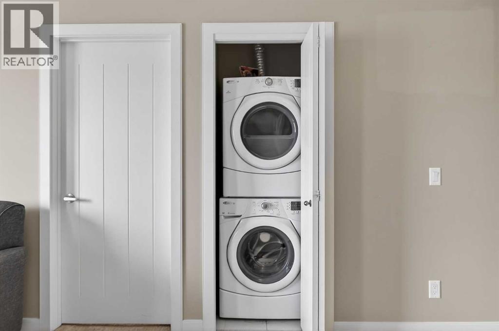 Welcome to this TOP FLOOR 2 BEDROOM + DEN, 2 FULL BATHROOM condo with TITLED UNDERGROUND PARKING in The Edge, ideally located beside EAST LAKE and GENESIS PLACE RECREATION CENTRE in Airdrie.This bright and well designed home offers an excellent floor plan with the bedrooms located on OPPOSITE SIDES OF THE UNIT, providing privacy that works well for shared living, guests, or a roommate situation. The primary bedroom features a walk through closet, private 4 piece ensuite, and direct access to the WEST FACING BALCONY.The open concept living space connects the kitchen, dining, and living room and is filled with natural light. The kitchen features granite countertops, stainless steel appliances, and ample cabinetry. The DEN offers a flexible space for a home office or additional storage and is conveniently located beside the second full bathroom.Step outside to the large WEST FACING BALCONY, accessible from both the living room and the primary bedroom, an ideal spot to enjoy afternoon sun and evening sunsets.Additional highlights include IN SUITE LAUNDRY, TITLED UNDERGROUND PARKING, and a storage unit conveniently located at the front of the parking stall.Located steps from East Lake, walking paths, green space, schools, and Genesis Place recreation centre. Residents enjoy an active lifestyle with year round recreation, fitness facilities, and beautiful outdoor space right outside the building. Shopping, restaurants, and quick access to Deerfoot Trail make commuting into Calgary convenient.With its TOP FLOOR location, smart layout, and access to East Lake and Genesis Place, this is an excellent opportunity for FIRST TIME BUYERS, DOWNSIZERS, or INVESTORS looking for a well located property in Airdrie. Book your showing today. (id:58070)