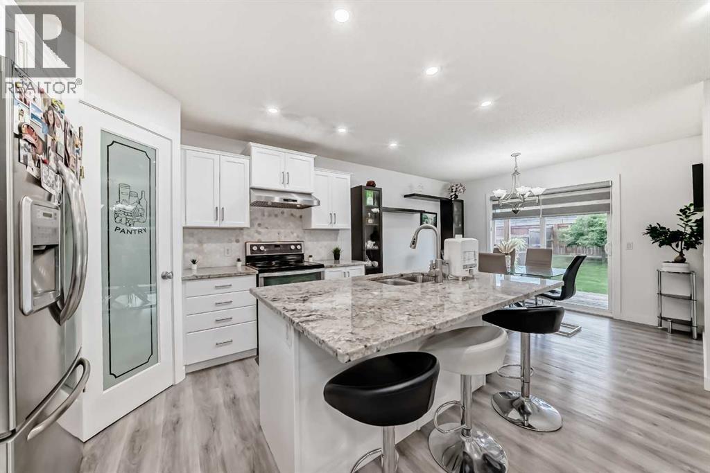 SPACIOUS LIVING SPACE 2,234.7 SQ.FT. HOME + BIG GARAGE — perfectly situated on a QUIET CUL-DE-SAC IN NEW BRIGHTON! Walk to NEW BRIGHTON PUBLIC SCHOOL, close to ST. ALBERT THE GREAT, NEW BRIGHTON CLUB, parks, transit, and High Street.FULLY LANDSCAPED YARD WITH ENTERTAINMENT SPACE — widened front drive, stone exterior accents, full-width deck, attached sun awning, fenced yard for kids and pets.OPEN-CONCEPT MAIN FLOOR — tiled front & garage entries, main-floor laundry, added storage, 2pc bath, corner gas fireplace, and a RENOVATED KITCHEN (2025) with center island, sil-granite sink, REAL MARBLE GRANITE counters, subway tile backsplash, stainless steel appliances, soft-close white cabinets & pantry.BRIGHT UPPER LEVEL — front bonus room with vaulted ceiling, 2 spacious kids’ bedrooms, large back master, and RENOVATED BATHROOMS with tile floors, granite counters, vessel sinks & modern faucets.FULLY FINISHED BASEMENT — rec room, flex room, built-in speakers, wall bar, full bath (2022), plus KARAOKE ROOM WITH SOUND ISOLATION.MAJOR UPGRADES LAST 5 YEARS — fresh paint (2025), new window coverings (2025), full kitchen renovation (2025), lighting (2024), flooring (2023), air conditioning (2023), new roof (2022), door alarms (front & back), casing & baseboard upgrades, quartz & granite countertops, plus other quality improvements since 2020.TURNKEY, MOVE-IN-READY HOME — stylish, functional, and loaded with features for today’s lifestyle! (id:58070)