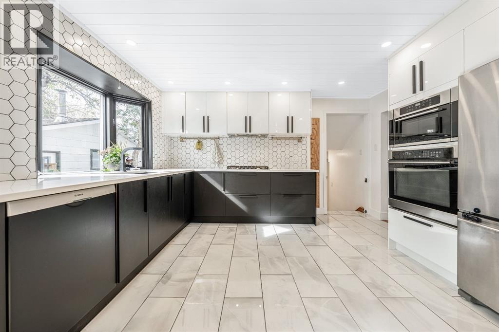 PEACE OF MIND UPDATE! Sellers are replacing the original Sewer Lines on Nov 12, 2025. Open House: Sat, Oct 25, 2-4 pm | Charleswood Charm with Stylish Updates! | Nestled on a peaceful, tree-lined street right in the heart of Charleswood, this beautifully updated four-level split is the perfect mix of charming character, modern convenience, and a welcoming, family-friendly community. With over 1,950 square feet of thoughtfully developed space, this home has been lovingly upgraded over the years to be both warm and stylish, and mechanically efficient. Step inside and you'll be greeted by gorgeous hardwood floors, rustic shiplap ceilings and wood panelled walls, and a bright, open-plan living space that feels inviting and effortlessly livable. The sleek designer kitchen is a dream for busy family life, with two-tone modern cabinetry, quartz countertops, stainless steel appliances, and plenty of counter space. The adjacent dining and living areas are both spacious and flexible, filled with natural light that creates a cheerful and homey vibe. Upstairs, you’ll find three comfortable bedrooms and a beautifully updated family bathroom. The lower level has a versatile fourth bedroom (or home office) along with an updated three-piece bathroom and fabulous dual purpose laundry-mudroom that keeps everything organized and the mess at bay. Check out the cozy family room in the lower level, with a stylish electric fireplace complimented by a wooden slat wall, and additional flexible space that’s perfect as a play space or exercise area. Out back, the south facing backyard feels like your own private oasis—complete with mature, fruit-bearing trees, lush landscaping, and enough space for outdoor fun and entertaining. The home also features a heated double detached garage in addition to the single attached garage, giving you plenty of parking and storage options. Located in one of Calgary’s most desirable NW neighbourhoods, you’re just minutes from the University, K-9 schools, p arks, pathways, and all the amenities you could need. Don’t miss your chance to own this beautifully updated charmer in ever-popular Charleswood! (id:58070)