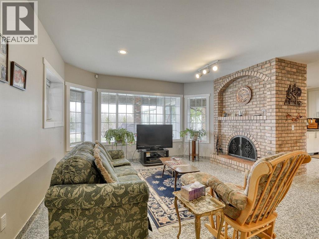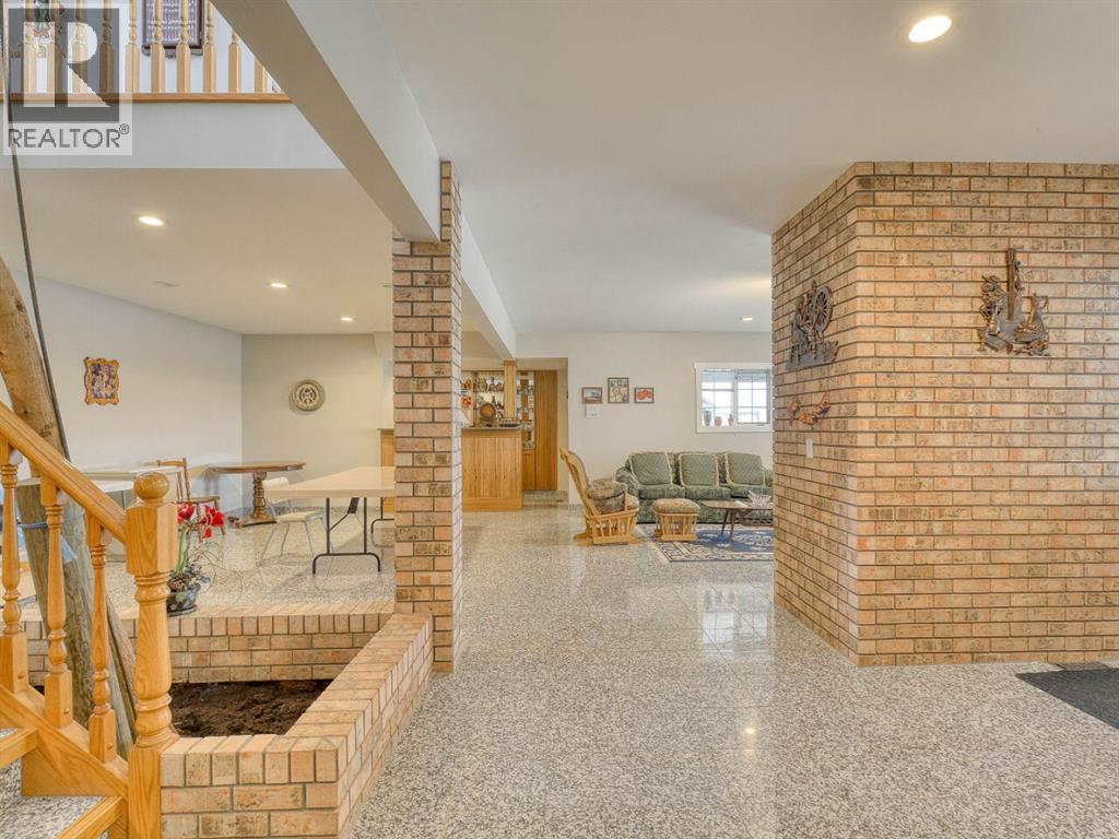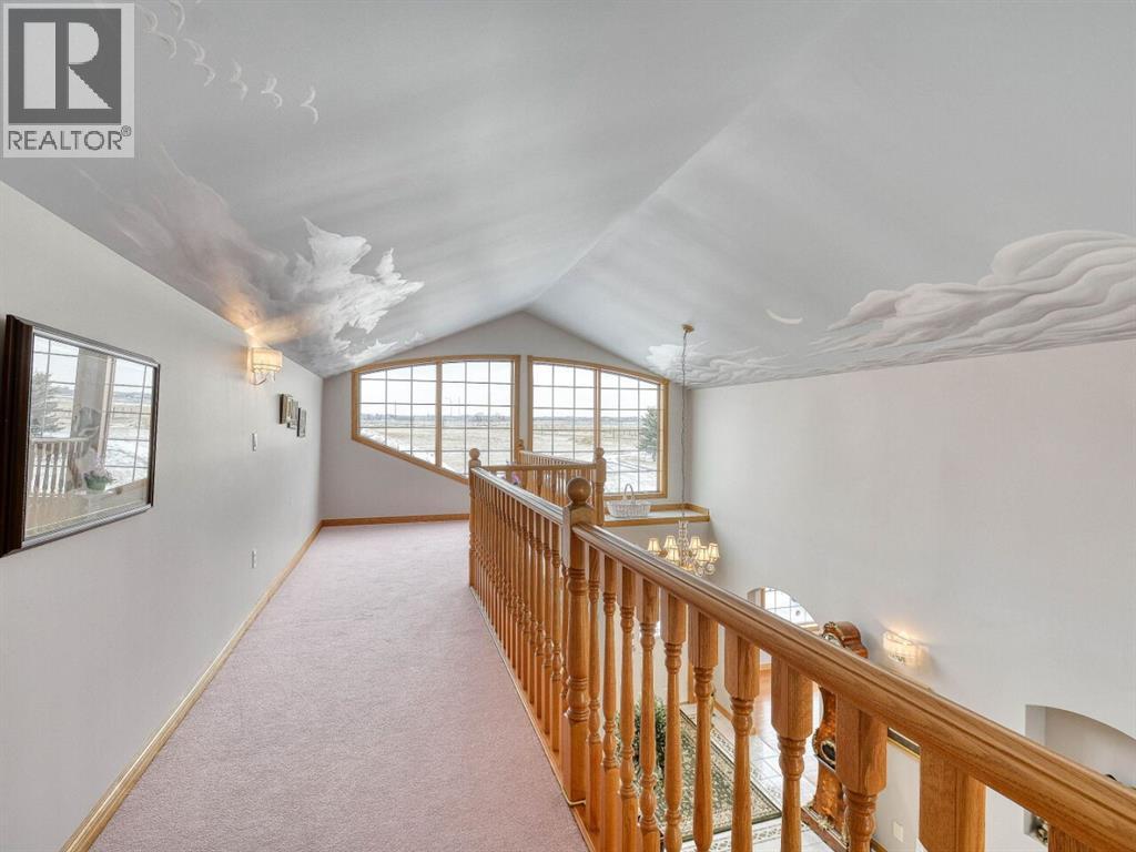 Immaculate Home close to Calgary situated on a sub-dividable 15.99 acre lot surrounded by beautiful trees and landscaping. Italian inspired construction with predominant concrete throughout and a cold room cellar that's naturally cold all year round without mechanical intervention. The 3 Bedroom (two above grade) open concept Walkout Home is well illuminated and features a beautiful kitchen, eating area / dining room, upper loft flex room / floor, gas fire place on main floor, wood burning fire place on lower floor, split access from the garage to the lower level and main level, laundry roughed in upstairs and full laundry downstairs, wet bar downstairs, second kitchen on lower floor and den. Incredible attached heated greenhouse and enclosed patio in the back. (id:58070)