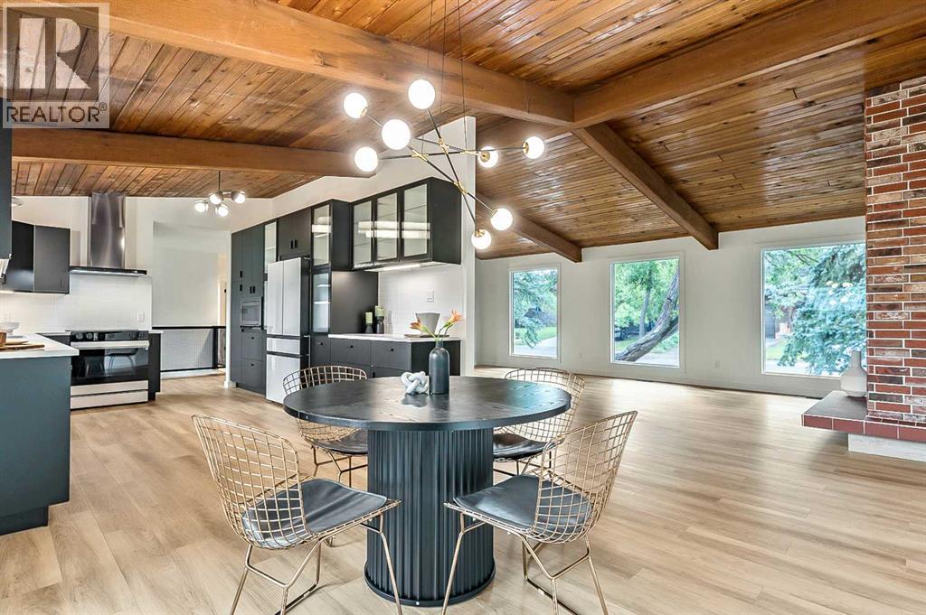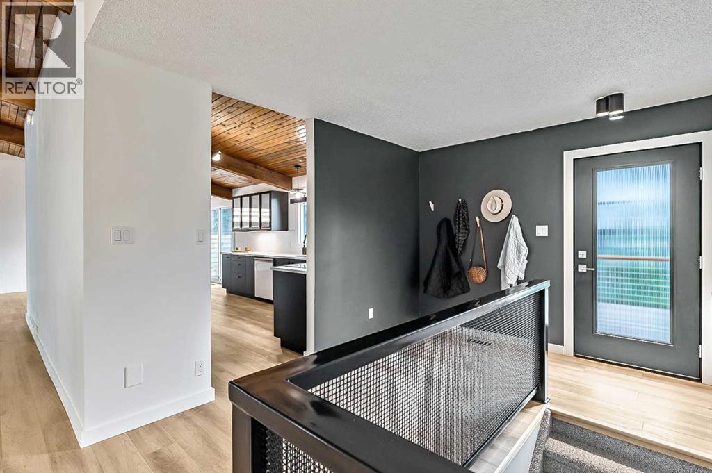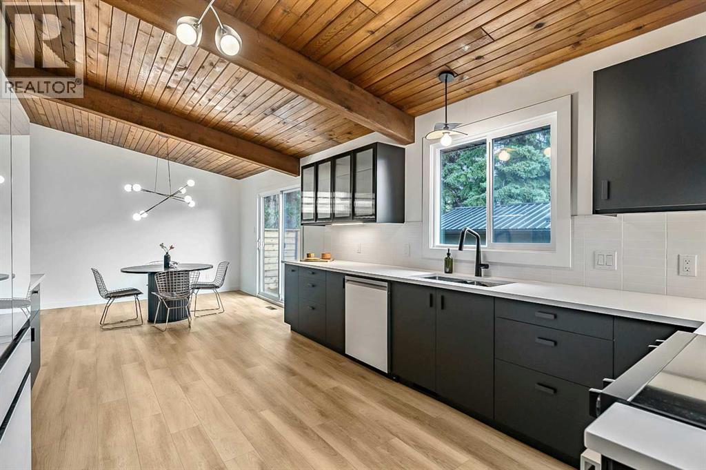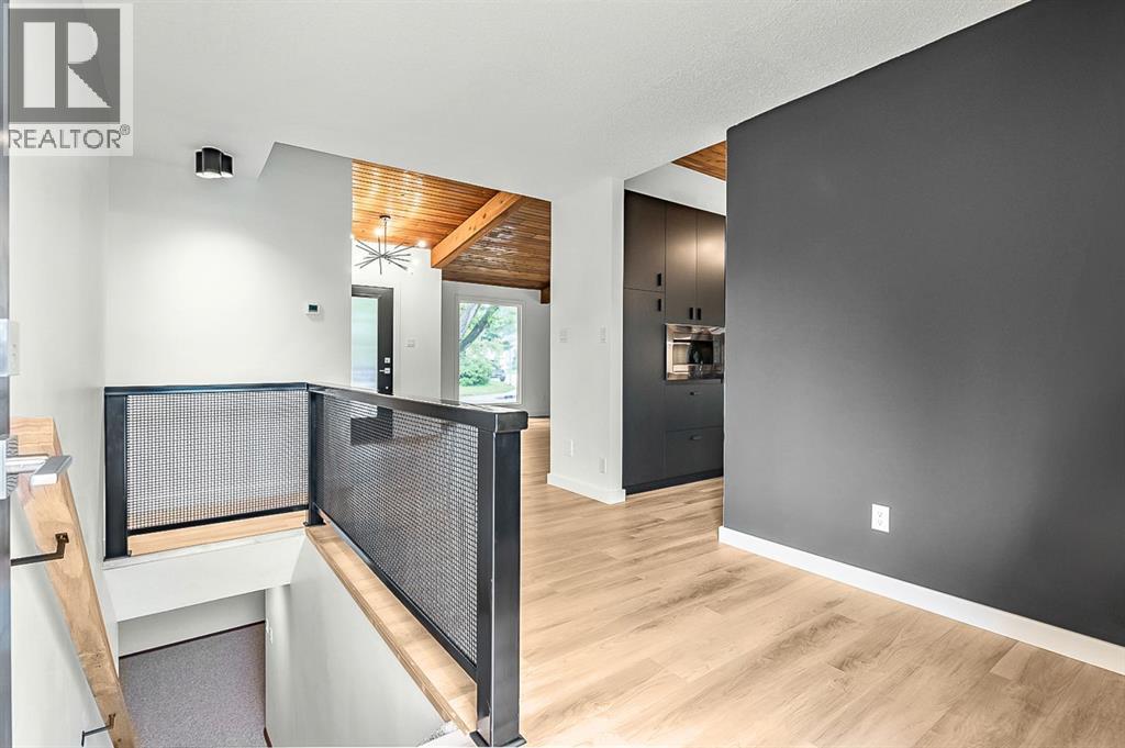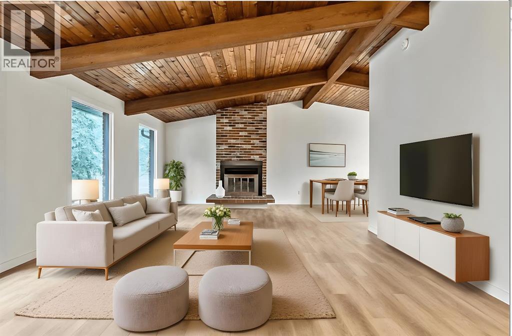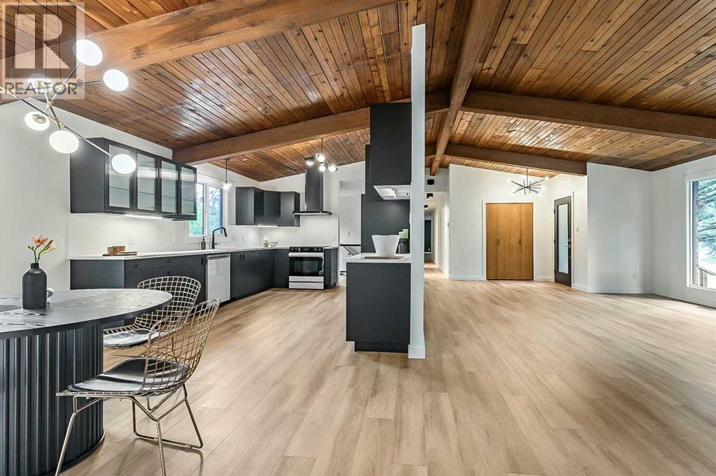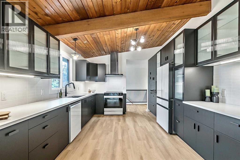 *** OPEN HOUSE *** Join us Saturday from 11 a.m. to 1 p.m. on November 8th. See how far your dollar can go in Nanton . Show-stopping renovation. You can’t build this quality for less. Over 3,700 sq ft of reimagined living in a fully transformed five-bedroom, 3.5-bath corner home. Every detail is tailored for modern living while preserving structure and style.This is a move-in-ready home in an established neighbourhood.The exterior makes a refined statement with a new metal roof on both the garage and the home, all-new windows and doors, and sleek steel cable railings on the deck. A secluded yard with mature trees offers privacy and a perfect backdrop for outdoor gatherings, wrapped in new fencing and thoughtfully designed decks.Inside, architectural features abound. A show-stopping vaulted cedar ceiling blends clean lines with organic textures. Two wood-burning fireplaces add character and warmth. All-new flooring flows throughout—modern and durable vinyl plank upstairs, plush carpet down, and wall-to-wall tile in the spa bathroom. Fresh cloud-white walls are paired with reclaimed trim and character-rich wood panelling, lovingly restored.The kitchen is a contemporary centrepiece with a mix of solid and glass fronts, an abundance of storage, quartz counters, Samsung Bespoke appliances, and a custom tile backsplash. Each bathroom feels like a boutique spa, from the heated tile floors and cedar sauna in the lower-level bath to the cork wallpaper and floating vanities in the primary suite.A versatile bonus room offers endless possibilities for work, play, or relaxation. Updated mechanicals include a new furnace, serviced secondary furnace, new hot water tank, and upgraded electrical. New hardware, fixtures, lighting, and thoughtful touches—like the custom steel railing and reclaimed oak banister—complete the transformation.Close to schools and everyday conveniences, this is a must-see modern masterpiece that effortlessly blends design, function, and comfort— ready to welcome your next chapter beautifully. (id:58070)
