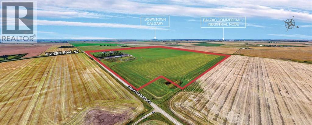 DEVELOPMENT LAND + 2 HOUSES As the surrounding community continues to grow and the demand for logistics and commercial services increases, this parcel of land is ideally situated for future development. Potential for additional 140± Acres to be purchased - the site to the West also available for sale. The subject site is located east of Balzac, Rocky View County, AB, which has seen significant growth and development in recent years.About a 20 minute drive from Airdrie, AB and 18 minutes from Calgary, AB. Close proximity to some major commercial developments, including CrossIron Mills shopping centre, various industrial and logistics parks and retail developments, offering future potential for various types of developments if the parcel is rezoned.Quick and easy access to Crossiron Drive, Dwight McClellan/Metis Trail, Stoney Trail (Calgary ring road) and QE 2, as well as the Calgary International Airport. The Location Development Potential Property Details Driving Times FOR SALE | 156 ACRES ± (id:58070)