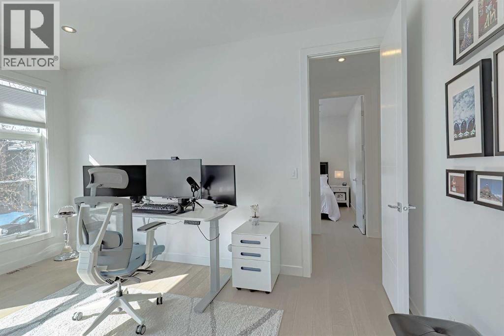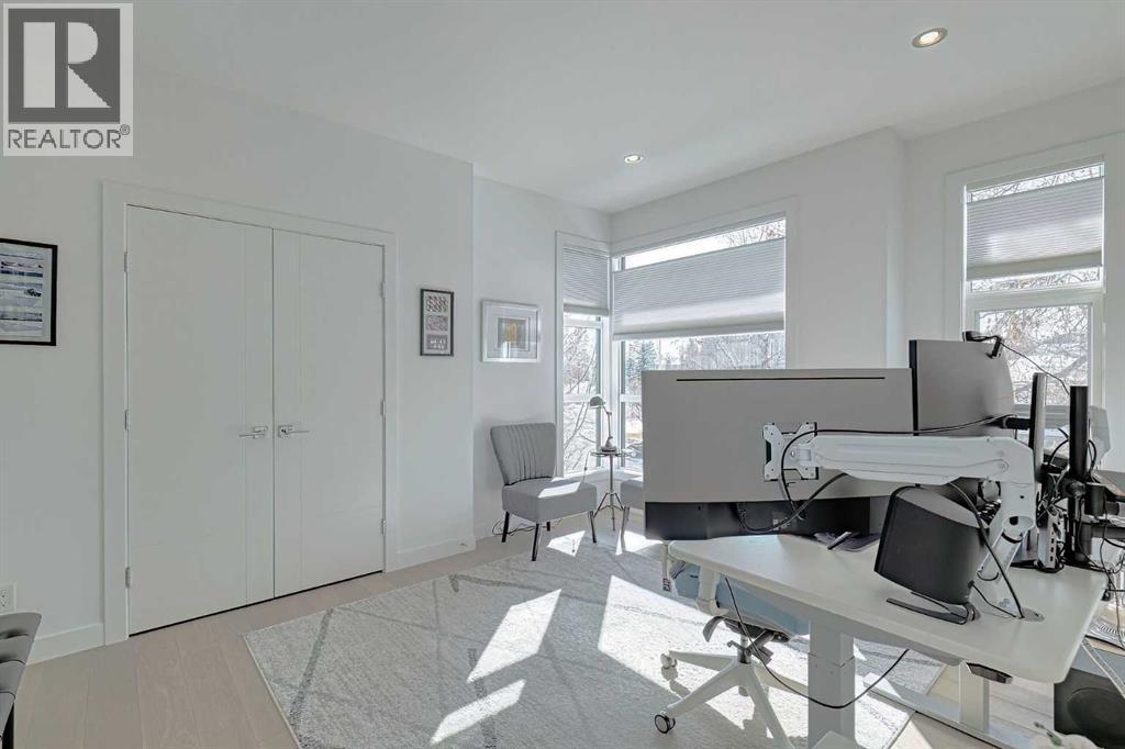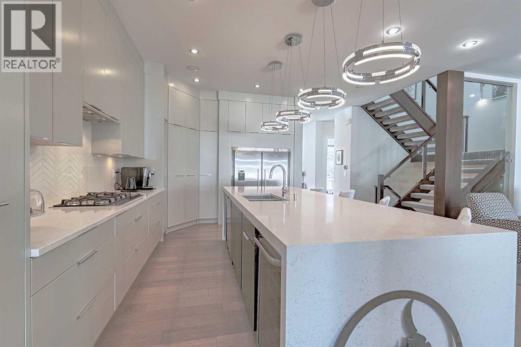 IT’S A LIFESTYLE !! Picture a life where you wake up in a quiet, tree lined SW inner-city neighbourhood, grab a coffee, drive out of your RARE TRIPLE CAR GARAGE and be downtown in minutes. Live the dream in your luxurious modern home and enjoy fun-filled evenings with family and friends in a showpiece GOURMET KITCHEN designed for real cooks. The kitchen features DELUXE FISHER PAYKEL APPLIANCES including gas cooktop, wall oven and a quiet MIELE DISHWASHER. Note the hidden corner pantry, extra rolling storage and spice racks, and even more storage in the covert cabinets at the front of the island, lit by multi-coloured LED lighting. Imagine laughter echoing through soaring 10’ CEILINGS, and natural sunlight pouring into the OVERSIZED WINDOWS. The upper level with THREE SPACIOUS BEDROOMS includes a relaxing primary bedroom retreat sensibly designed with his and hers walk-in closets. After a tough work week envision finally resting in your king sized bed with tufted blue velvet wall and designer pendant lights or unwinding in the SPA-INSPIRED ENSUITE that feels like a boutique hotel… comes with a freestanding soaker tub, European tiled shower and dual sinks. Also on this floor is a spacious laundry room, and I nearly forgot to mention that the second bedroom has its own walk in closet! So many CUSTOM UPGRADES – lighting, plumbing, built in speakers, an entire home automation system with motion sensors and for ease of life, all the louvres and roller blinds are automated with their own remotes (Lucenti automated roller blinds in the great room), a mudroom with built in storage, hot tub rough in, etc. This Killarney gem is beautifully built with 10’ ceilings that create an airy, open feel, has wide-plank hardwood flooring, custom cabinetry, a massive island for your creative baking pleasure, a great room that brings people together and features a tile surround showcase fireplace. AND the large dining room with stunning floor to ceiling built-in shelving is a show stopper. A large FOURTH BEDROOM and THREE PIECE BATHROOM complete the FULLY DEVELOPED BASEMENT. Imagine movie nights in your own private media lounge where you might also host guests with a wine or whiskey tasting at your fancy wet bar, a lower level made for memories. Check out the garage with new, cutting edge steel cabinets and polyaspartic flooring (tough as nails, but breaths better than epoxy). A fabulous, private back yard with Artificial turf gives you a near entirely MAINTENANCE FREE FRONT and BACK YARD with ALUMINUM PRIVACY SCREEN and lots of space for your patio furniture and outdoor fire pit. There are plenty of entertaining areas inside and outside this opulent home. Minutes to downtown, transit, parks, amenities and the Shaganappi Golf Course; golf in summer or cross country ski and snow shoe in winter. The Killarney Aquatic Recreation Centre is also just blocks away. This magnificent detached home blends contemporary design with everyday comfort – where modern luxury meets everyday ease. (id:58070)