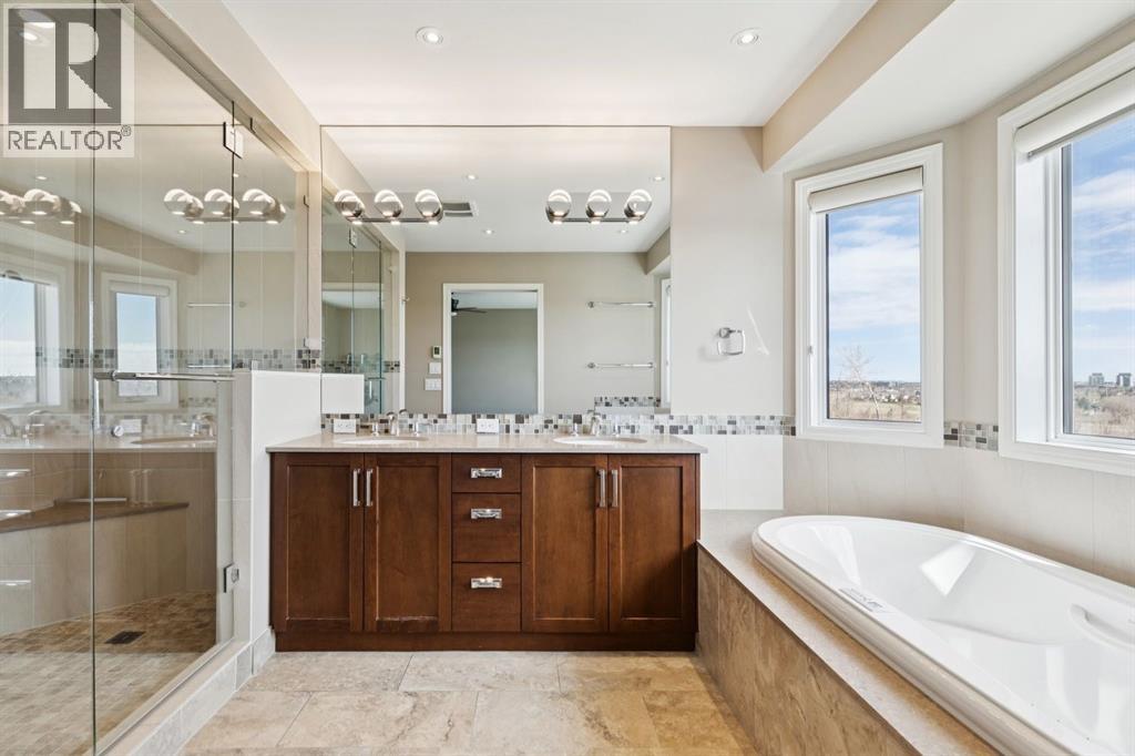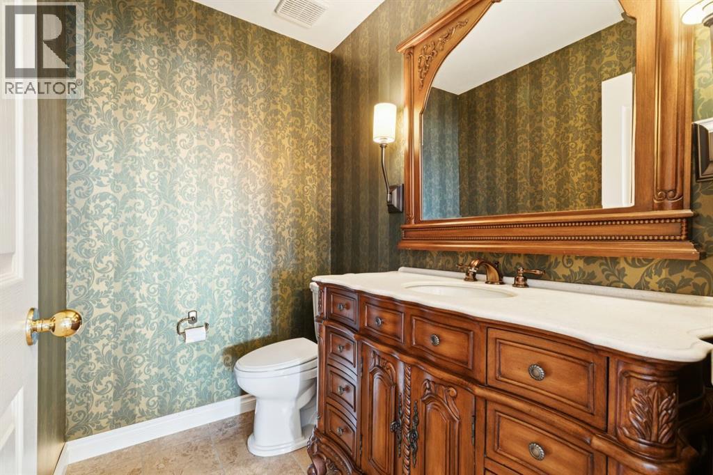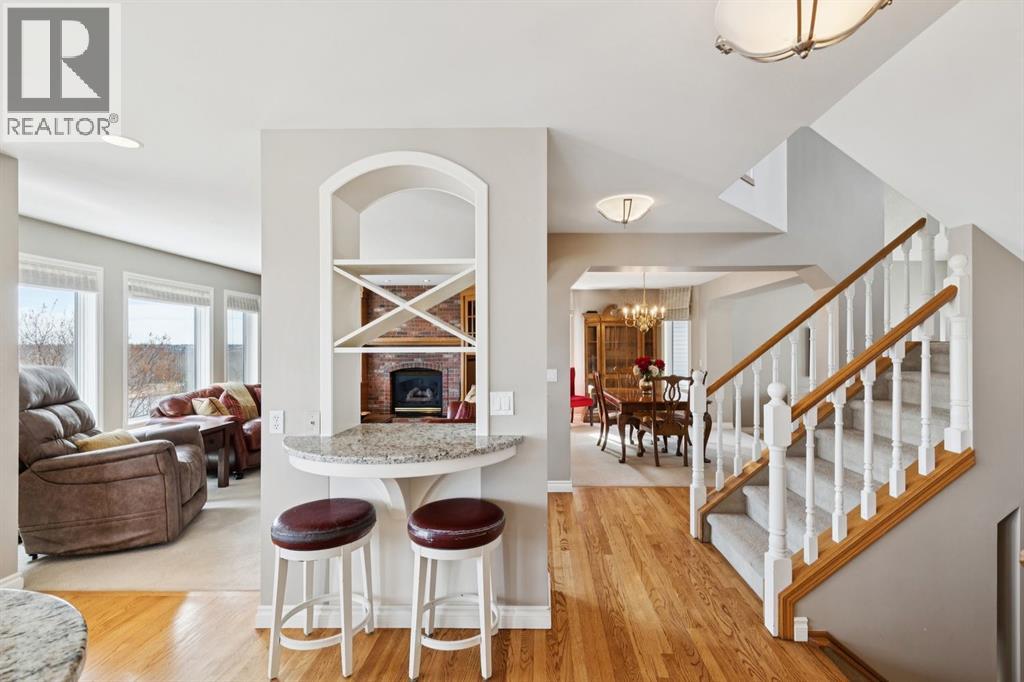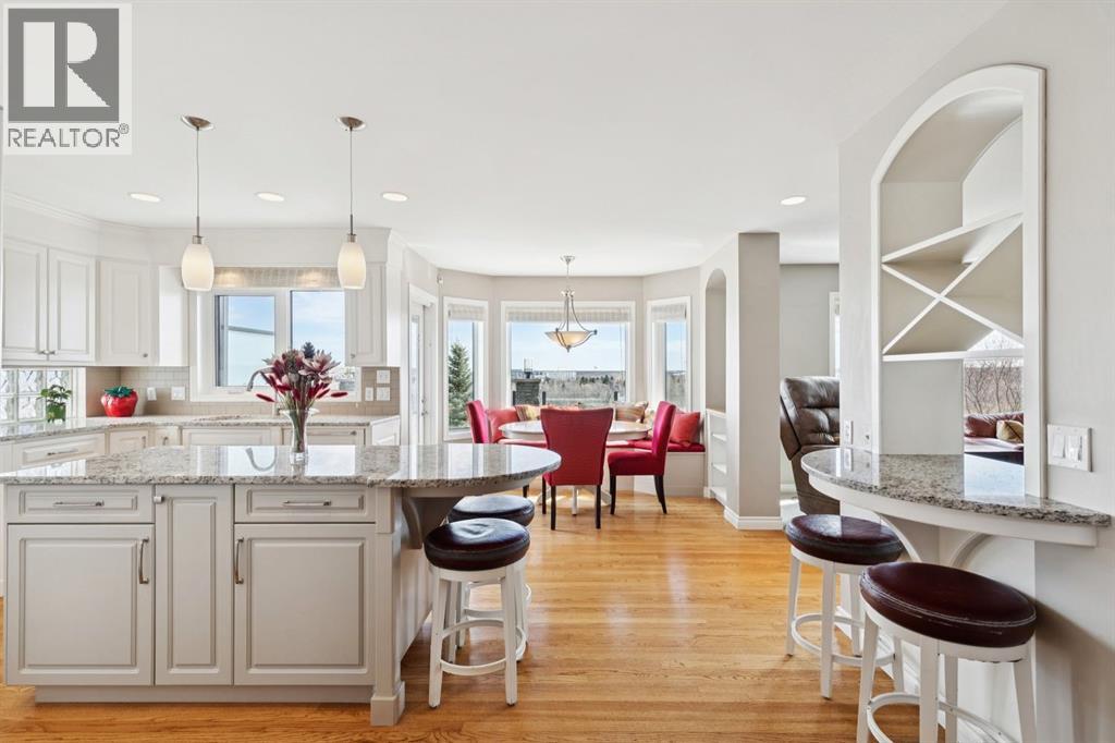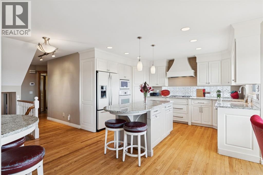Perfectly positioned on a rare and expansive 52' Southwest fronting lot, this exceptional walkout residence offers a refined balance of space, design, and an unrivalled natural setting. Backing directly onto the Bow River and the extensive pathway system, with Douglas Glen Park just beyond, this property delivers uninterrupted views and immediate access to nature, an increasingly rare offering in Calgary’s southeast. A gracious and spacious foyer sets the tone upon entry, welcoming you into a thoughtfully designed main floor where comfort meets sophistication. A sunken formal living room with a soaring vaulted ceiling creates architectural interest, while an elevated formal dining room provides the perfect setting for hosting. The heart of the home is the inviting family room, anchored by a gas fireplace with brick surround and custom oak built-ins, seamlessly connected to the kitchen and breakfast nook. Designed for both function and style, the kitchen features granite countertops, a central island with seating, glass block accents that invite in natural light, and a corner pantry. Premium appliances include a gas cooktop, panelled Bosch dishwasher, and Jenn-Air wall oven. From the breakfast nook, step onto the upper low maintenance deck with glass railing; for unobstructed sweeping river valley and park views. A main floor home office with built-in desk, along with a combined mudroom and laundry area complete with sink, offer everyday practicality connecting directly to the oversized, heated double attached garage. Upstairs, an open-to-below design enhances the sense of space. Three generously sized bedrooms include a luxurious primary retreat, complete with a dedicated sitting area oriented toward the river views. The walk-in closet features custom shelving, while the relaxing 6pc ensuite boasts heated floors, a glass-enclosed shower with body sprays, and a deep jetted soaker tub. A full 3pc bathroom with skylight serves the additional bedrooms. The fully develop ed walkout lower level is equally impressive, offering plush carpeting, a sprawling recreation room with built-in media wall, and a striking three-way fireplace that connects to a versatile games area. This space transitions seamlessly to a covered and screened-in patio/sunroom making it perfect for year round enjoyment or a future hot tub retreat. A fourth bedroom and full bathroom complete the level. Gardening enthusiasts will appreciate the elegant raised garden beds, showcasing a vibrant array of lush shrubbery and blooms in this serene, meticulously landscaped backyard. Backing onto the treed beauty of Douglas Glen Park and the Bow River, this private retreat is perfect for quiet moments or unforgettable entertaining. This is a rare opportunity to secure a premium river-backing property on a wide, estate-calibre lot, offering a meticulously planned layout and an exceptional indoor/outdoor lifestyle in one of Calgary’s most naturally beautiful settings. (id:58070)