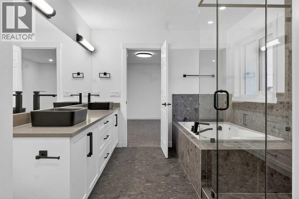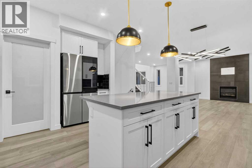 Stunning Brand-New Luxury Home in Chestermere | 5 Beds + Triple Garage | Park-Facing Corner Lot. Welcome to this spacious, beautifully crafted brand-new home located in one of Chestermere’s highly sought-after lake communities, where resort-style amenities meet everyday convenience. Set on a premium corner lot backing onto a park, this property offers exceptional space, high-end finishings, and thoughtful design throughout. Step inside to soaring open-to-above ceilings, elegant chandeliers, and a bright, airy layout that blends luxury with comfort. The main floor features a bedroom with its own private en suite, ideal for guests, extended family, or multigenerational living.Upstairs, you’ll find four generous bedrooms, including two beautiful primary suites, each with its own spa-inspired en suite, a rare and highly desirable layout perfect for large families. The heart of the home is the gorgeous chef’s kitchen, showcasing premium cabinetry, high-end finishes, and a Samsung smart refrigerator with built-in touchscreen and TV. A fully equipped spice kitchen adds even more convenience for cooking and entertaining.Additional features include: Triple-car garage, corner lot backing onto green space, high-end modern finishings throughout, open-to-above/below architectural design, abundant natural light and spacious flow. Located in a vibrant lake community, this home gives you access to Chestermere’s incredible amenities—beaches, walking paths, parks, playgrounds, community events, restaurants, schools, and shopping—all while being just minutes from the city. With an easy commute to Calgary and quick access to major routes, this is the ideal family home for those seeking luxury, space, and convenience. Move-in ready and built to impress—experience the best of Chestermere living! (id:58070)