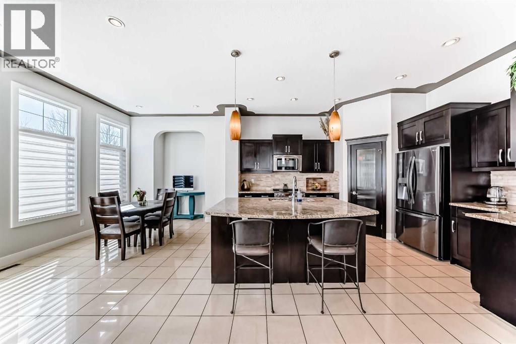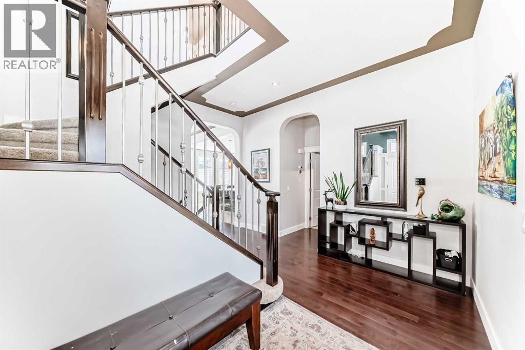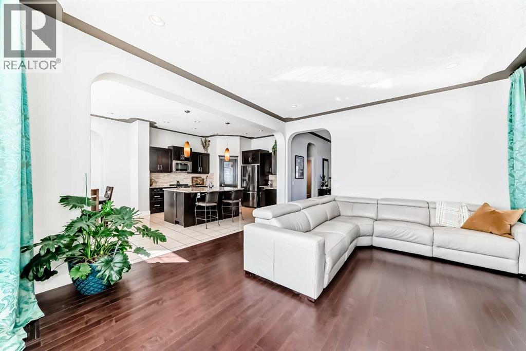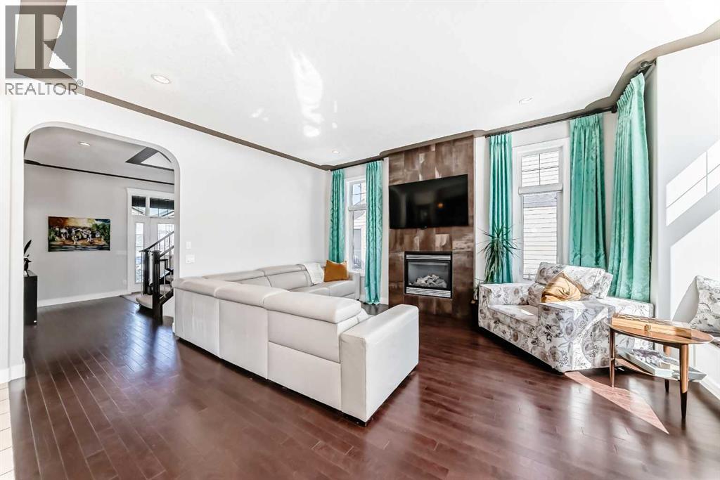Impressively large and fully finished 2-storey offering a double attached garage, 4 bedrooms, 3 bathrooms and an unbeatable location—backing onto a greenspace & path, just a short walk to both Heloise Lorimer School and École des Hautes-Plaines schools. From the moment you walk in, you’re welcomed by a bright, open foyer with impressive 10-foot ceilings and a modern-looking floating staircase. The well-lit main living space is warm and inviting, featuring a fireplace and large, upgraded window package that fill the home with natural light. You’ll also notice the attention to detail throughout including bullnose granite countertops, beautiful architecture with arches, several built-ins, floor to ceiling tiled fireplace and custom crown molding & baseboards.The kitchen is designed for both everyday living and entertaining, complete with a massive centre island layout and a convenient walkthrough pantry.Step outside and you’ll find a backyard that truly stands out. With over $40,000 in upgrades, it features a stamped concrete patio, custom deck, mature trees, and low-maintenance astroturf. Backing onto greenspace with neighbours set far back, it’s a private setting with plenty of room to relax or host.Upstairs, the primary bedroom offers a peaceful retreat with vaulted ceilings, a spacious 5-piece ensuite with double vanity, and a walk-in closet. You’ll also find two additional bedrooms and a large bonus room—perfect for a growing family. A bright and big laundry room with room for a sink complete the upper floor (Owner has converted this room into a salon, but could easily be converted back to a laundry room).The fully finished basement adds even more living space with a large fourth bedroom (bedroom window may not be egress), a versatile rec room, a full bathroom and lots of storage.Recent updates include a tankless hot water system (2023) and newer appliances (fridge, stove, and washer in 2022), giving you peace of mind.All of this is located on a quiet street, close to shopping, restaurants, and with easy access to major routes.This is a great opportunity to get into a move-in-ready home in one of Airdrie’s most popular communities. Reach out to your favorite Realtor to book your showing. (id:58070)