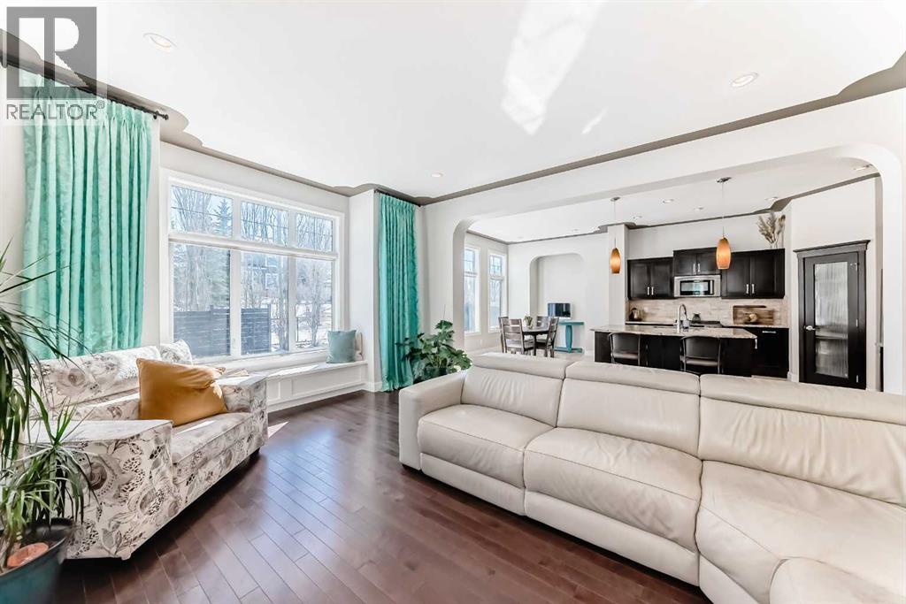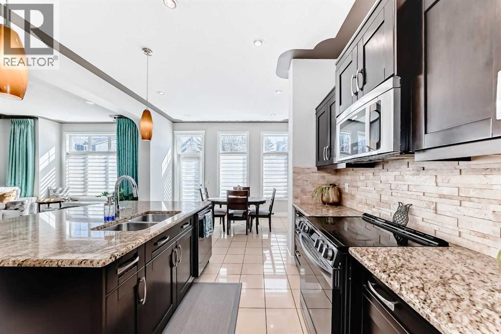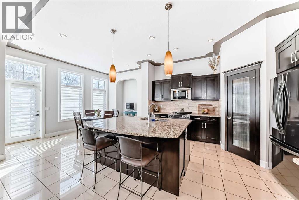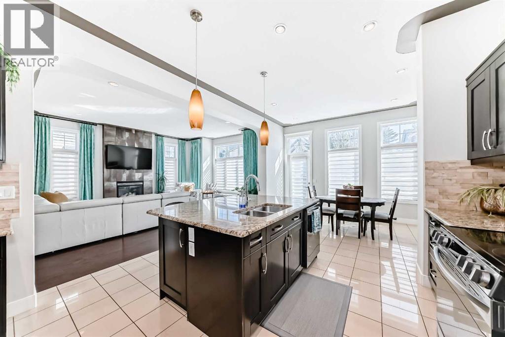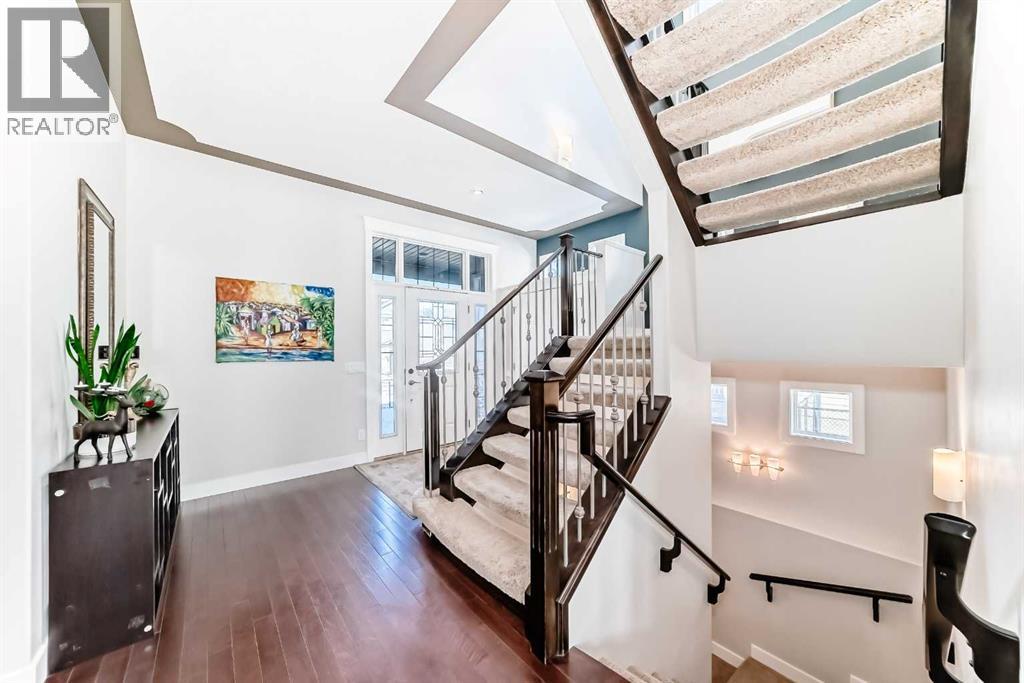 Impressively large and fully finished 2-storey offering a double attached garage, 4 bedrooms, 3 bathrooms and an unbeatable location—backing onto a greenspace & path, just a short walk to both Heloise Lorimer School and École des Hautes-Plaines schools. From the moment you walk in, you’re welcomed by a bright, open foyer with impressive 10-foot ceilings and a modern-looking floating staircase. The well-lit main living space is warm and inviting, featuring a fireplace and large, upgraded window package that fill the home with natural light. You’ll also notice the attention to detail throughout including bullnose granite countertops, beautiful architecture with arches, several built-ins, floor to ceiling tiled fireplace and custom crown molding & baseboards.The kitchen is designed for both everyday living and entertaining, complete with a massive centre island layout and a convenient walkthrough pantry.Step outside and you’ll find a backyard that truly stands out. With over $40,000 in upgrades, it features a stamped concrete patio, custom deck, mature trees, and low-maintenance astroturf. Backing onto greenspace with neighbours set far back, it’s a private setting with plenty of room to relax or host.Upstairs, the primary bedroom offers a peaceful retreat with vaulted ceilings, a spacious 5-piece ensuite with double vanity, and a walk-in closet. You’ll also find two additional bedrooms and a large bonus room—perfect for a growing family. A bright and big laundry room with room for a sink complete the upper floor (Owner has converted this room into a salon, but could easily be converted back to a laundry room).The fully finished basement adds even more living space with a large fourth bedroom (bedroom window may not be egress), a versatile rec room, a full bathroom and lots of storage.Recent updates include a tankless hot water system (2023) and newer appliances (fridge, stove, and washer in 2022), giving you peace of mind.All of this is located on a quiet street, close to shopping, restaurants, and with easy access to major routes.This is a great opportunity to get into a move-in-ready home in one of Airdrie’s most popular communities. Reach out to your favorite Realtor to book your showing. (id:58070)
