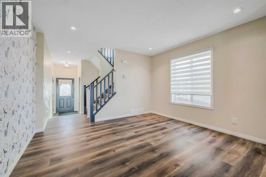 Not a condo property and no condo fees! Own your land with this updated 2 storey walkout home in Westmere under $500K! Modern open plan with spacious kitchen & many bright windows. Unobstructed views over the prairies behind and complete privacy. Stainless steel appliances, granite countertops & central island, with ample cabinet space & corner pantry. Upgraded durable vinyl plank flooring throughout the main level. 3 generous bedrooms up including oversized primary bedroom with 2 full bathrooms & great storage. Front bonus room rarely available in a duplex or townhome style layout! Soaring vaulted ceilings & ample room for a media/family room. Convenient second floor laundry. Undeveloped walkout basement with separate entrance leading to private, well sized rear yard. All the rooms, size, & amenities of a large more expensive home in an affordable turnkey package! Fully insulated attached garage with additional parking pad out front. Enjoy the rich amenities of Westmere including a winding network nature focused pathways and only 1 block walking distance to Chestermere Lake! One of the closest locations to all the amenities, shops, restaurants, & schools of Chestermere with a quick escape on the Trans-Canada to Calgary. Immense value in Chestermere! (id:58070)