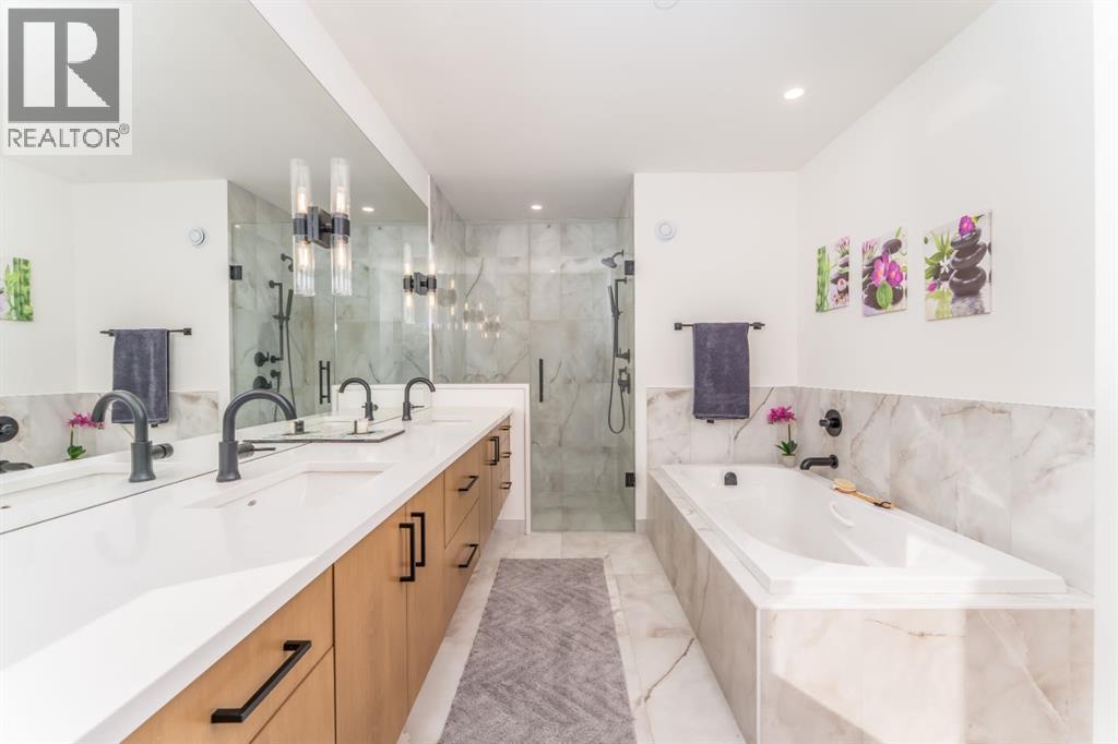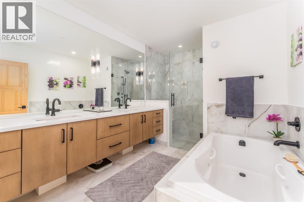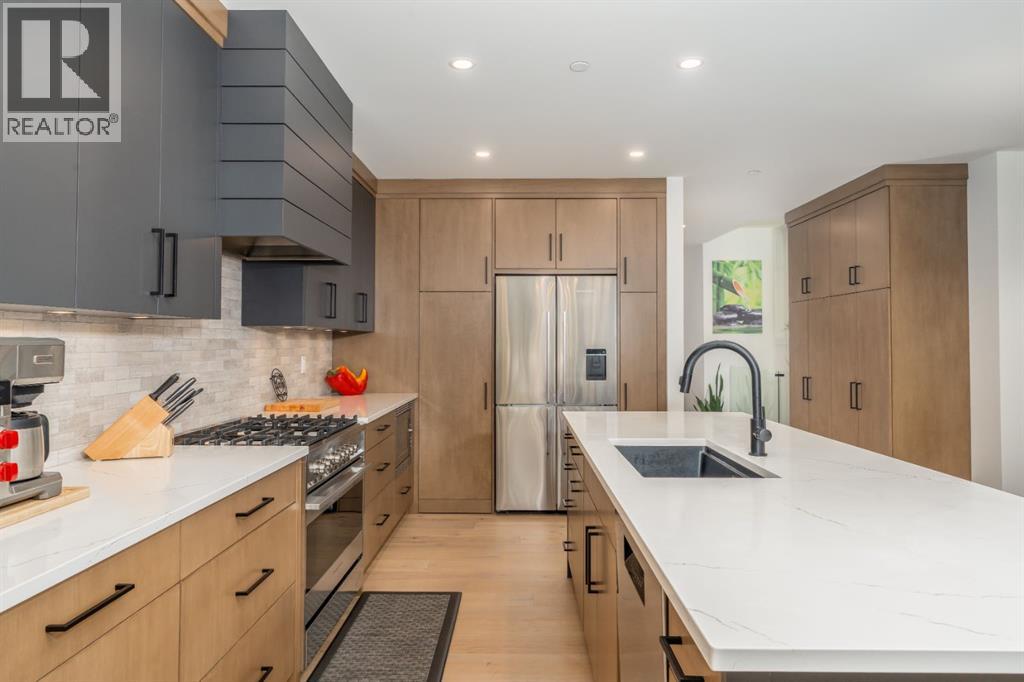 Built in 2022 by a respected local builder and barely lived in, this 2,555 sq. ft. custom home blends modern mountain luxury with everyday comfort. Offering 4 spacious bedrooms and 4.5 bathrooms — including three ensuites — the layout is designed for effortless main-level living. Vaulted ceilings and expansive windows bring natural light and tranquil treed reserve views into the heart of the home.Premium finishes include polished heated concrete and hardwood flooring, in-floor heating, quartz countertops, and stainless steel appliances — creating an ideal setting for both relaxed living and entertaining. The generous primary suite offers a serene, light-filled retreat with spa-inspired comfort.For modern convenience, the home features a finished heated double car garage, low-maintenance landscaping, plus rough-ins for air conditioning, EV charger, and a hot tub. From this elevated setting, enjoy views of the iconic Three Sisters, plus quick access to the Bow River, shops, cafés, trails, and the world-class Nordic Centre.Unlike nearby new builds, GST has already been paid — delivering exceptional value at $2,175,500. (id:58070)