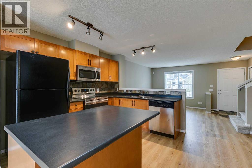 Welcome to this thoughtfully updated townhome in the heart of McKenzie Towne. From the moment you arrive, the white picket fence and charming front porch offer great curb appeal and a welcoming first impression. Inside, the main level has been refreshed with stylish new vinyl plank flooring, and the upper level features brand new carpet throughout. The open-concept floor plan is both functional and inviting, with a spacious living room, central kitchen with island, and a dining area that opens onto a private balcony—perfect for summer evenings. The kitchen has been upgraded with practical and stylish touches, including a spice pullout, corner lazy Susan, door-mounted garbage pullout, new cabinet doors with soft-close hinges, and decorative hardware. A full repaint throughout the home brings a fresh, modern feel. Upstairs, you’ll find three bedrooms, a generous landing with storage, and a 4-piece bathroom. The basement includes access to the double garage and the utility room—ideal for winter convenience and extra storage. Set in the vibrant and well-established community of McKenzie Towne, this home offers access to scenic parks, walking paths, schools, and a wide variety of shops and restaurants all within minutes. Known for its family-friendly atmosphere and classic small-town charm, McKenzie Towne is a place where neighbours know each other and community pride runs deep. (id:58070)