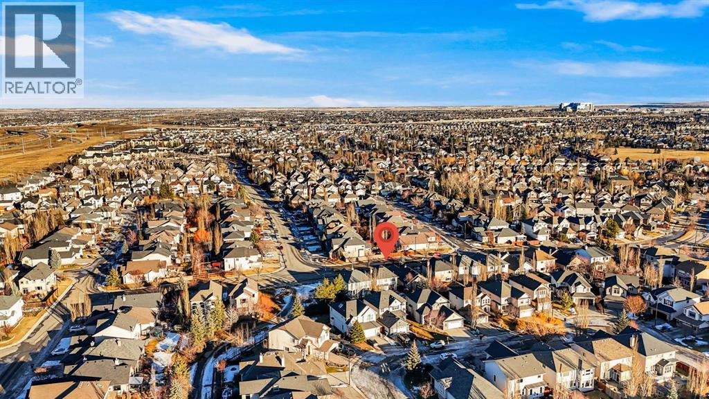 Welcome to this absolutely immaculate 2,100 sq ft Jayman “Kennedy” model — one of the most sought-after floorplans of its time — lovingly maintained and presented today as beautifully as the day it was built.Step outside your front door and you’re just moments from the bike and walking pathway system that opens onto the ridge, where breathtaking west-facing views of the mountains, Bow River valley and serene ponds become part of your daily routine. Morning walks and sunset strolls don’t get better than this.The timeless stucco exterior offers classic curb appeal, while inside, the dramatic open-to-above design creates an immediate sense of space and light. The soaring entry seamlessly connects to the elegant staircase and formal dining room — or flex space — at the front of the home, perfect for a home office or welcoming sitting area.The main floor unfolds into a wide-open layout designed for connection and comfort. Rich walnut-stained maple cabinetry anchors the kitchen, complemented by a central island with raised eating bar, corner pantry, and an abundance of prep and storage space. Whether hosting friends or enjoying quiet family dinners, the space feels warm, functional, and inviting. The adjacent living room features a stunning built-in maple bookcase and entertainment centre surrounding a corner fireplace with ceramic tile surround — a true focal point that adds both character and comfort.Upstairs, maple railings and spindles lead to an open loft/bonus room overlooking the entryway — an incredibly versatile space ideal as a second living room, office, kids’ playroom, or private teen retreat.The primary bedroom is perfectly proportioned and offers a relaxing ensuite with a large soaker tub, separate shower, 6’ vanity, and a spacious walk-in closet. Two additional bedrooms are larger than expected and share easy access to the main bath.The unfinished basement offers a blank canvas with rough-in plumbing already in place — perfectly suited for a future be droom tucked away for guests and a wide-open recreation space tailored to your needs.Outside, the west-facing backyard is beautifully landscaped with a manicured lawn and stunning two-tiered deck plus a stone patio — the perfect place to soak in evening sunsets. The oversized 24’ garage (exterior dimensions), combined with a generously sized driveway, provides exceptional parking and storage flexibility.Pride of ownership is evident in every detail of this home.Cranston is one of the city’s most desirable communities, known for its access to the ridge pathway system, scenic river valley views, parks, schools, and family-friendly atmosphere. With nearby amenities, shopping, and easy access to major routes, it offers the perfect balance of nature, convenience, and community connection. Homes this close to the ridge rarely come available — book your private showing before this one is spoken for. (id:58070)