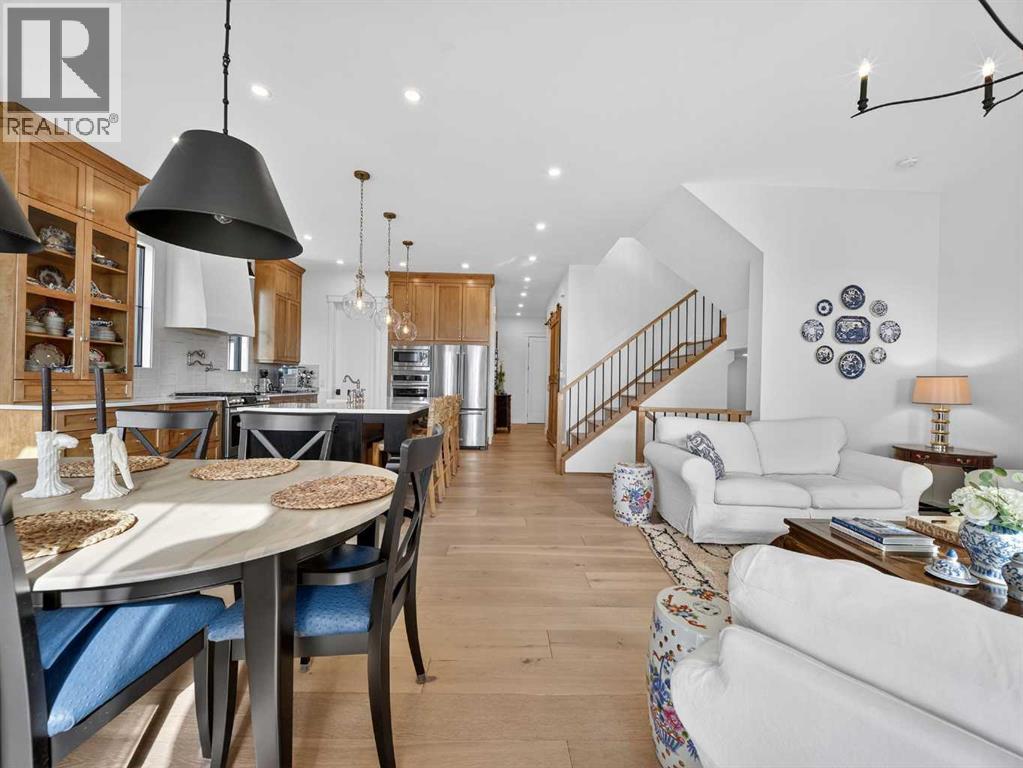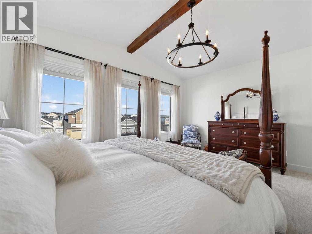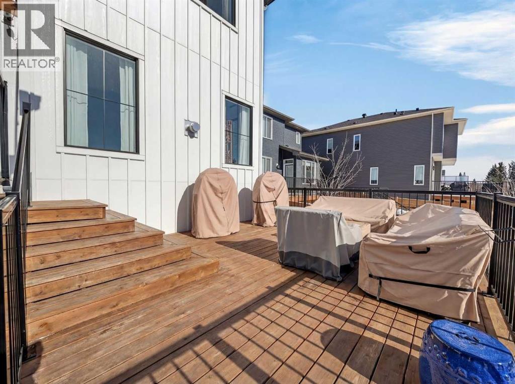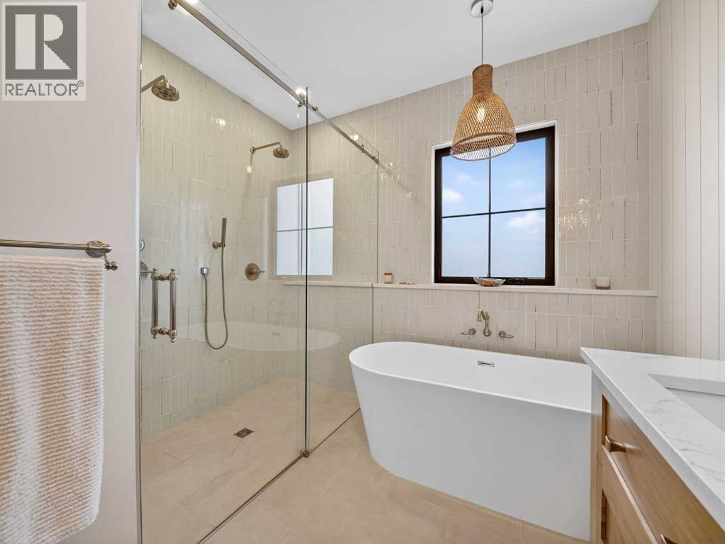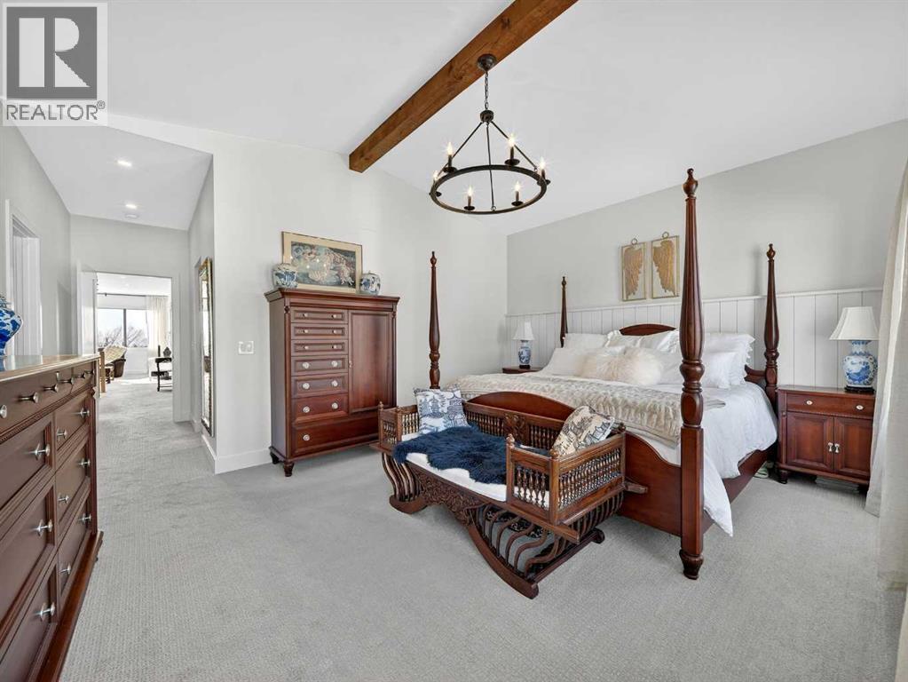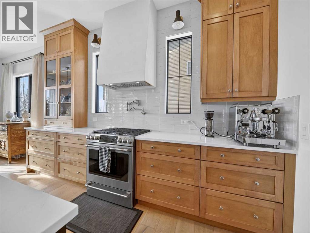 Welcome to an extraordinary custom-built farmhouse in the prestigious community of Wedderburn in Okotoks — a residence where refined craftsmanship meets timeless country elegance. From the moment you arrive, the home’s striking curb appeal, architectural charm, and warm, inviting presence create an unforgettable first impression. A gracious and spacious foyer welcomes you inside, immediately setting the tone for the thoughtful design carried throughout. Just off the entry, a beautifully appointed office offers both functionality and sophistication, complete with bespoke built-in cabinetry and a custom desk. As you continue into the heart of the home, the breathtaking kitchen unfolds in true European Tuscan farmhouse style. Floor-to-ceiling custom maple cabinetry, rich in detail and warmth, is perfectly complemented by white oak flooring that flows seamlessly throughout the main level. A generous central island anchors the space, while a statement custom hood fan, built-in appliances, and exquisite imported tile elevate the design. Expansive windows capture sweeping west-facing mountain views and southern vistas overlooking Okotoks. The adjoining dining and living areas are designed for both intimate evenings and elegant entertaining. A custom gas fireplace provides warmth and ambiance, while an abundance of windows invites natural light and frames the stunning landscape beyond. Completing the main floor is a thoughtfully designed mudroom featuring custom cabinetry and a pristine dog bath. Ascending to the upper level, you are welcomed by a stunning bonus room perfectly positioned to take full advantage of the south-facing views over Okotoks and the majestic Rocky Mountains to the west. Three spacious bedrooms offer comfort and refinement. The primary retreat is a sanctuary unto itself, showcasing a spa-inspired ensuite with dual vanities, a freestanding soaking tub, and an oversized custom walk-in shower. Two additional bedrooms share a beautifully appointed bath room. The laundry room is exceptional — custom cabinetry and farmhouse sink create a space as beautiful as it is functional. The fully developed lower level elevates this home even further. In addition to a completely separate legal basement suite with its own private entrance, quartz countertops, stainless steel appliances, and stacking washer and dryer — the lower level also features an additional bedroom or multifunction room with a full private ensuite. Bright, airy, and finished to the same uncompromising standards as the upper levels, nothing has been overlooked. Outdoors, the property truly shines. Situated on one of the largest lots in Wedderburn, the expansive south-facing backyard offers endless opportunity for relaxation and recreation. A two-tiered deck with pergola creates the perfect setting for summer evenings, entertaining, and enjoying the open skies. Every detail of this residence has been meticulously curated, the epitome of luxury farmhouse living. (id:58070)