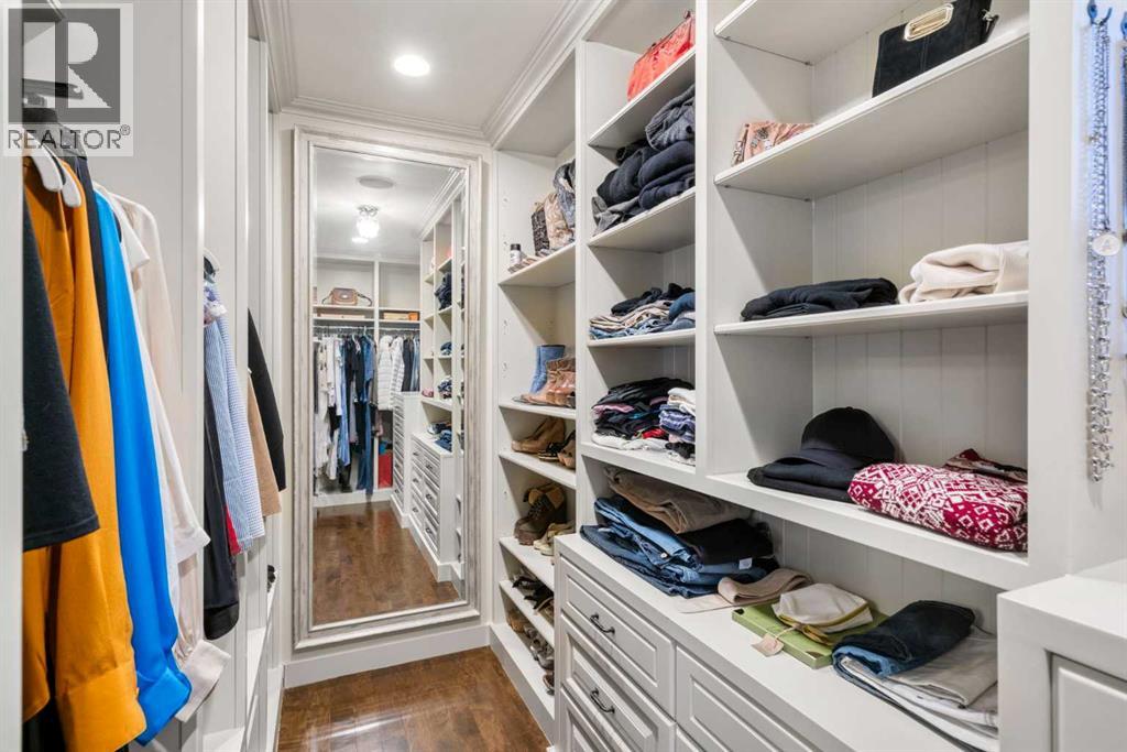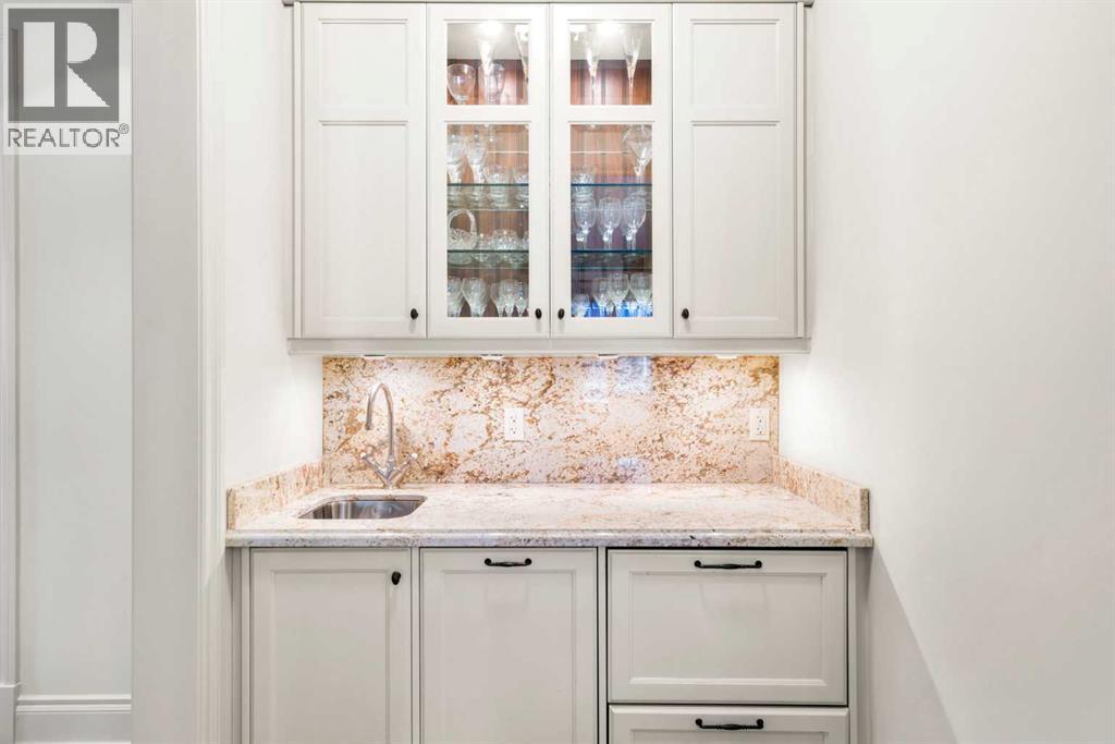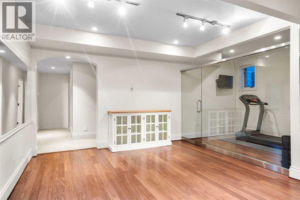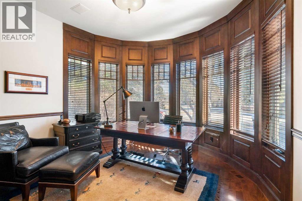 This stunning Laratta built executive family residence, is an architectural masterpiece nestled on a most coveted Upper Mount Royal tree lined street overlooking Talon Park. Set on a private, estate sized 70' x 194' west facing lot surrounded by mature trees, meticulous landscaping, English country gardens, offering a rare blend of historic grandeur, modern luxury & resort-style living. Boasting 7158 sq. ft. of impeccably designed living space, this residence showcases gleaming hickory & hardwood floors throughout the upper levels, with beamed ceilings, crown mouldings, solid core doors, extensive millwork, designer fixtures & an abundance of natural light through expansive windows. The enclosed foyer opens to the entertaining sized great room with built-ins & gas fireplace offers seamless indoor outdoor flow. The gourmet kitchen with granite countertops, a striking oversized island with circular eating bar, loads of custom cabinetry, spacious pantry, beamed ceilings, professional appliances, effortless flow into the family sized dining area & sitting area with fireplace overlooking the yard. A private office with custom bookcases overlooks Talon park, while the main floor primary suite, currently a second family room, features tranquil views, a luxurious spa-inspired 5-piece ensuite with soaker tub, steam shower, dual sinks, marble countertops, heated marble floors & abundant storage. A guest powder room, private laundry with cabinetry & a functional mudroom leads to the heated extra wide double attached garage. The upper level offers five spacious bedrooms, including a primary bedroom with double closets, luxurious ensuite and overlooks the tranquility of the west yard. The secondary bedrooms all with ensuites & a retreat area deliver exceptional comfort, flexibility & privacy. The lower level designed for elevated leisure & entertainment, features an expansive family room with built-in cabinets, billiards room, a large wrap-around wet bar with dishwasher, microwa ve & beverage fridge, temperature controlled wine cellar with tasting lounge, a bedroom with ensuite, a large playroom currently a ballet studio & glass enclosed exercise area plus exceptional storage. Outdoors, the tranquil west facing yard is home to manicured grounds framed by mature trees, offering sun drenched lounging areas, distinct living spaces, patio zone perfect for gatherings, a full irrigation system & ample room for a future pool. This estate harmonizes style, functionality, serenity & ideally located within walking distance to top rated schools, parks, River Park, the Elbow River Pathways, community tennis courts, outdoor pools, Glencoe Club, Calgary Golf & Country Club, public library, downtown, the vibrant shops, restaurants & culture of 17th Avenue, 4th & 14th Streets. This rare offering represents an unparalleled opportunity for the discerning buyer seeking architectural excellence, intentional design, premium materials - this is more than a home, it's a statement of refined living. (id:58070)